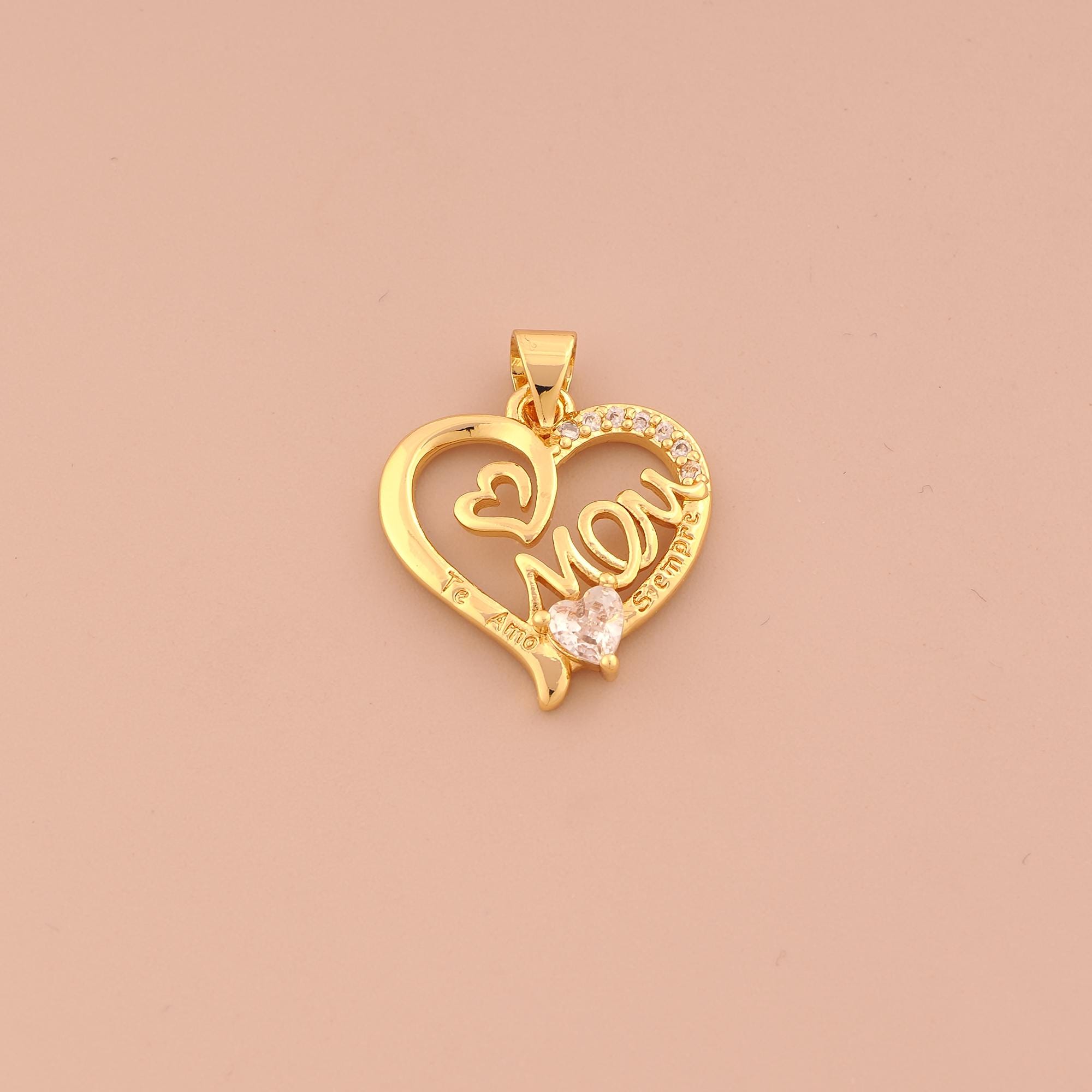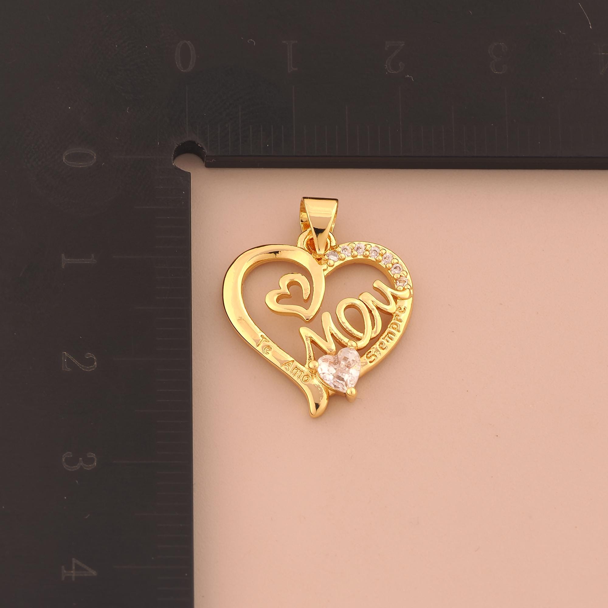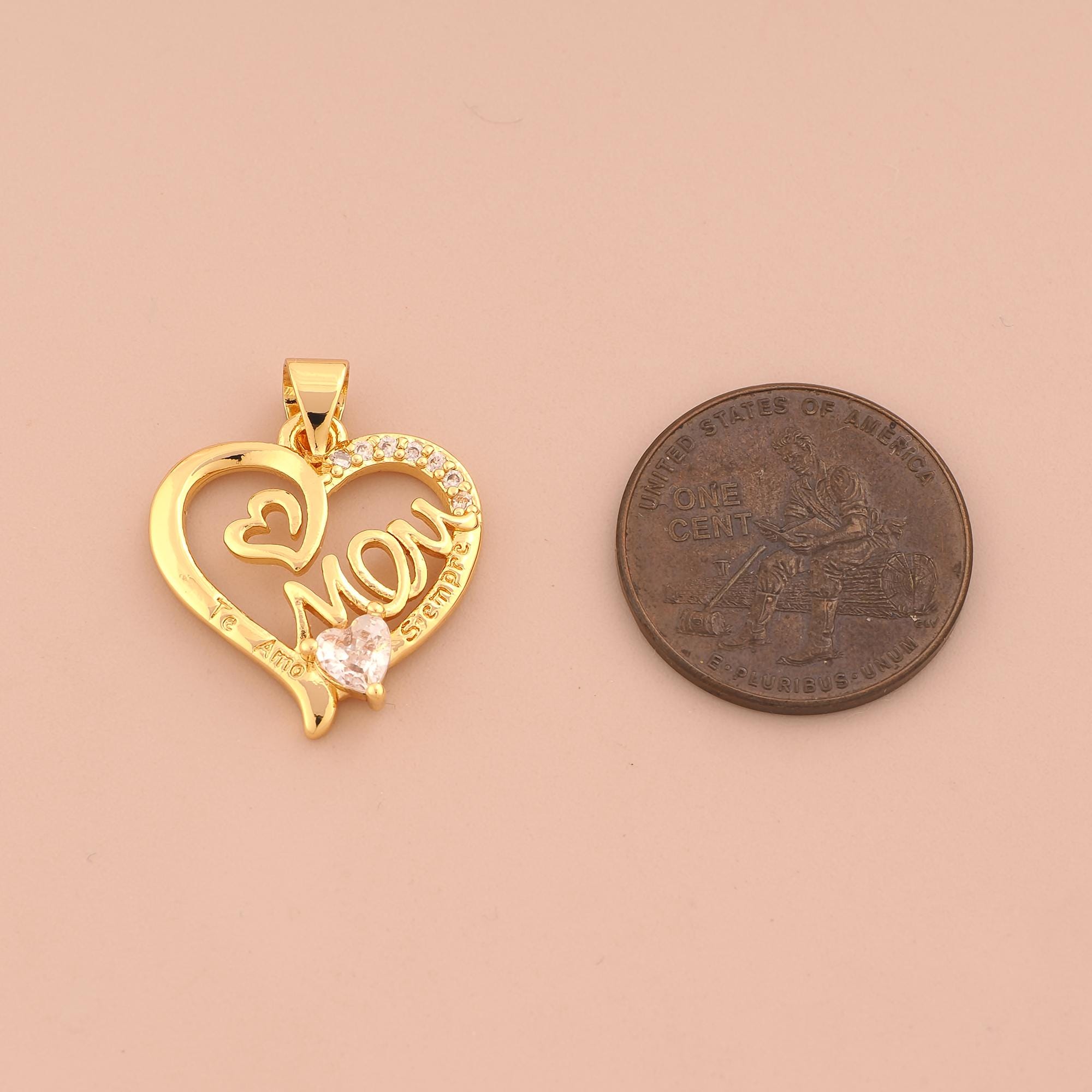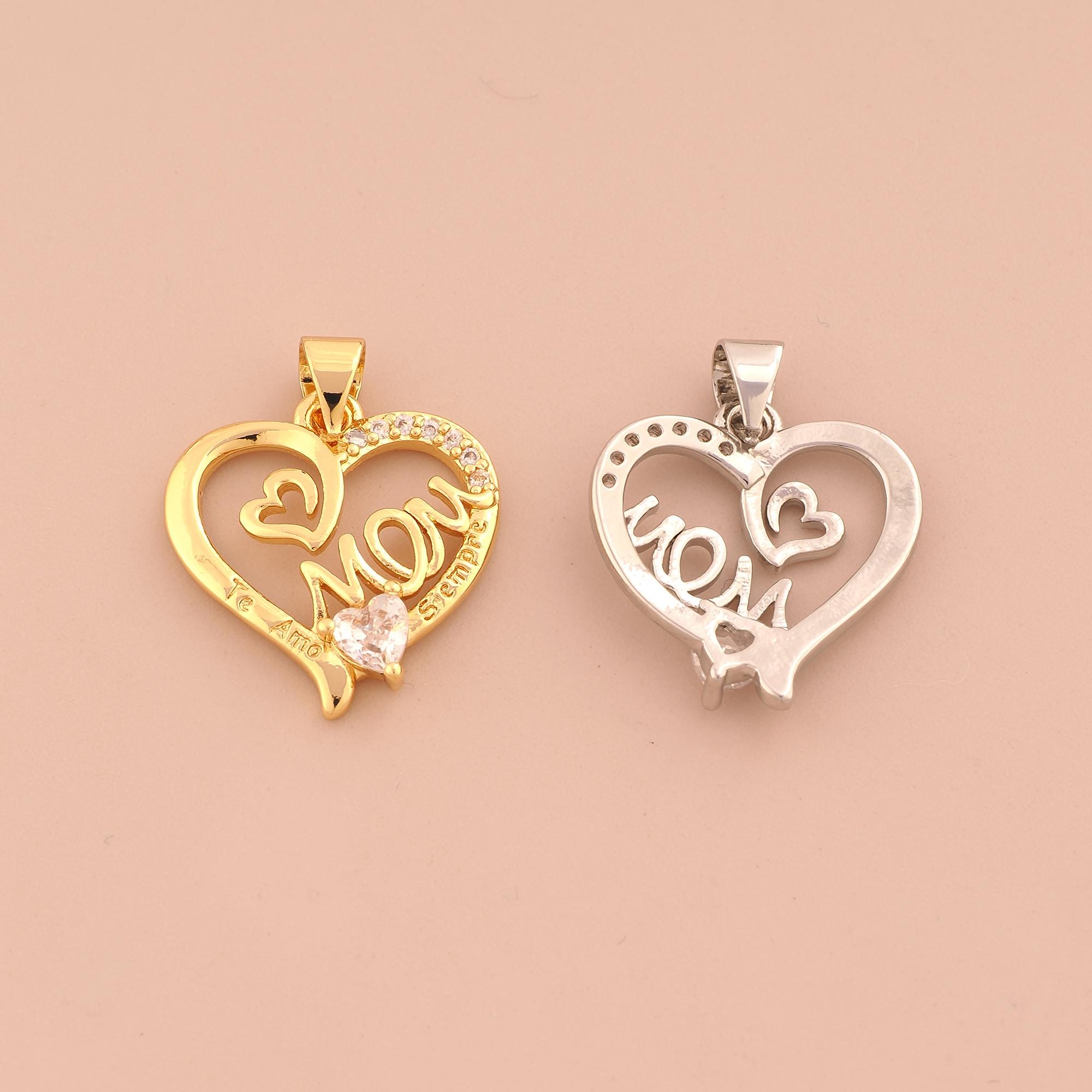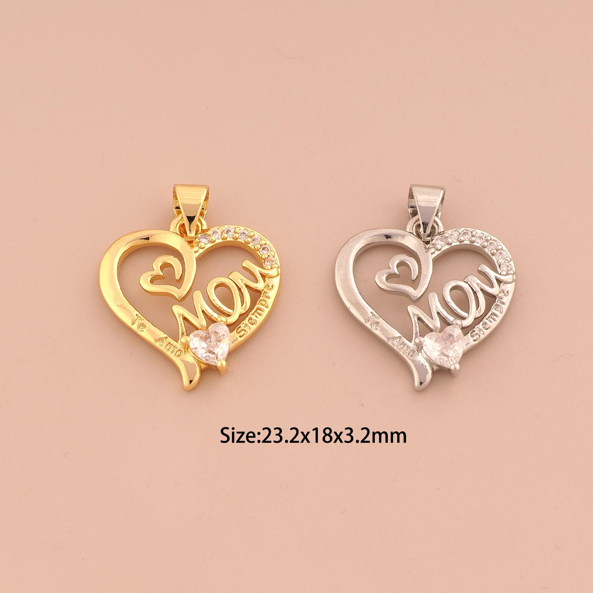 18K Gold MOM Charms,CZ Pave Heart Charms Pendants,Letter Charm for DIY Jewelry Making Supply