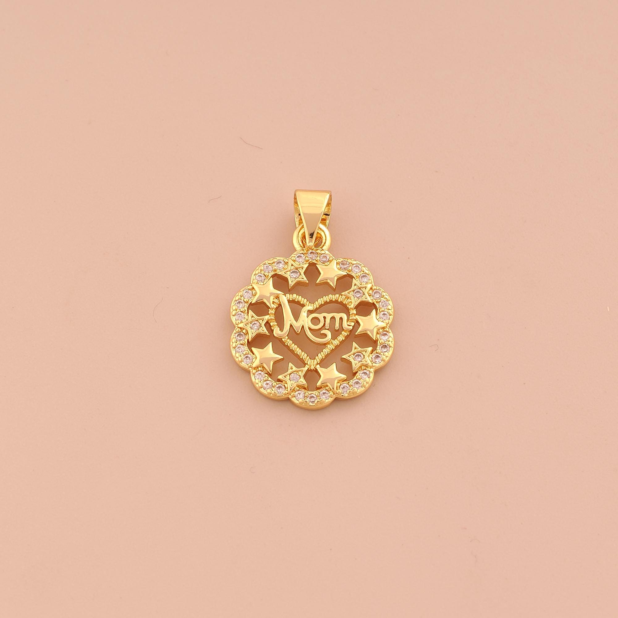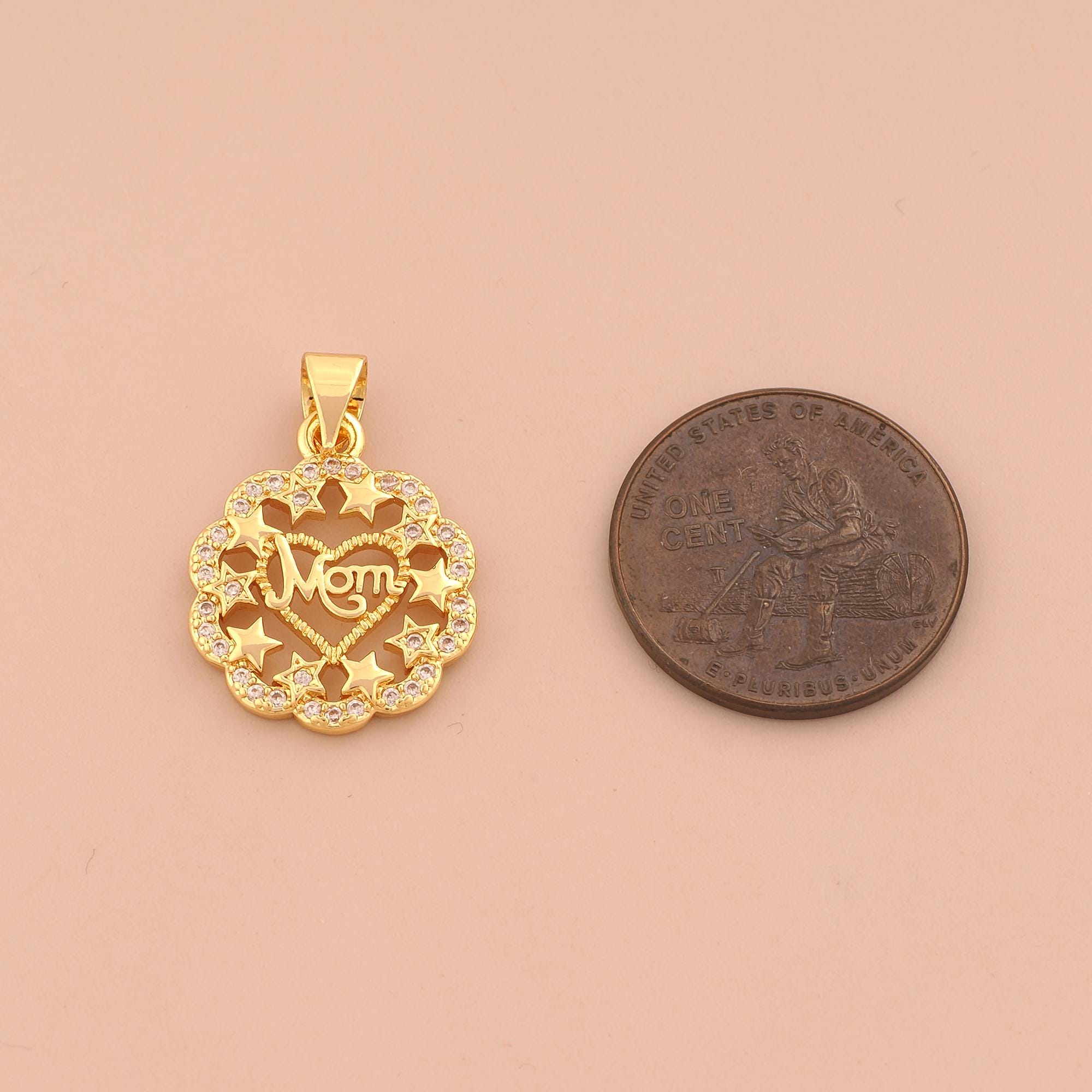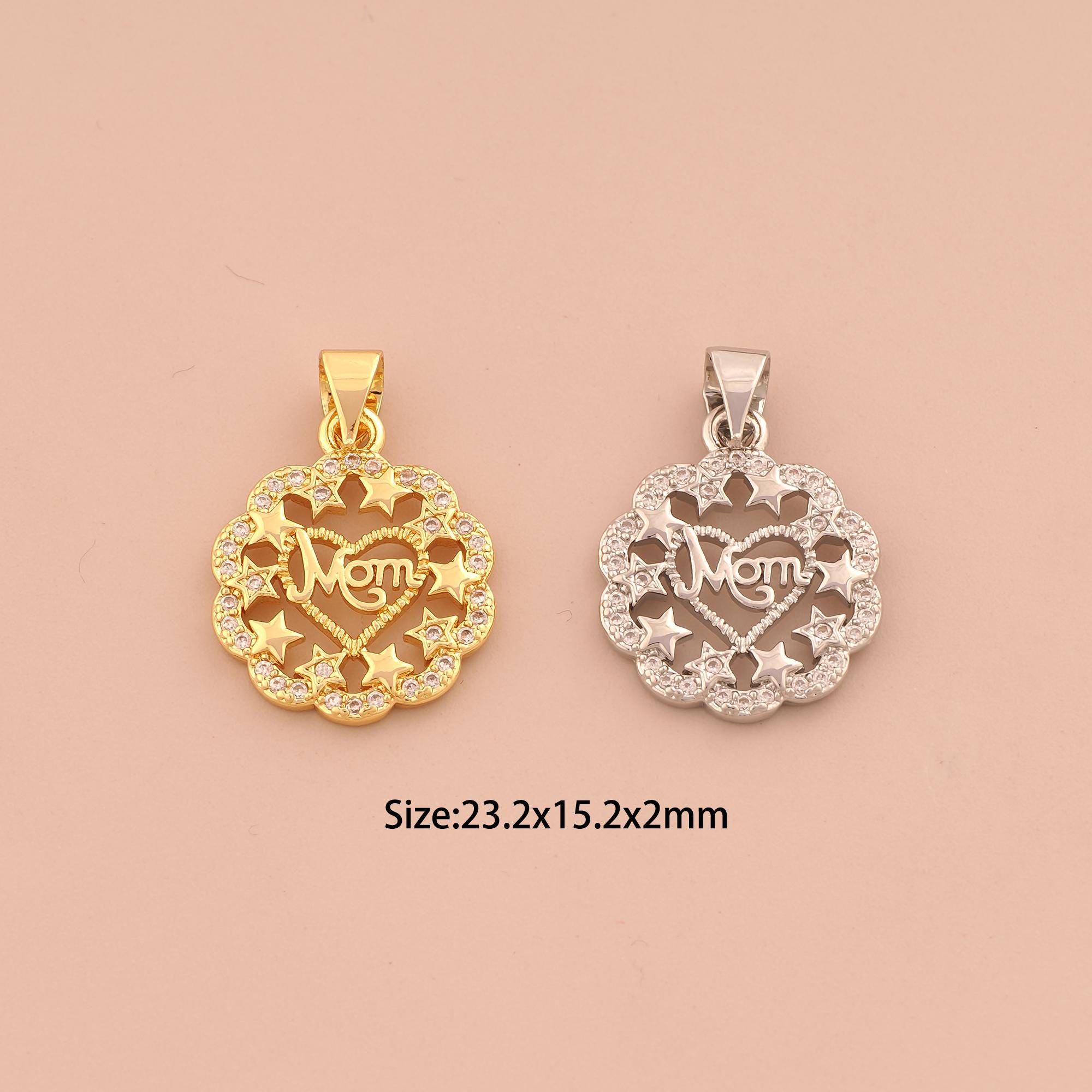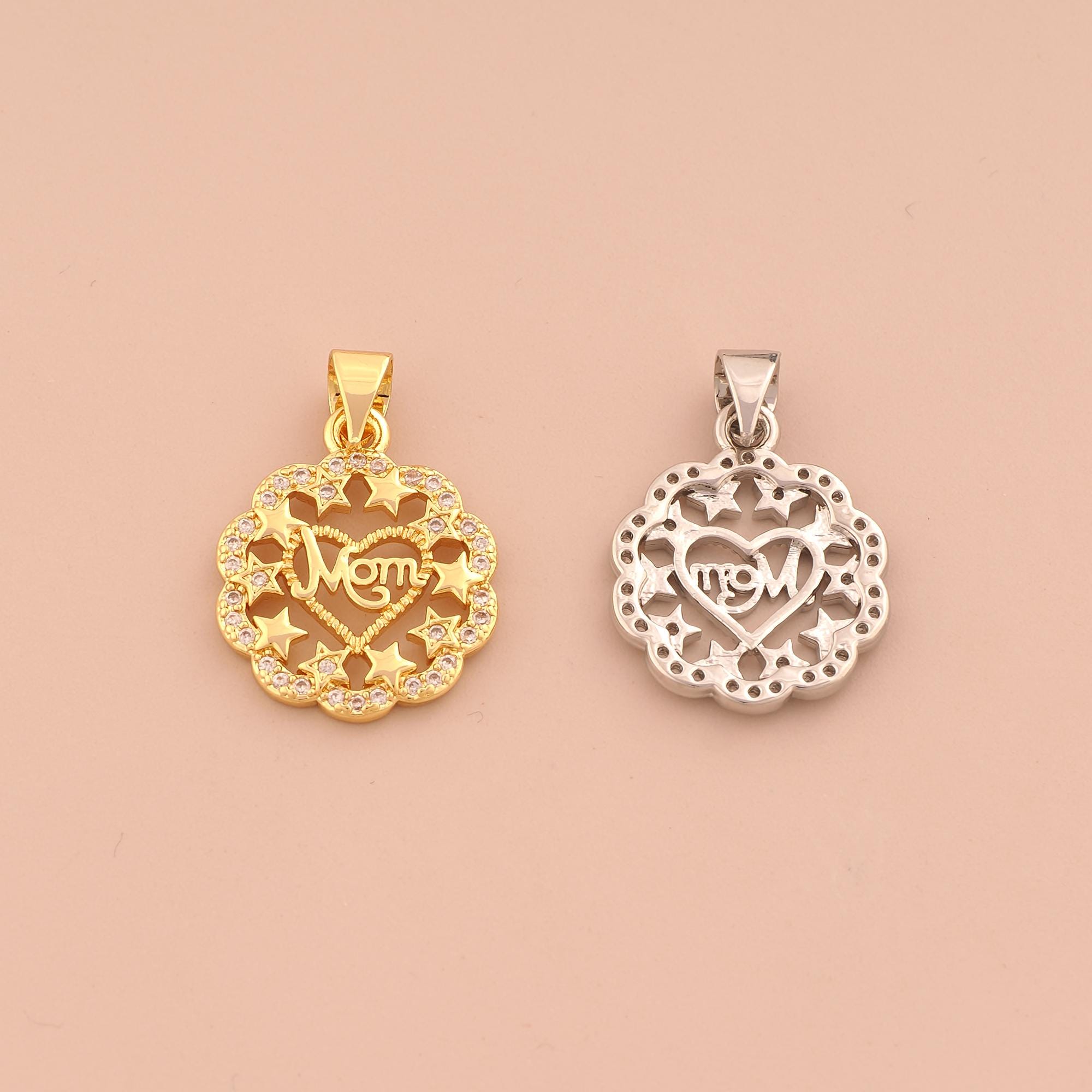 18K Gold MOM Charms,CZ Pave Heart Charms Pendants,Letter Charm for DIY Jewelry Making Supply