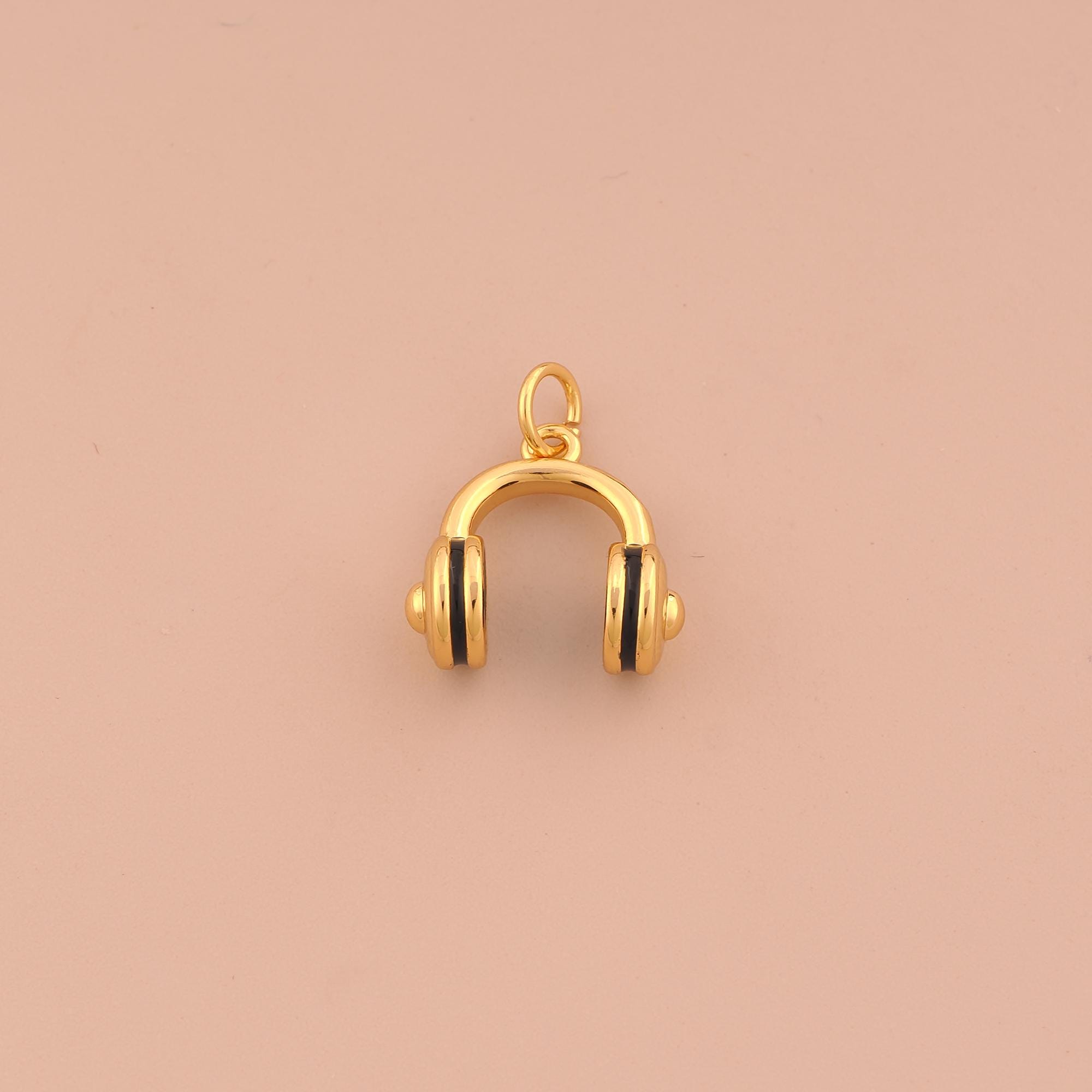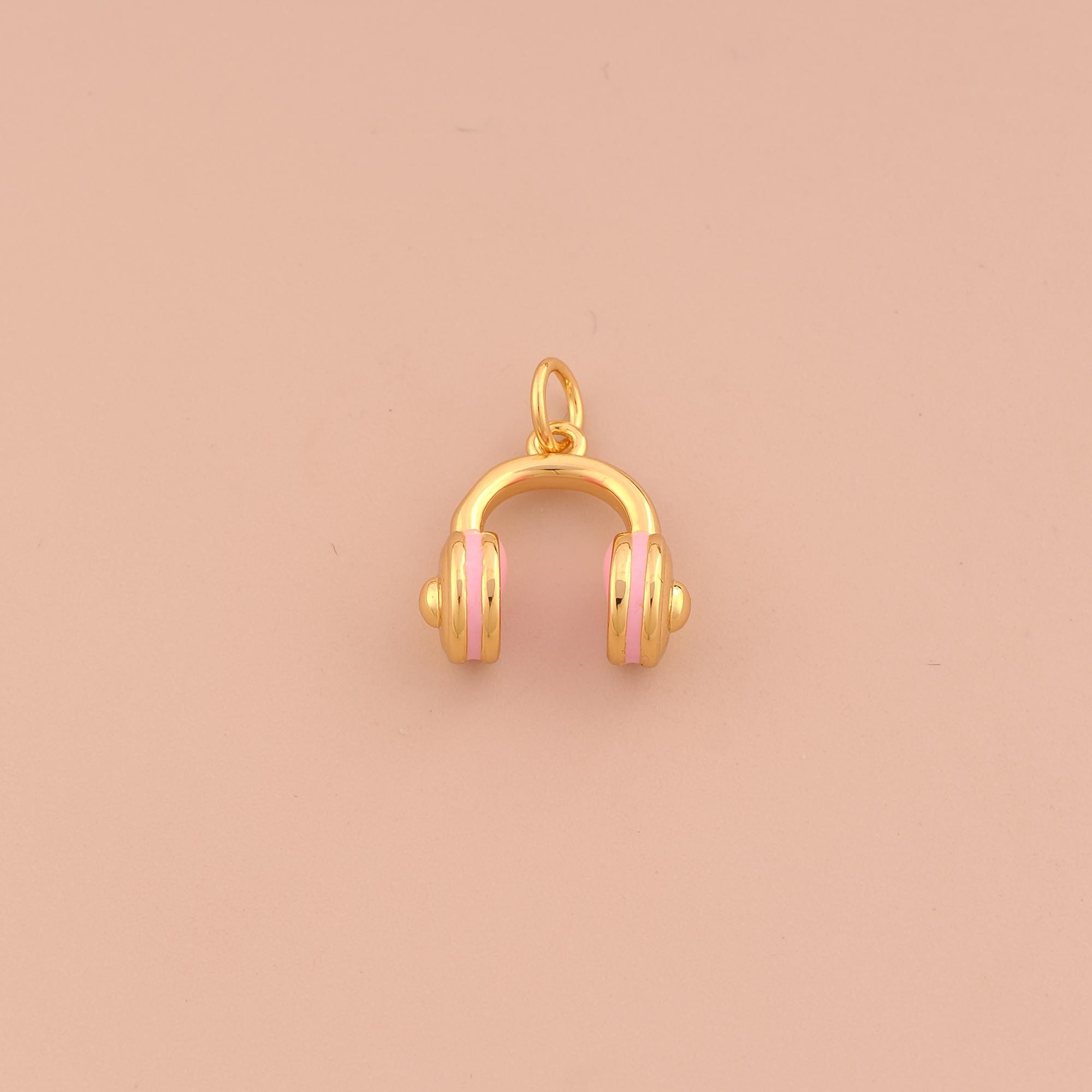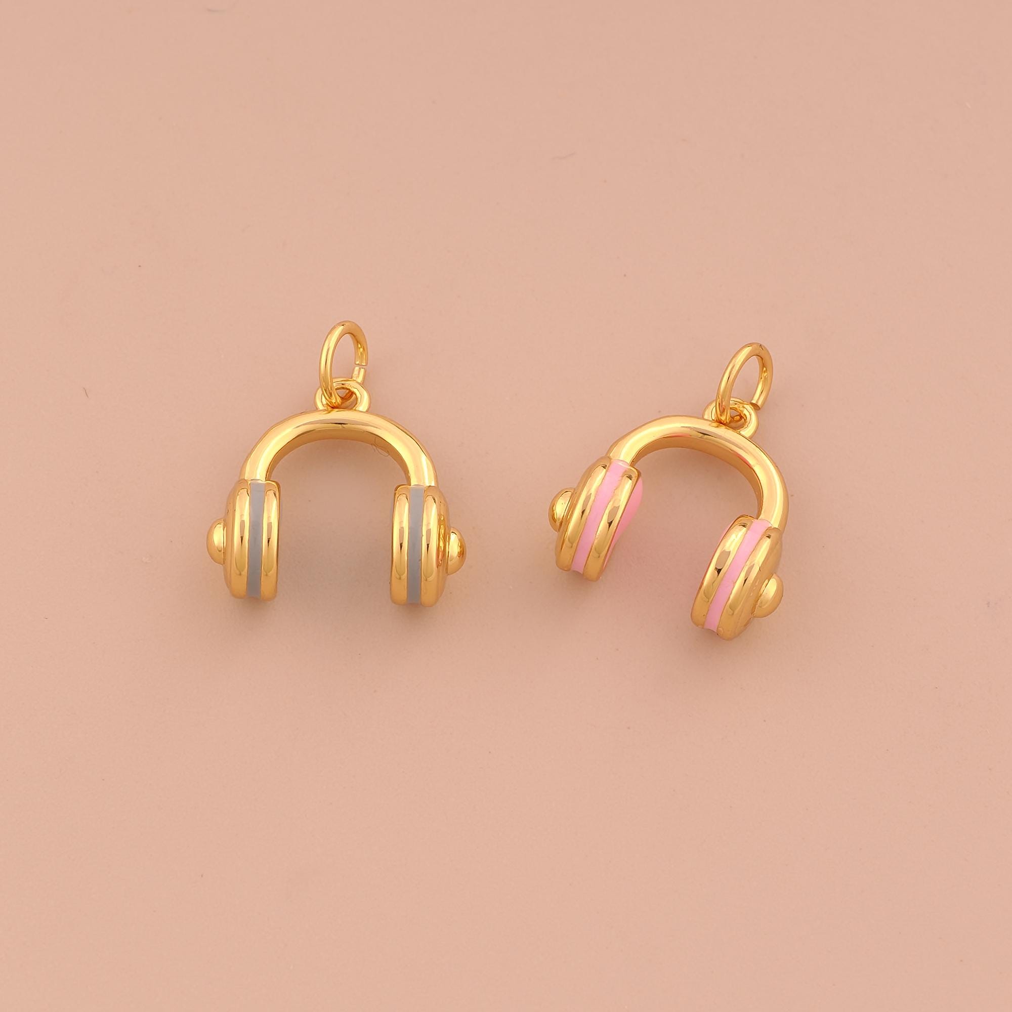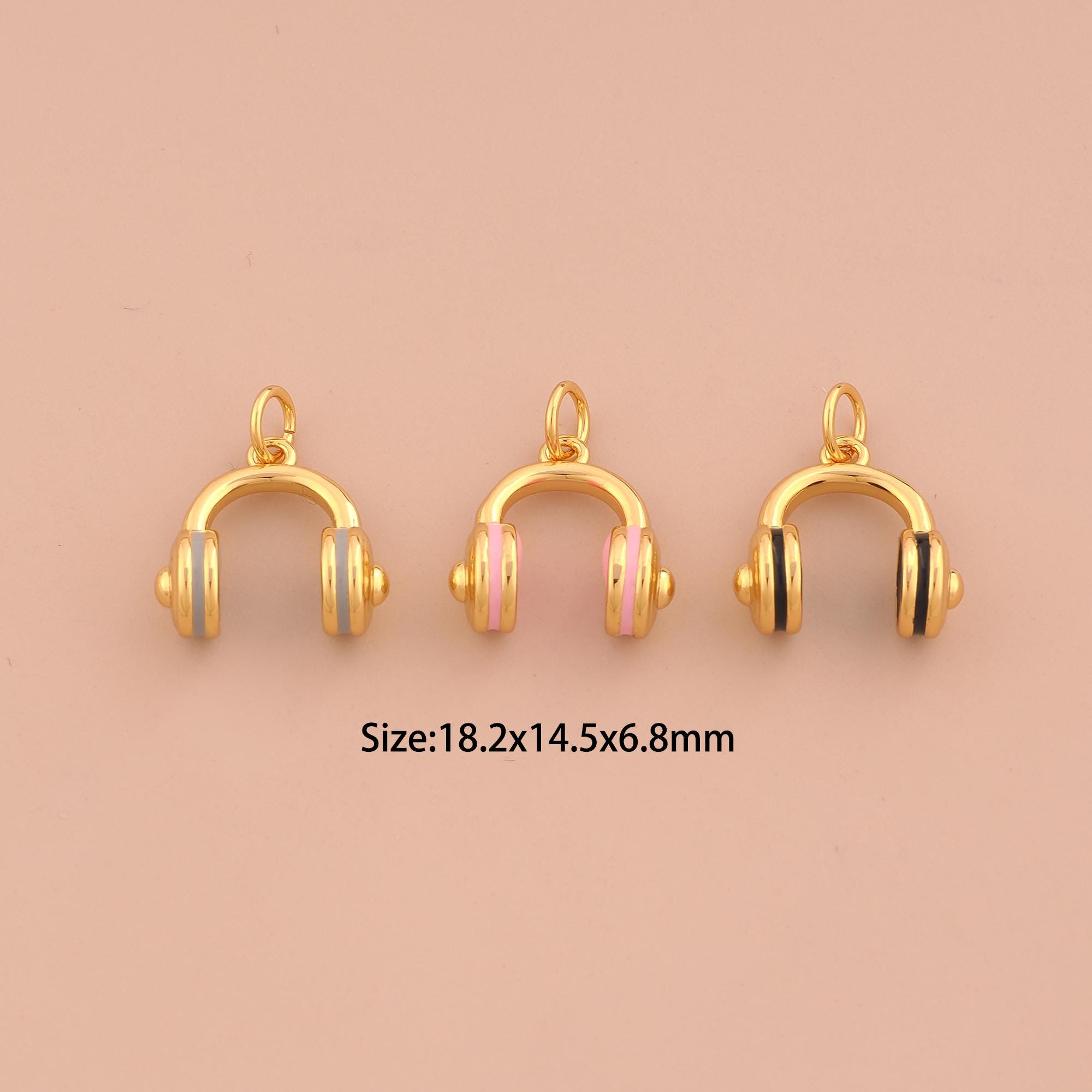 18K Gold Headphone Charms,Enamel Headphone Charms Pendants,Headphone Charm for DIY Jewelry Making Supply