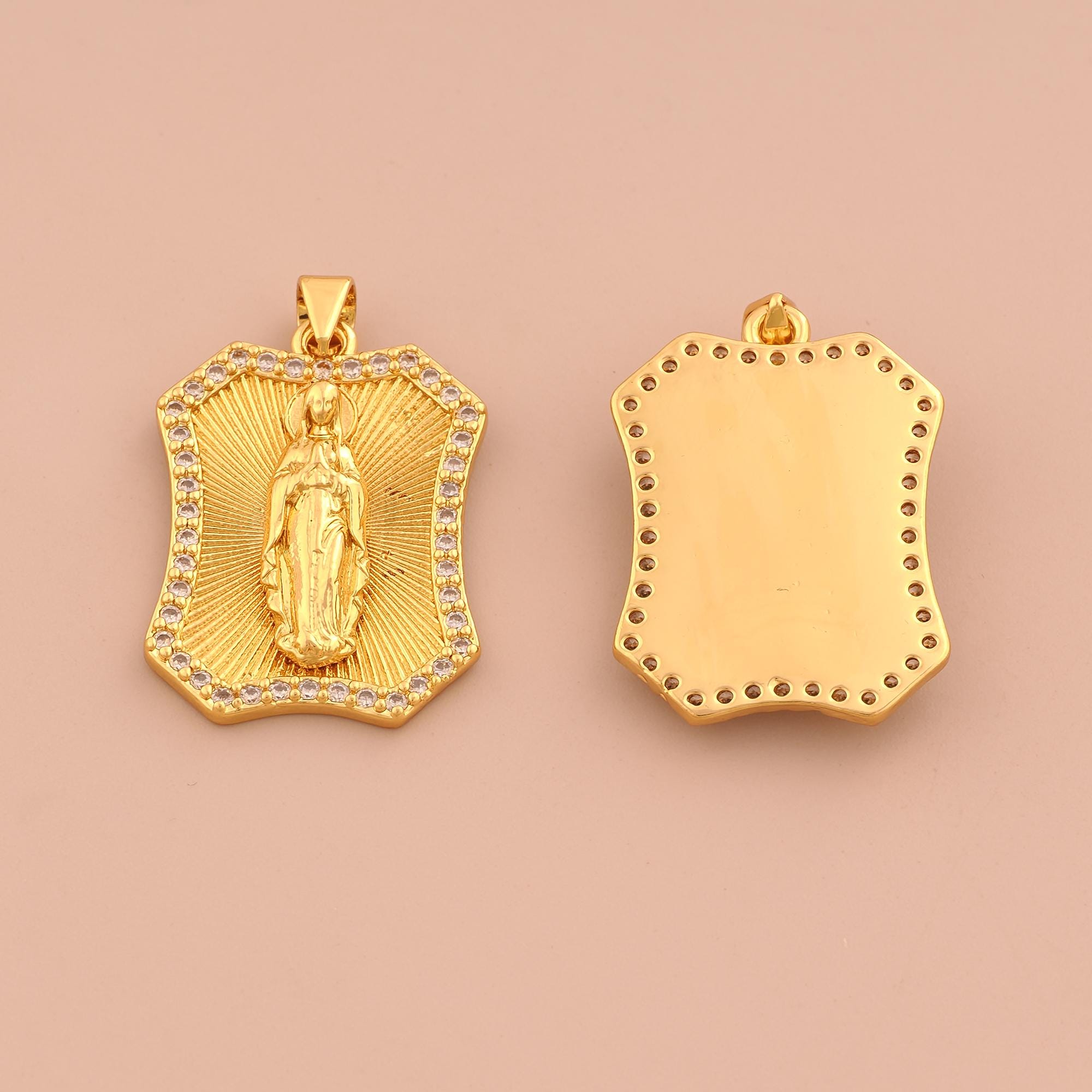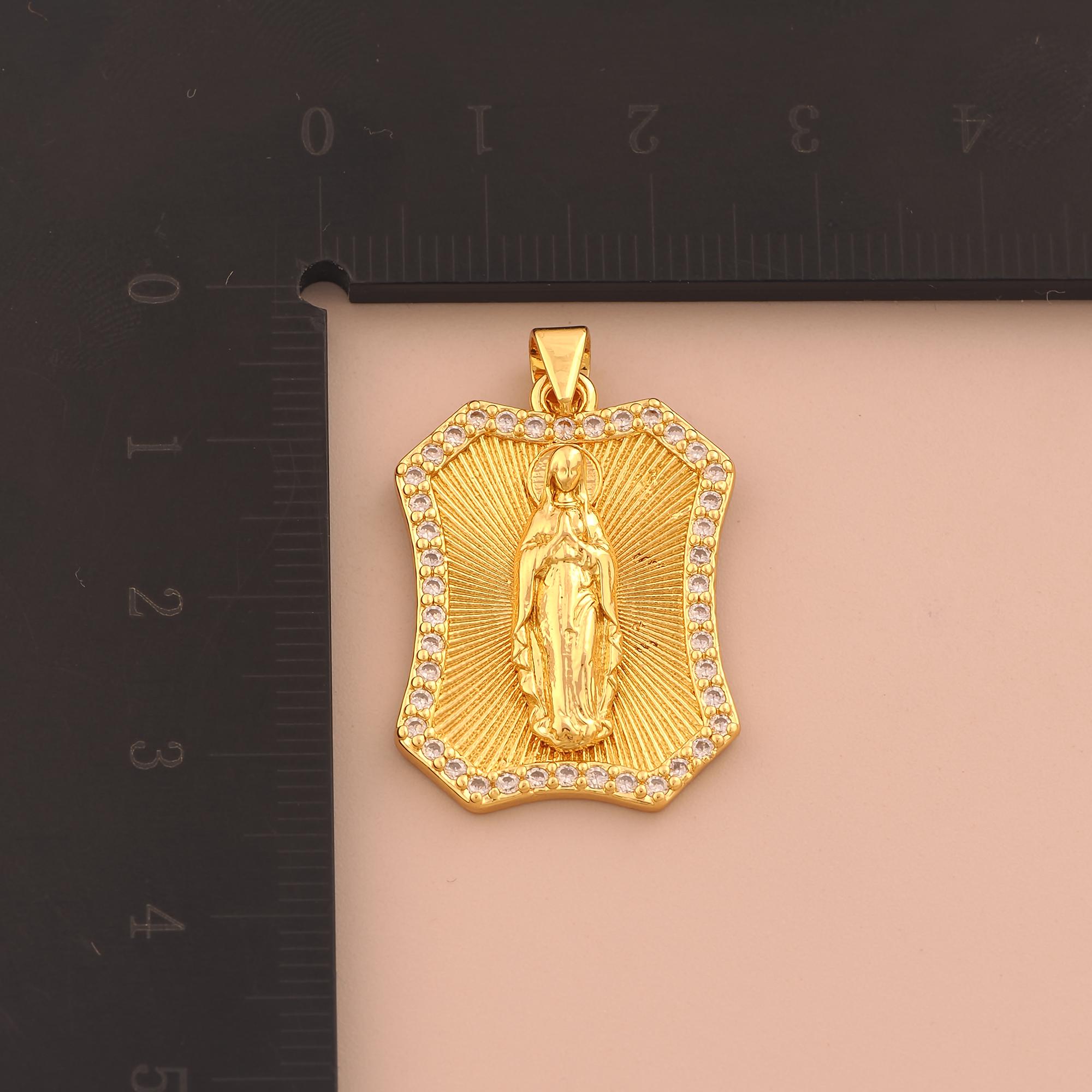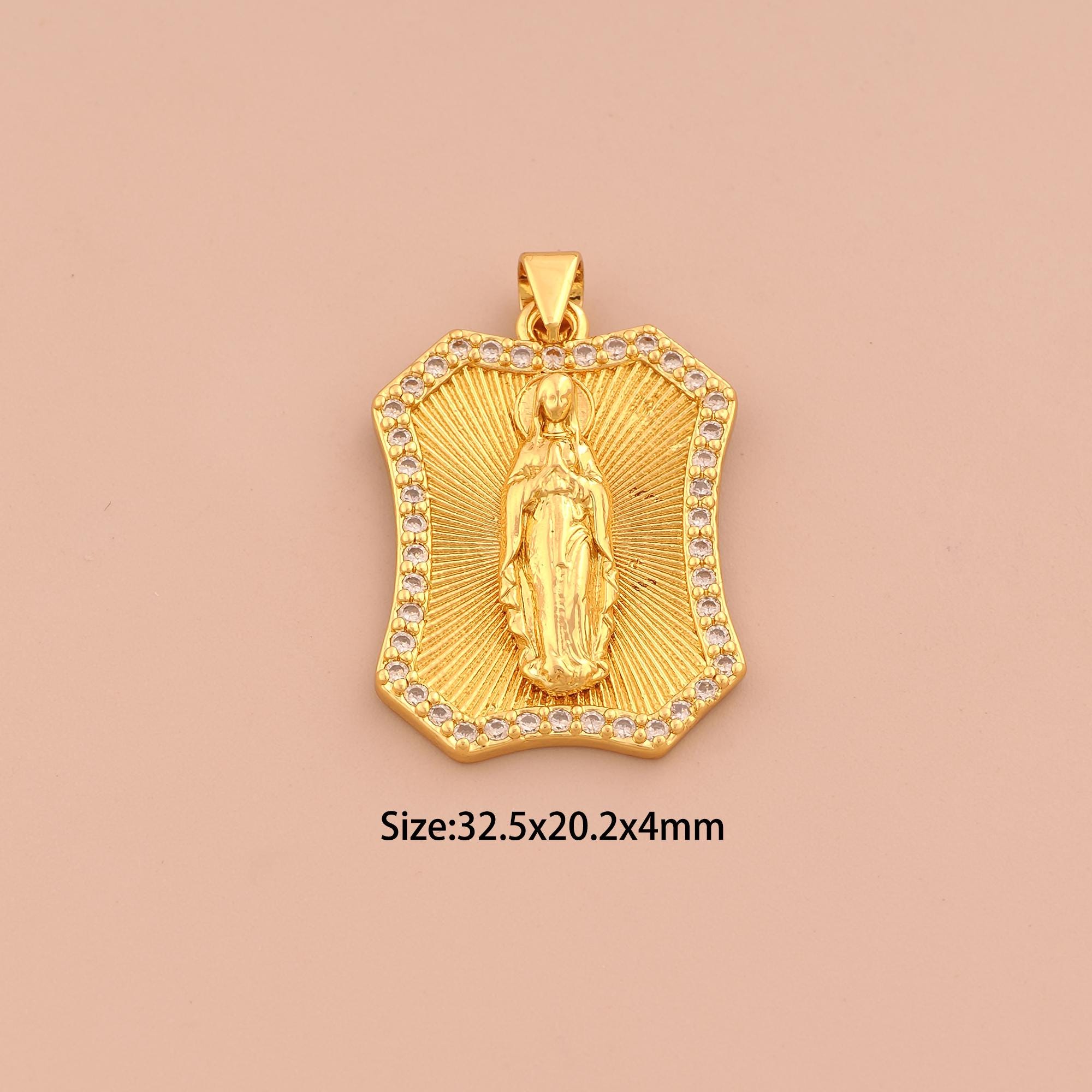 18K Gold Virgin Mary Charms,CZ Pave Religion Charms Pendants,Catholic Charm for DIY Jewelry Making Supply