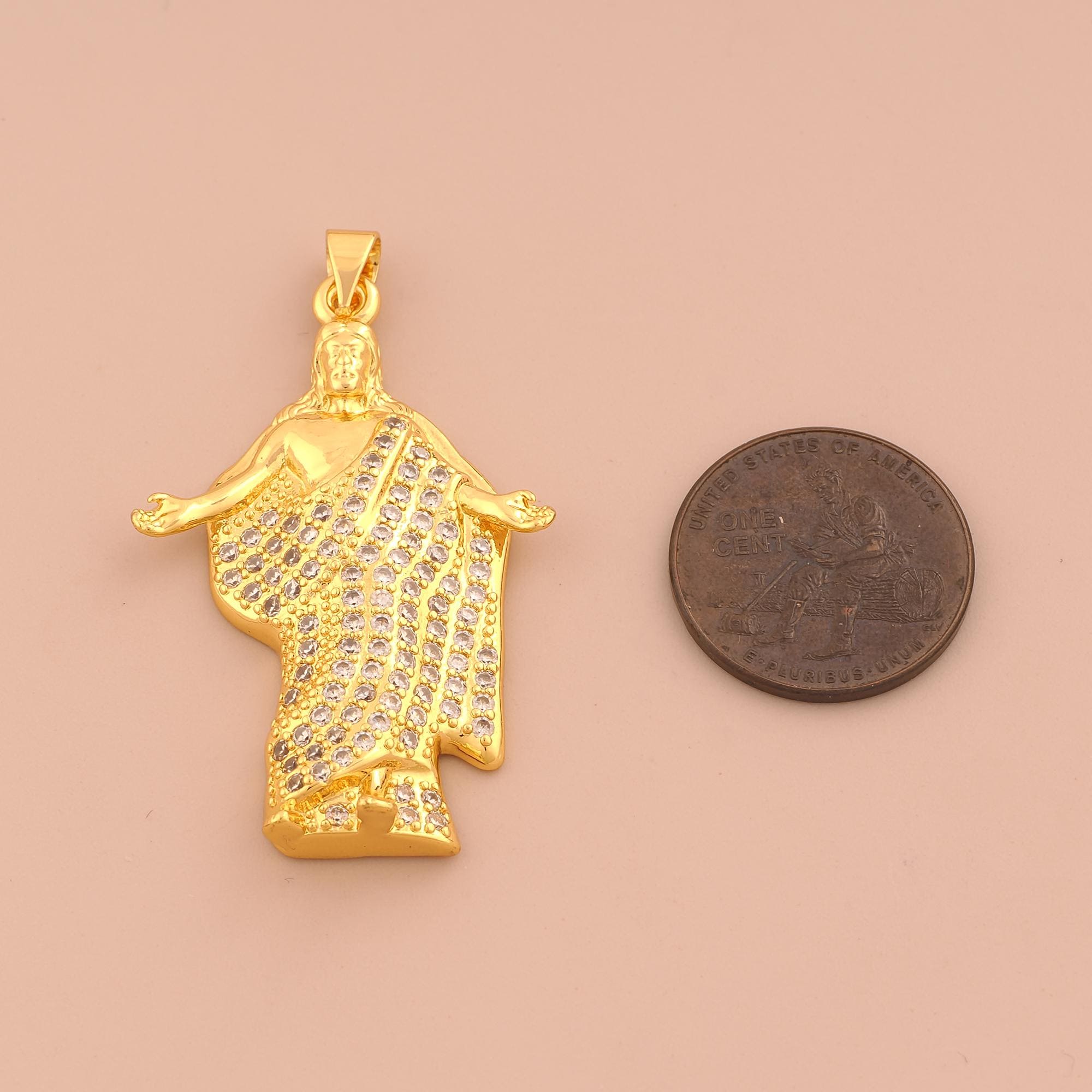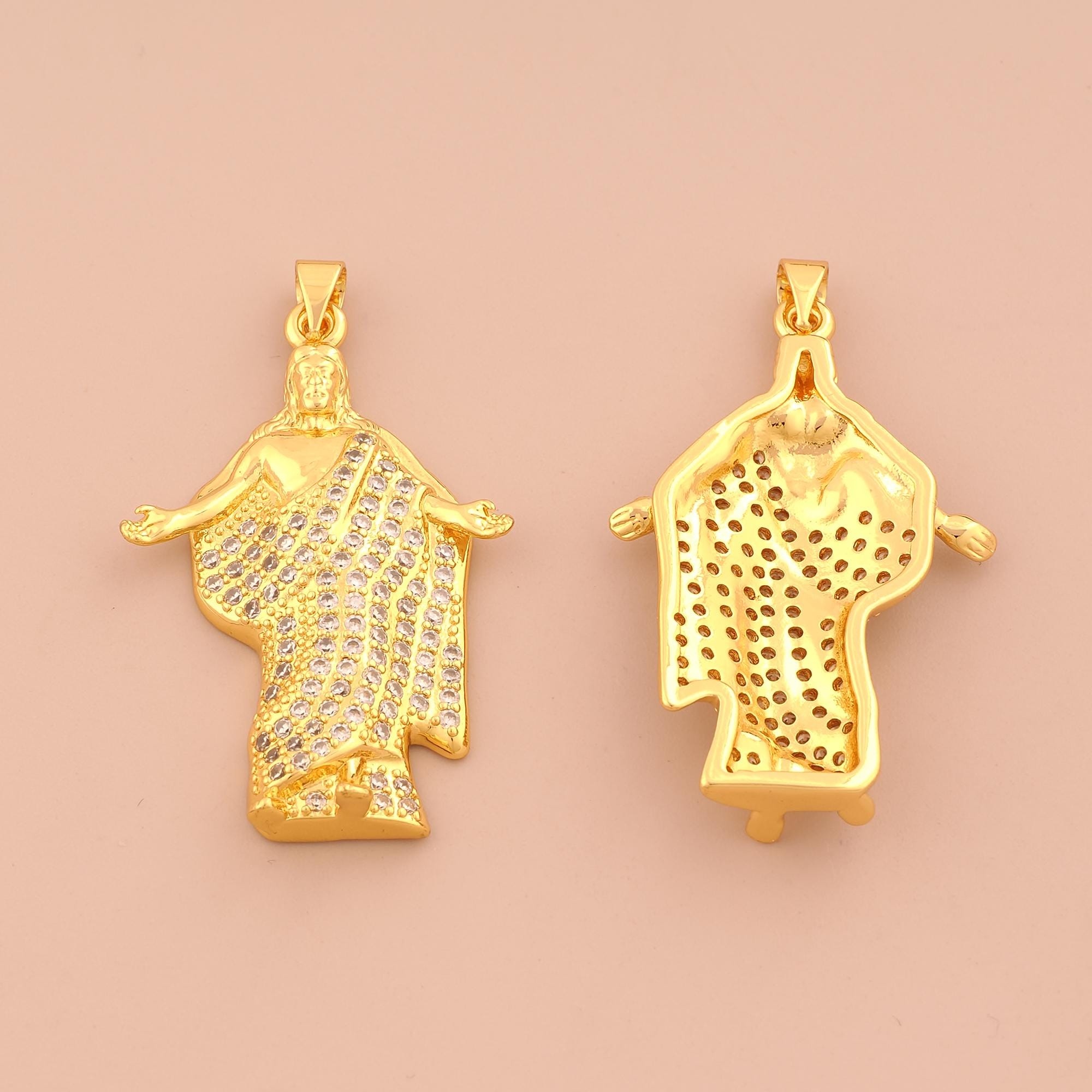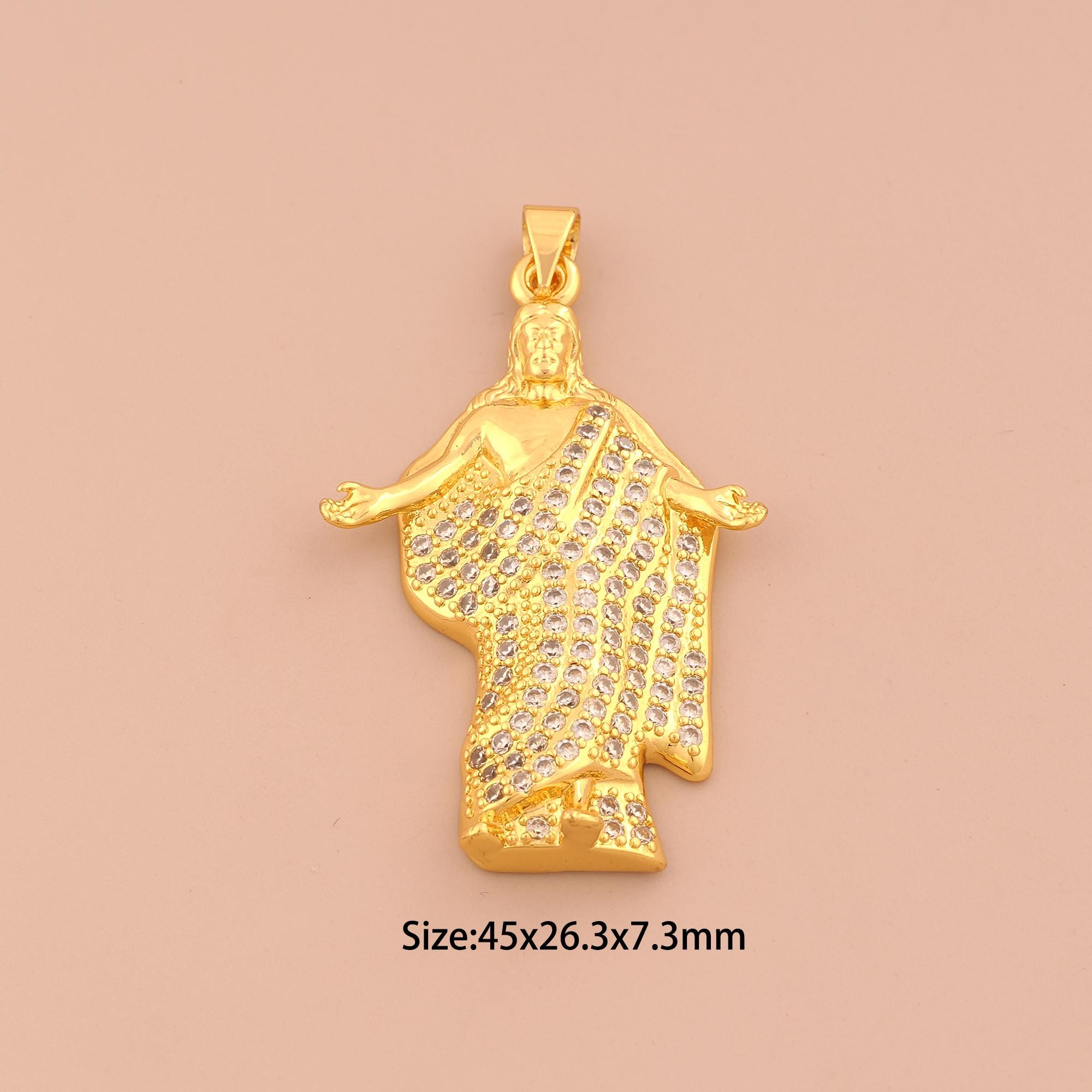 18K Gold Saint Jude Charms,CZ Pave Religion Charms Pendants,St.Juda Charm for DIY Jewelry Making Supply