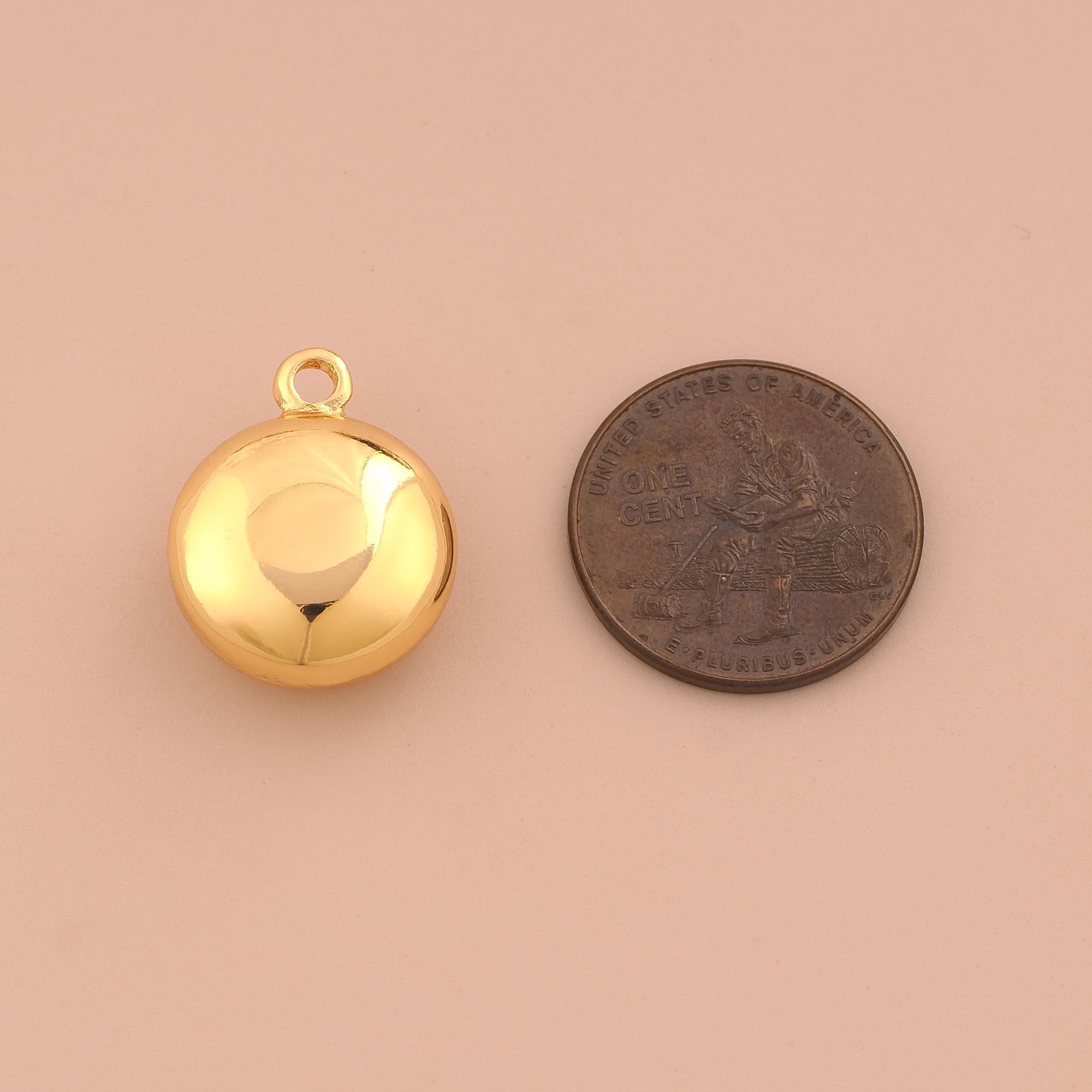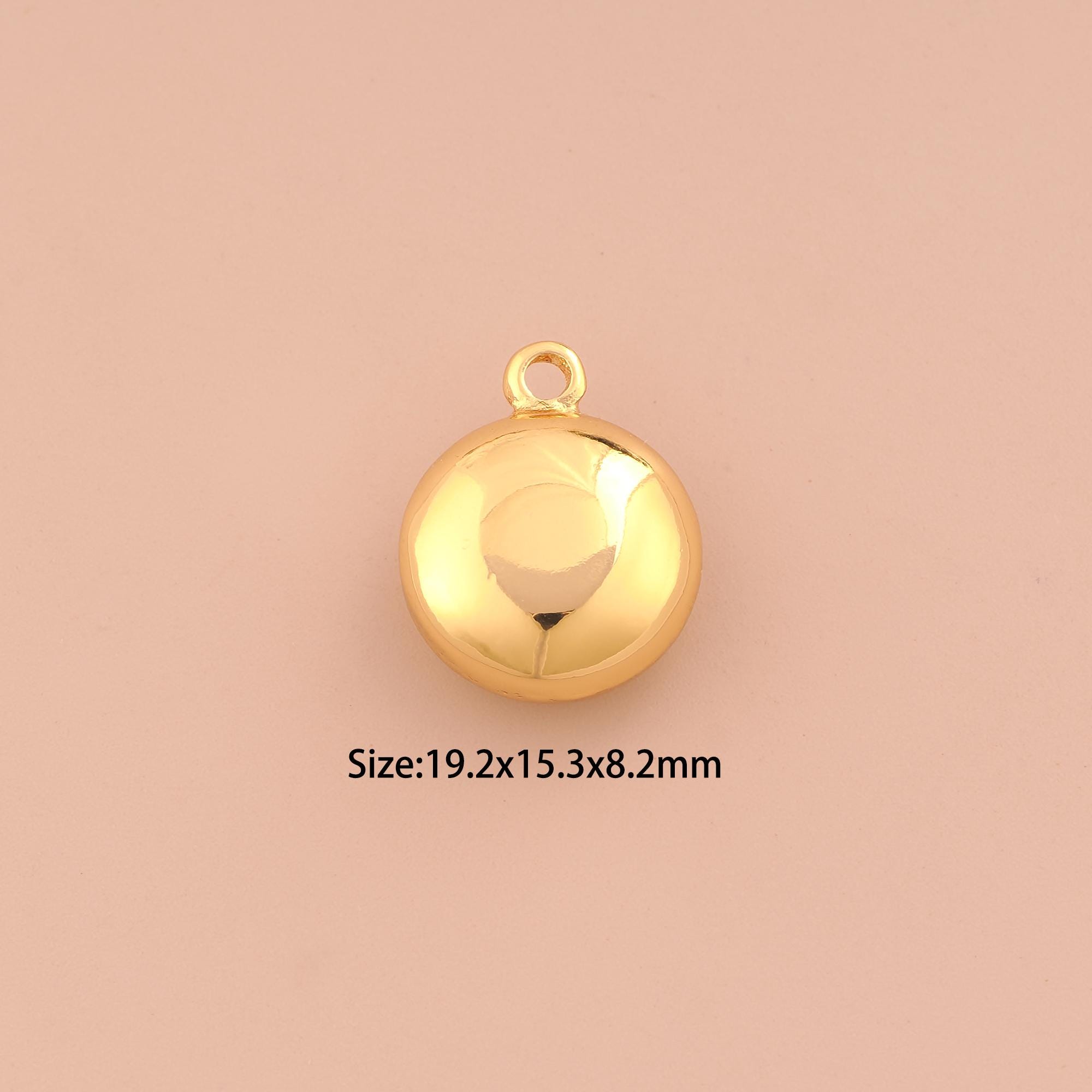 18K Gold Puffed Round Charms,Round Charms Pendants,Round Charm for DIY Jewelry Making Supply