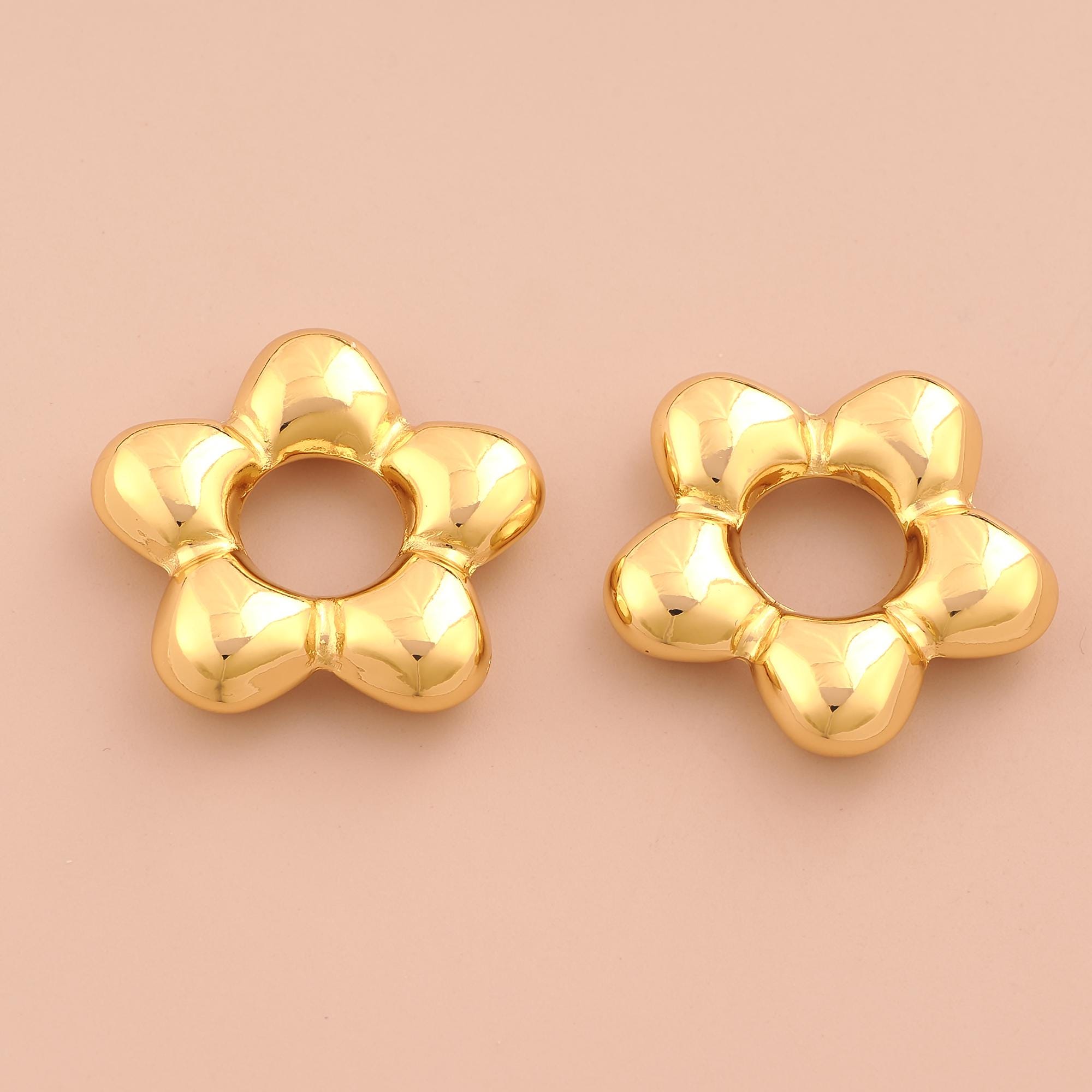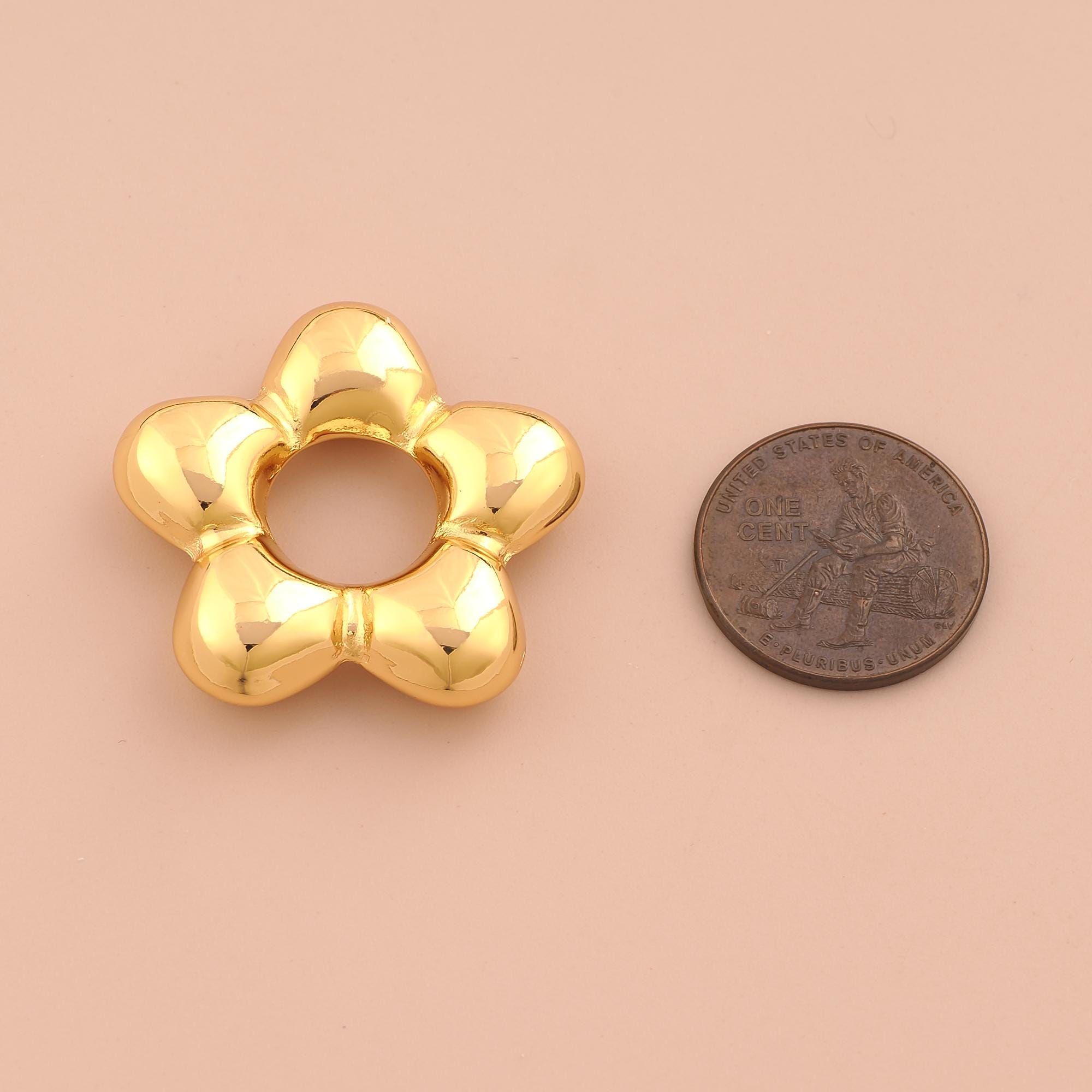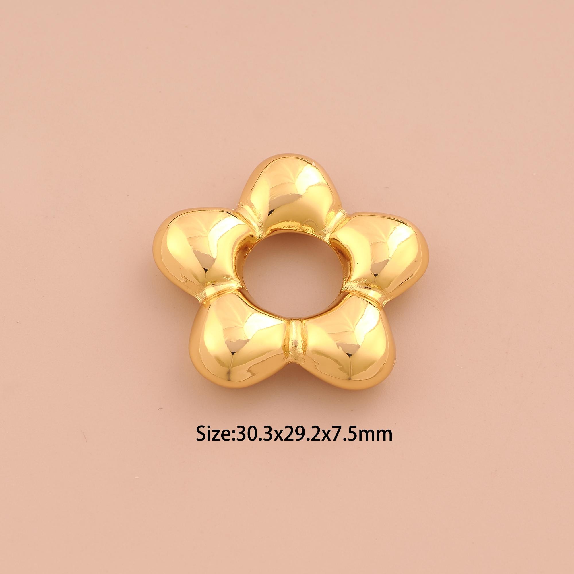 18K Gold Puffed Flower Charms,Flower Charms Pendants,Flower Charm for DIY Jewelry Making Supply