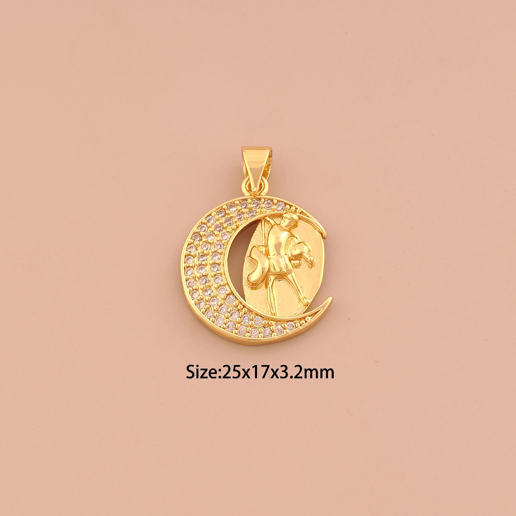 18K Gold CZ Crescent Moon Charms,Celestial Charms Pendants,Moon Charm for DIY Jewelry Making Supply