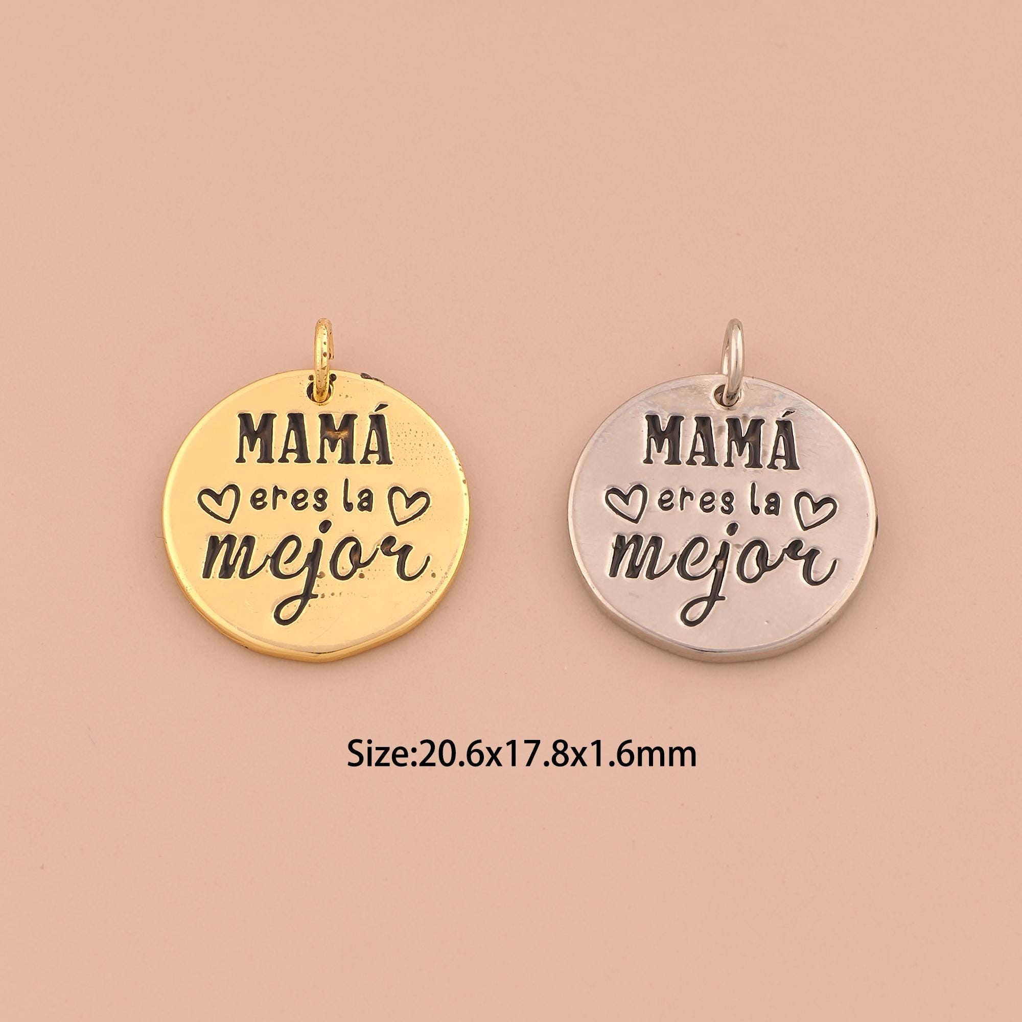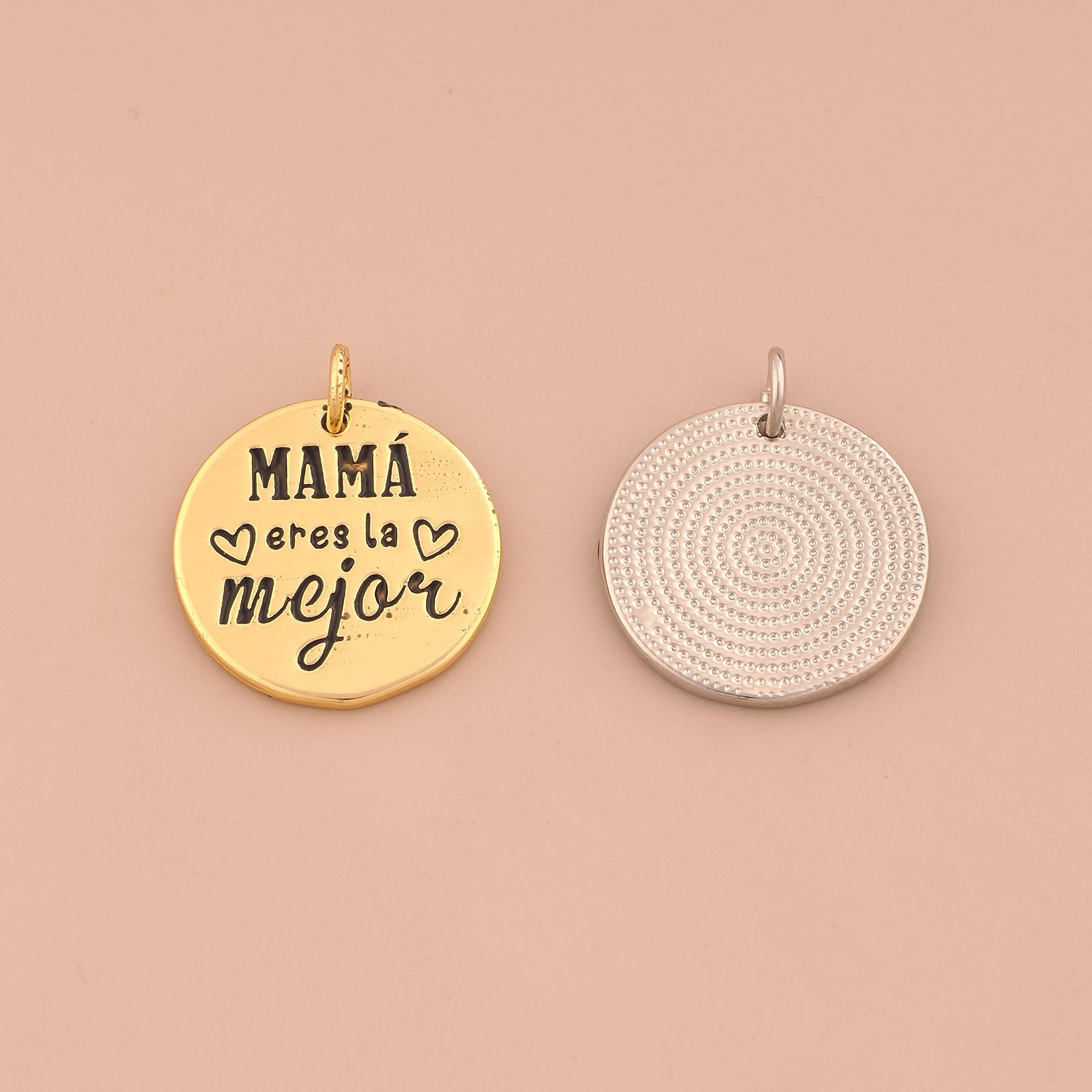 18K Gold Round Charms,Mother's Day Gift Charms Pendants,Medal Charm for DIY Jewelry Making Supply