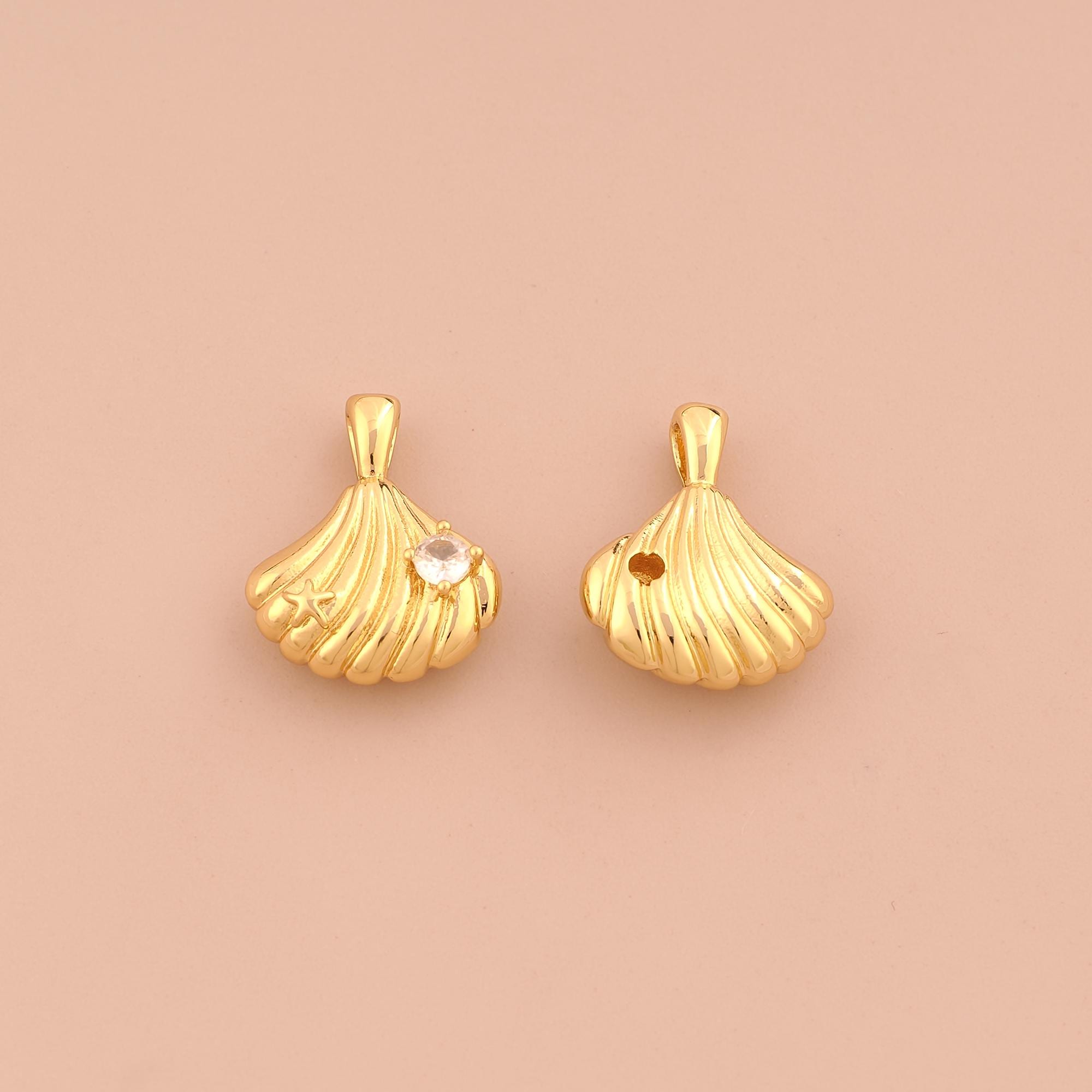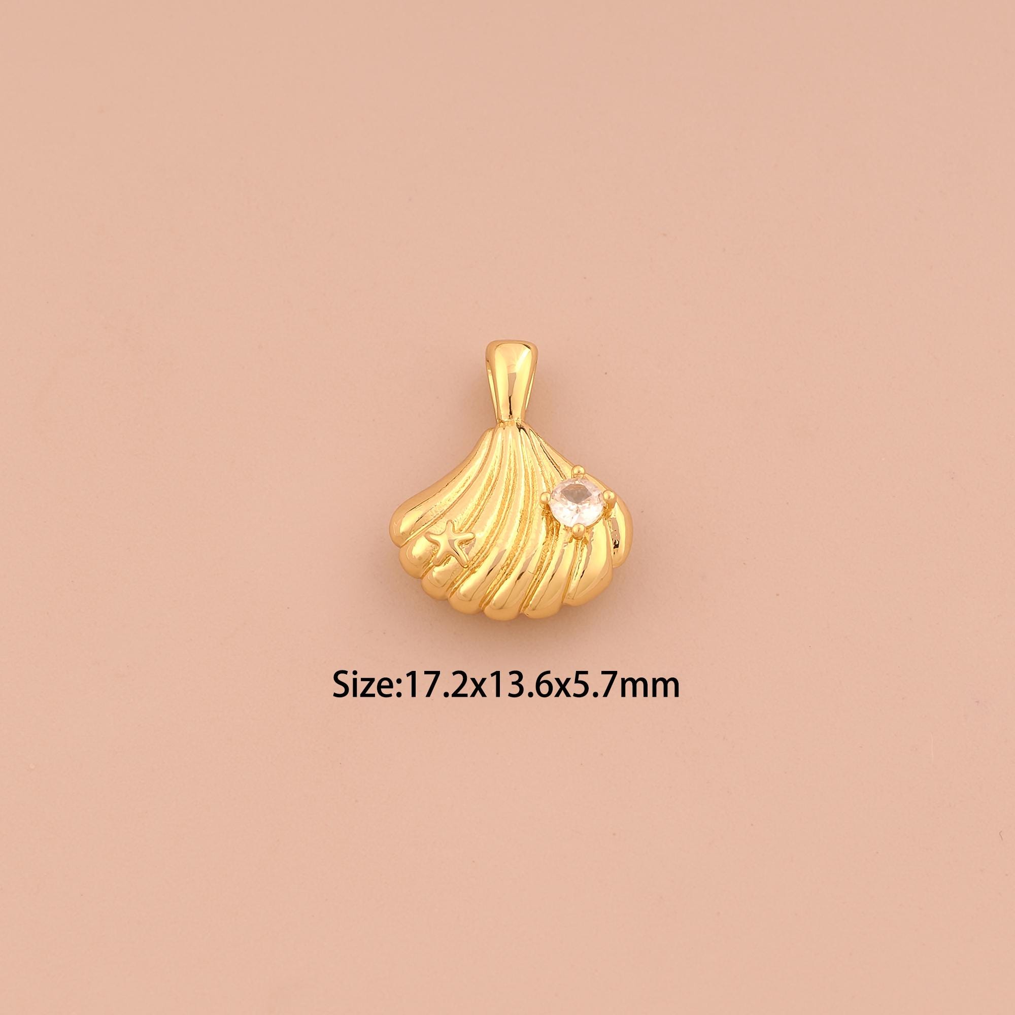 18K Gold Shell Charms,CZ Pave Oyster Charms Pendants,Shell Charm for DIY Jewelry Making Supply