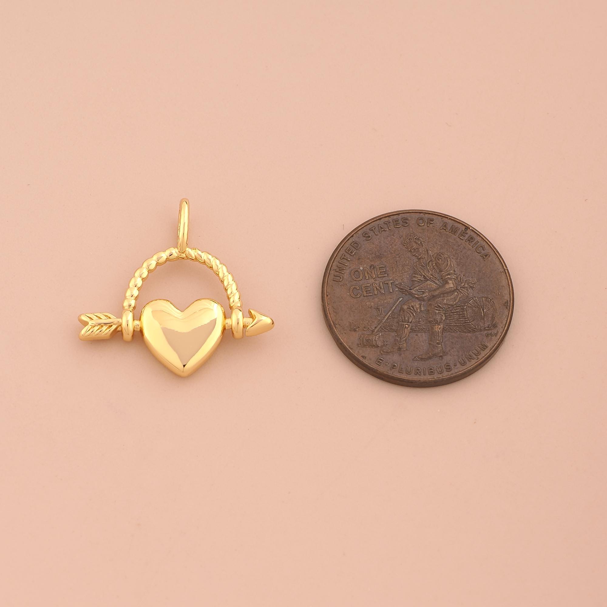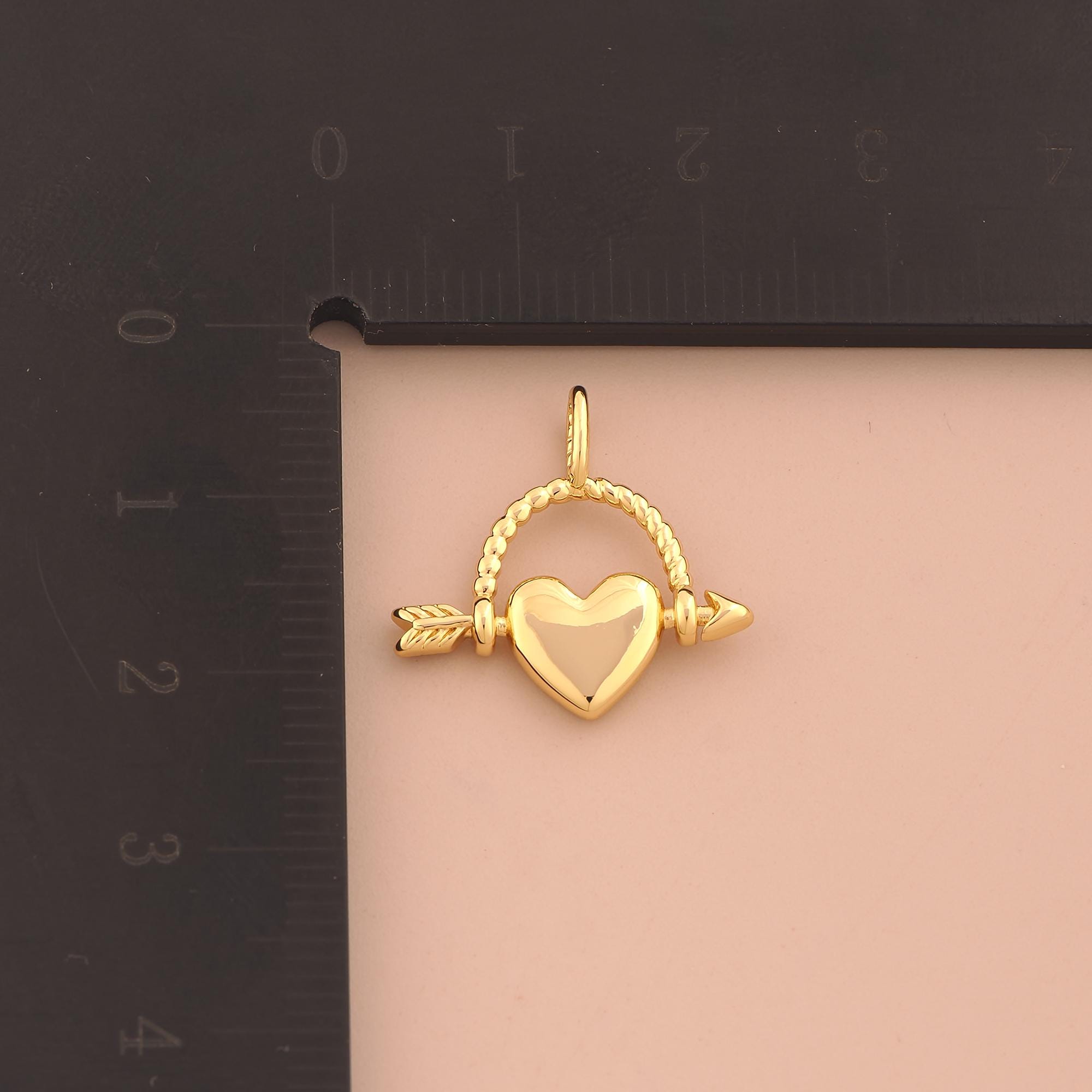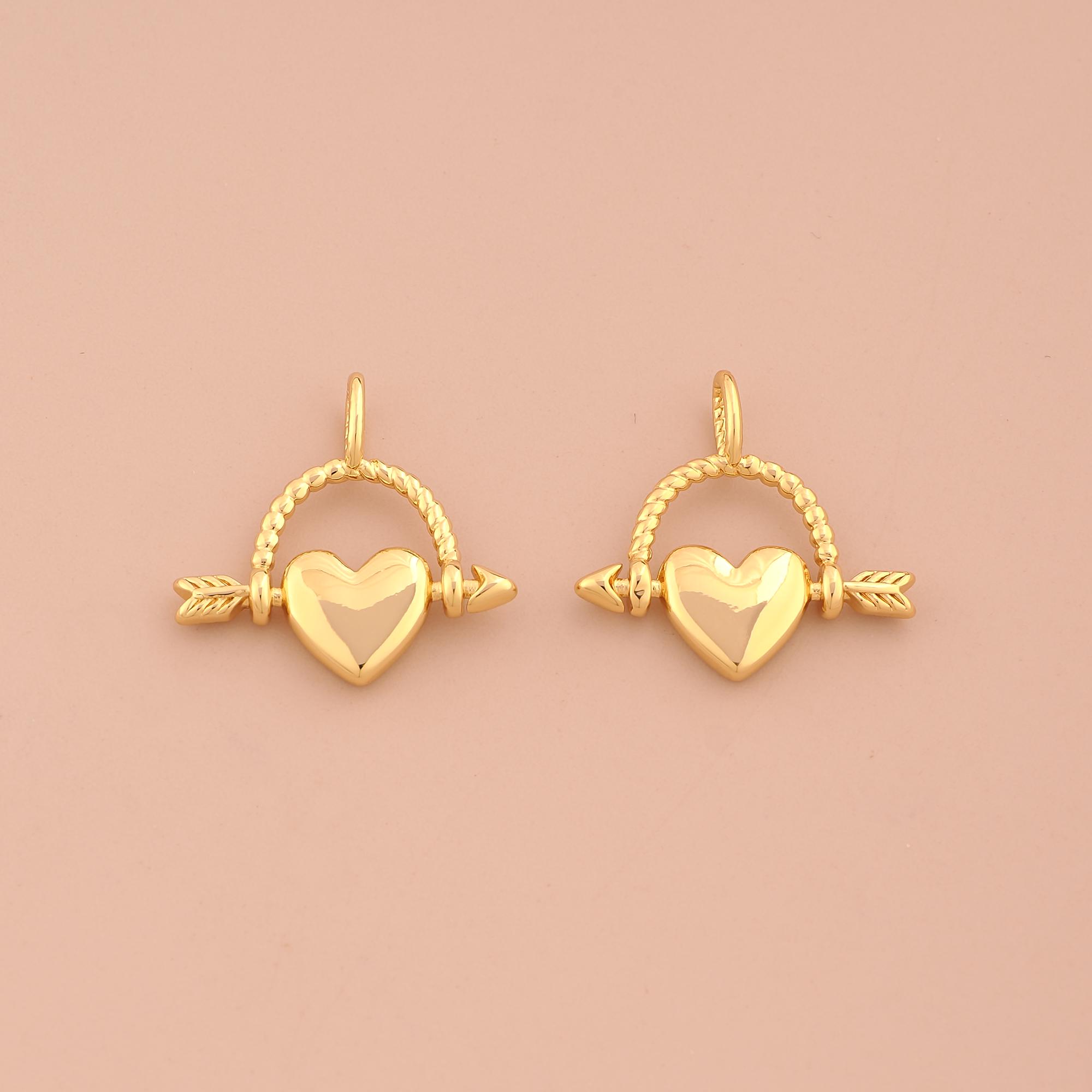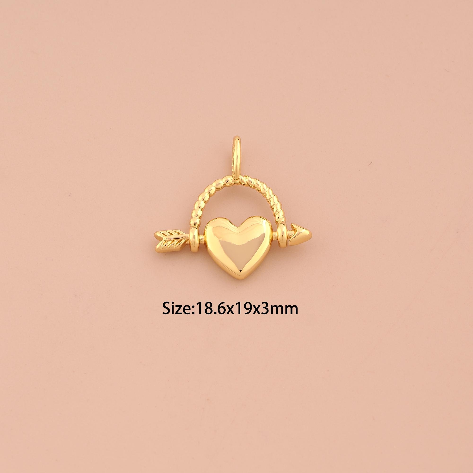18K Gold Heart Charms,Arrow Charms Pendants,Love Charm for DIY Jewelry Making Supply