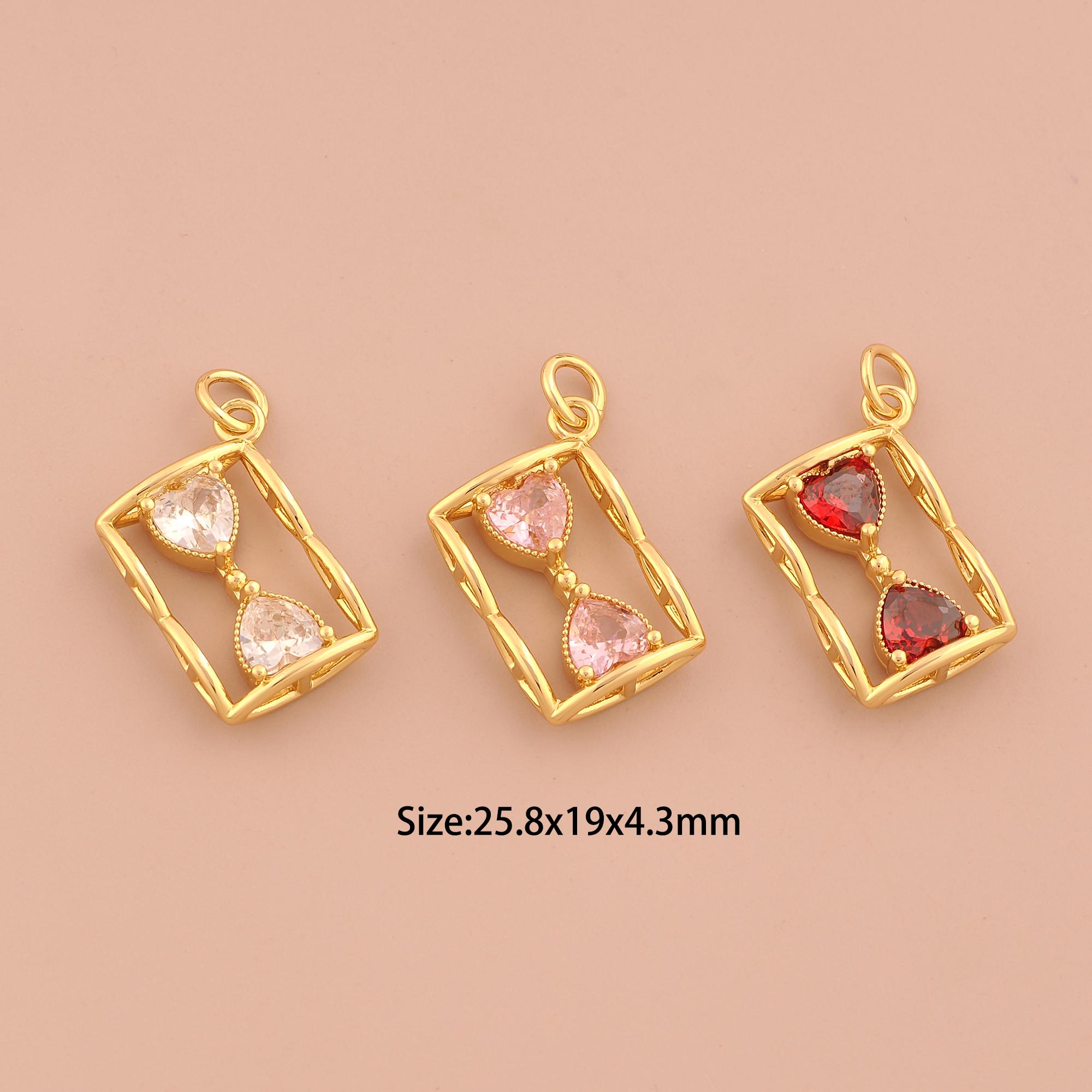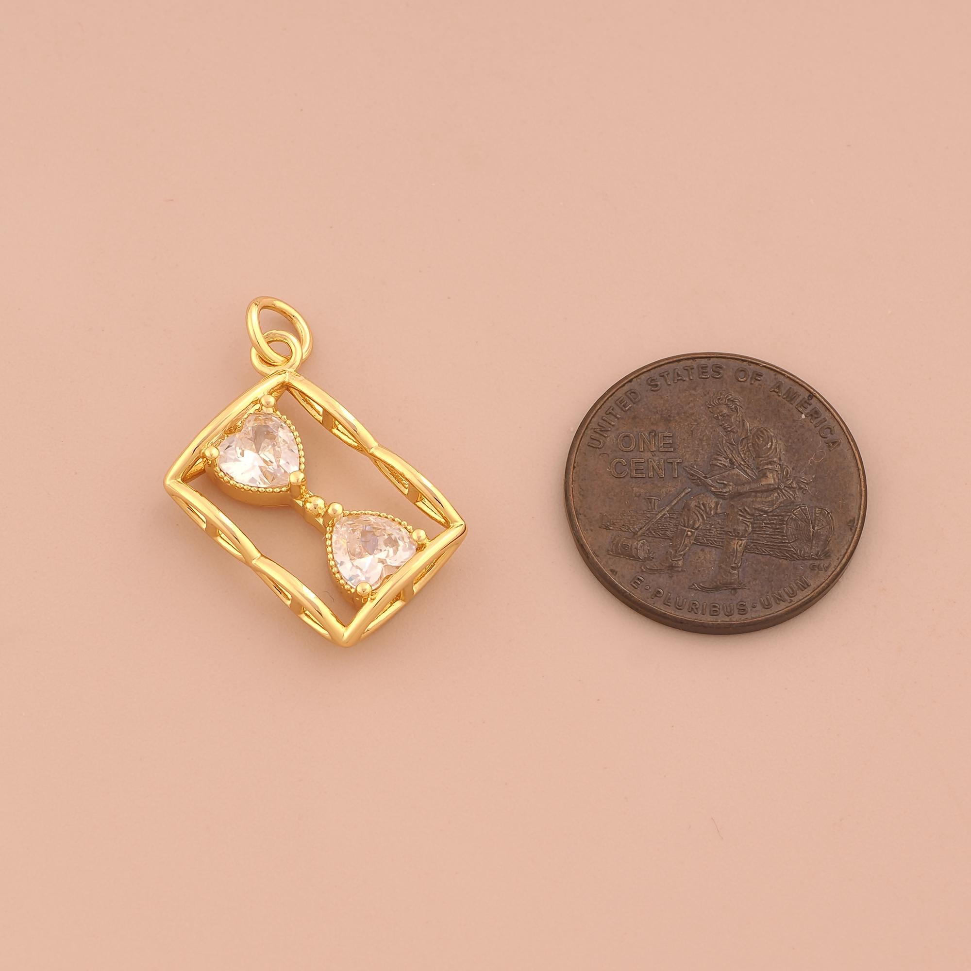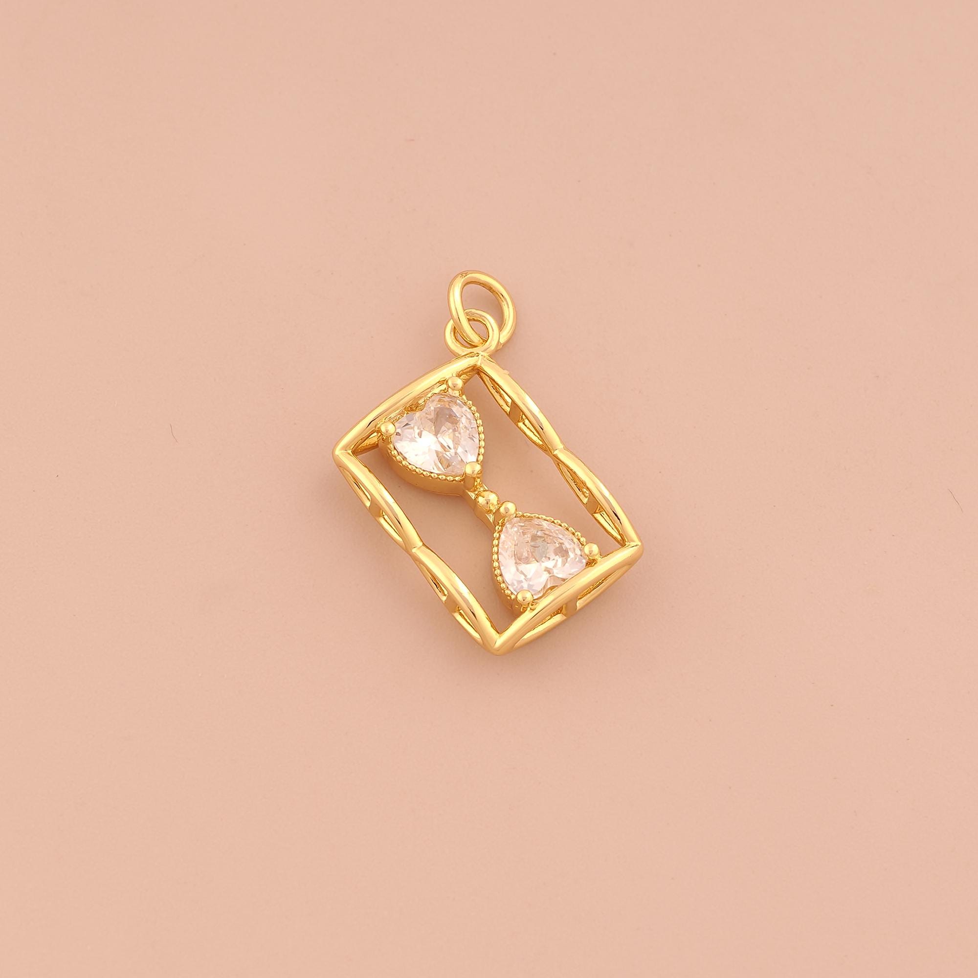 18K Gold Hourglass Charms,CZ Pave Hourglass Charms Pendants,Hourglass Charm for DIY Jewelry Making Supply