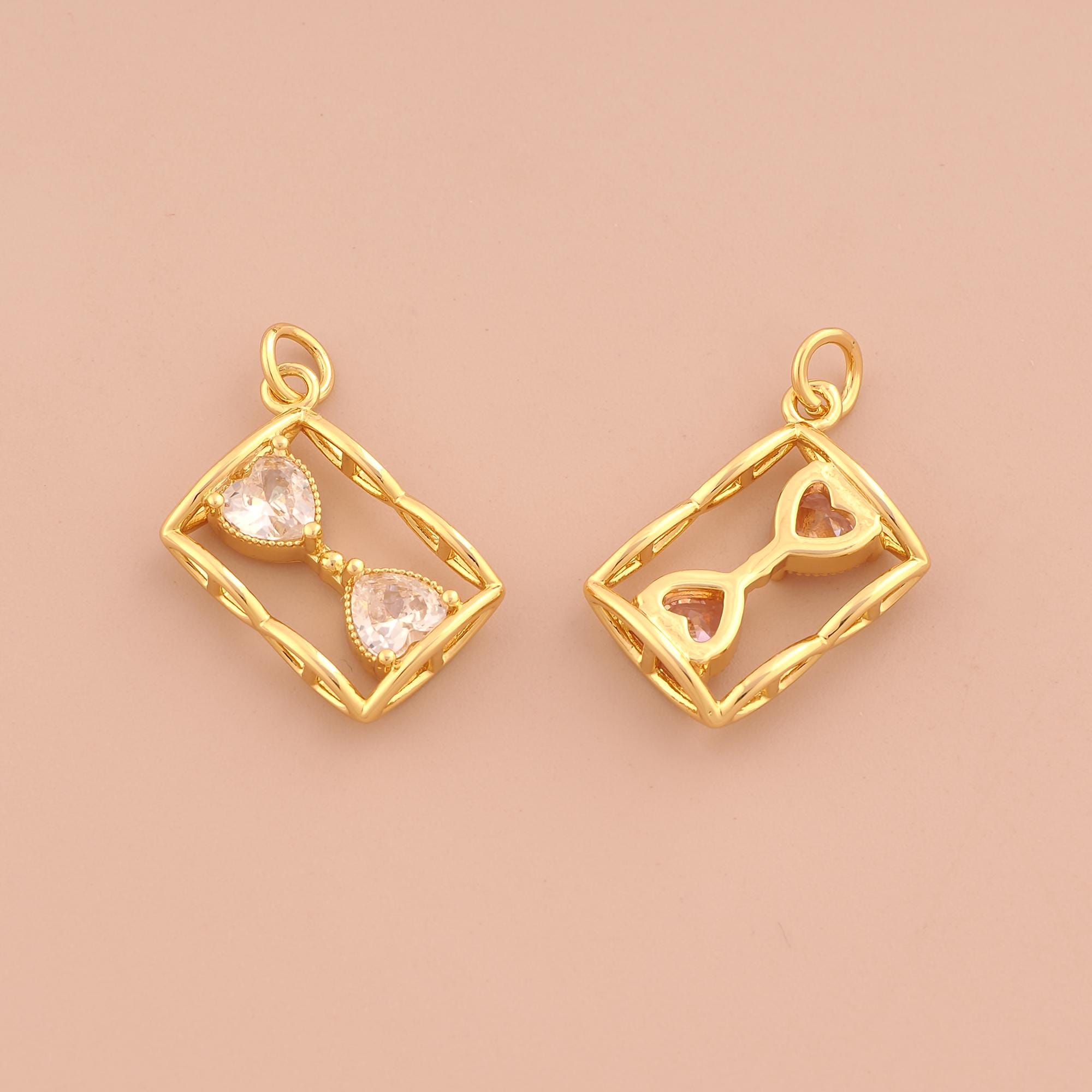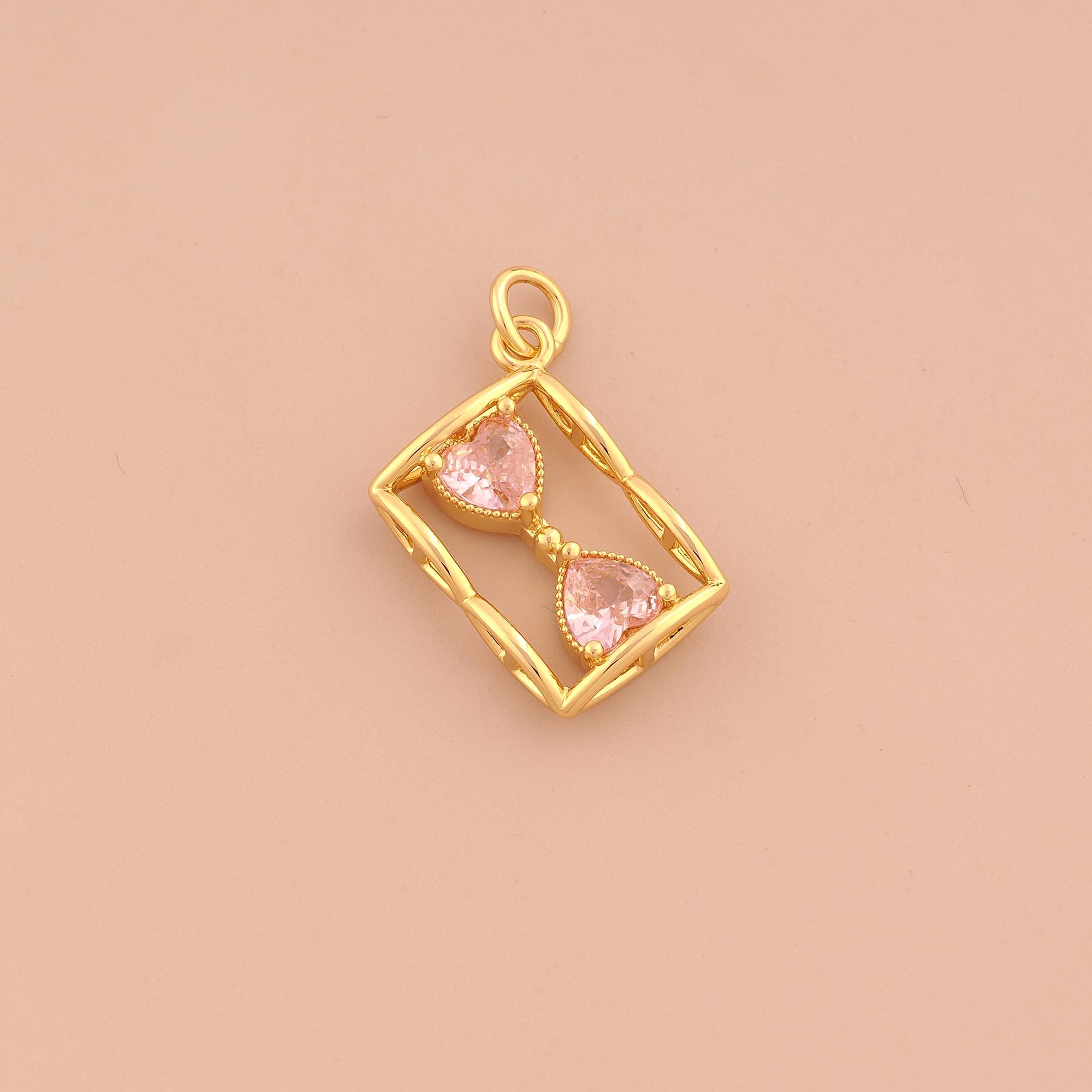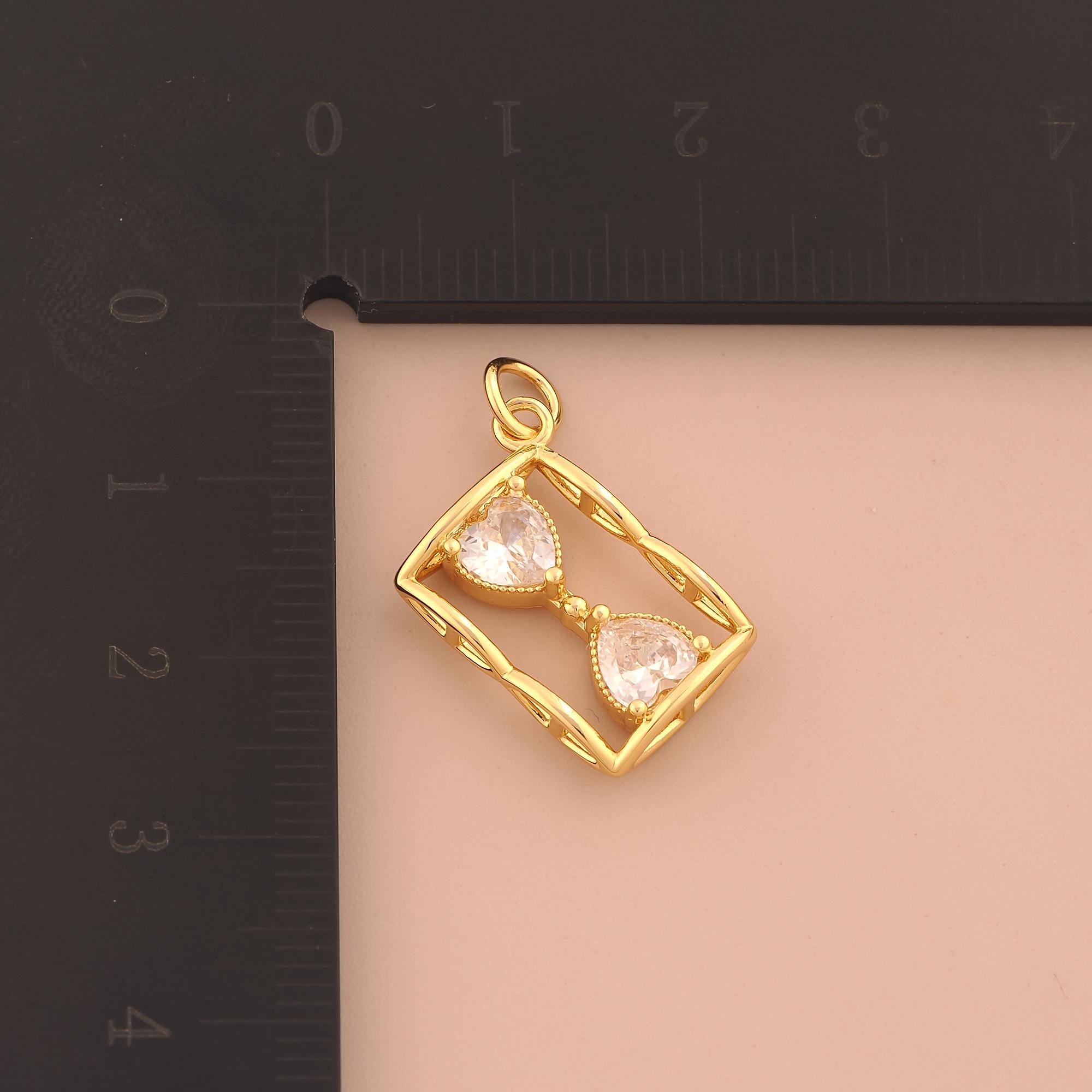 18K Gold Hourglass Charms,CZ Pave Hourglass Charms Pendants,Hourglass Charm for DIY Jewelry Making Supply