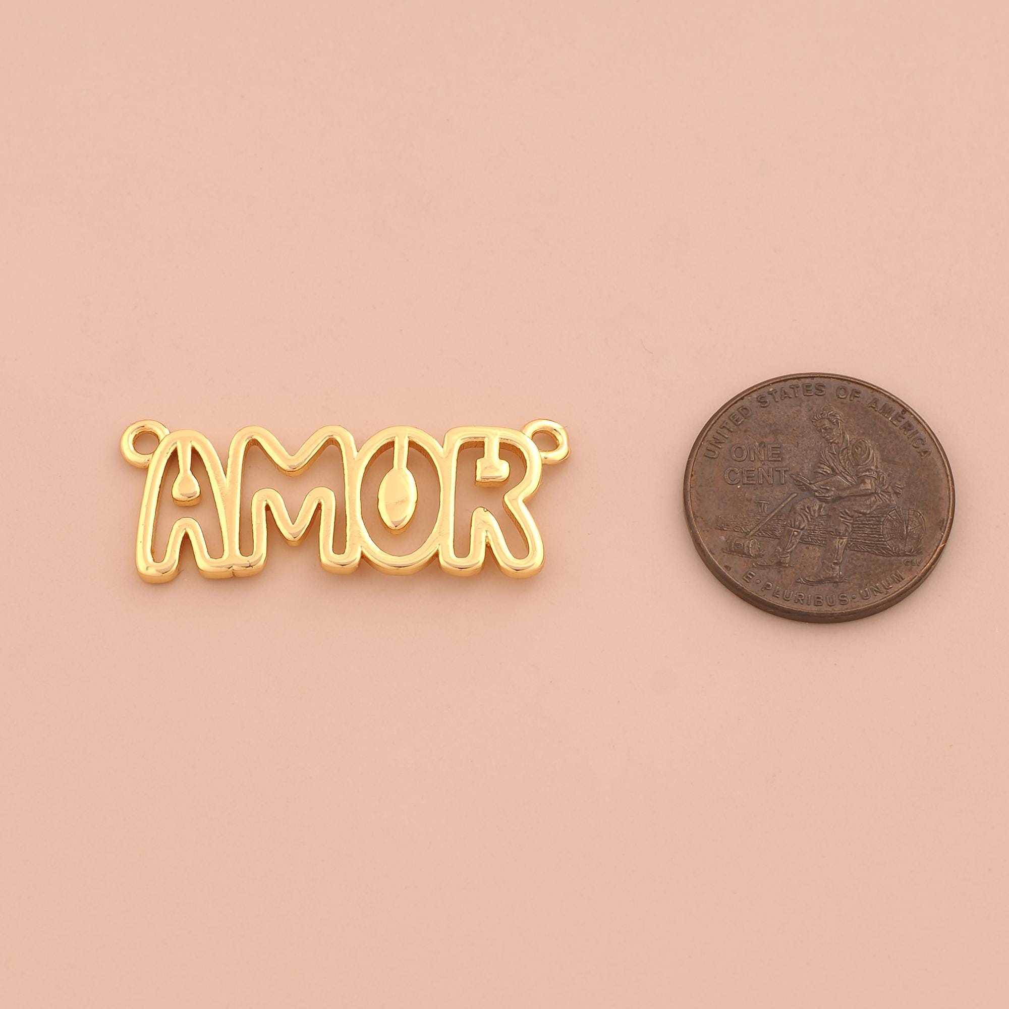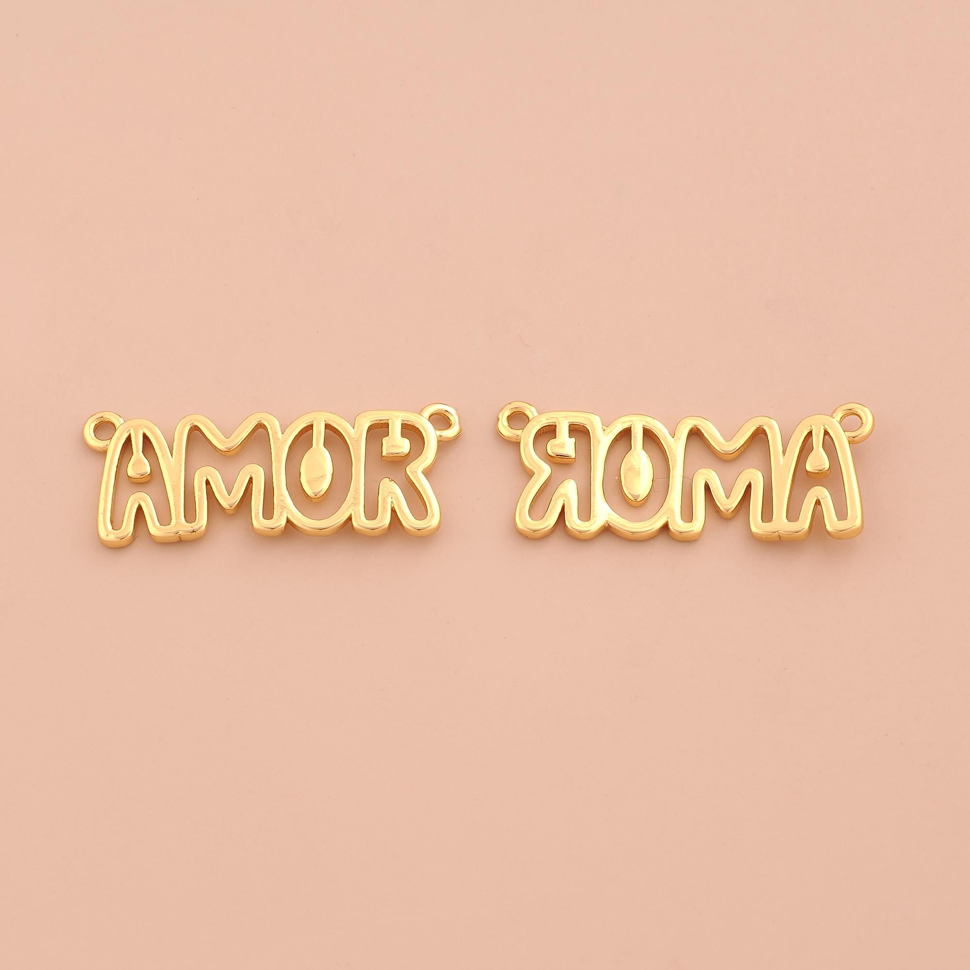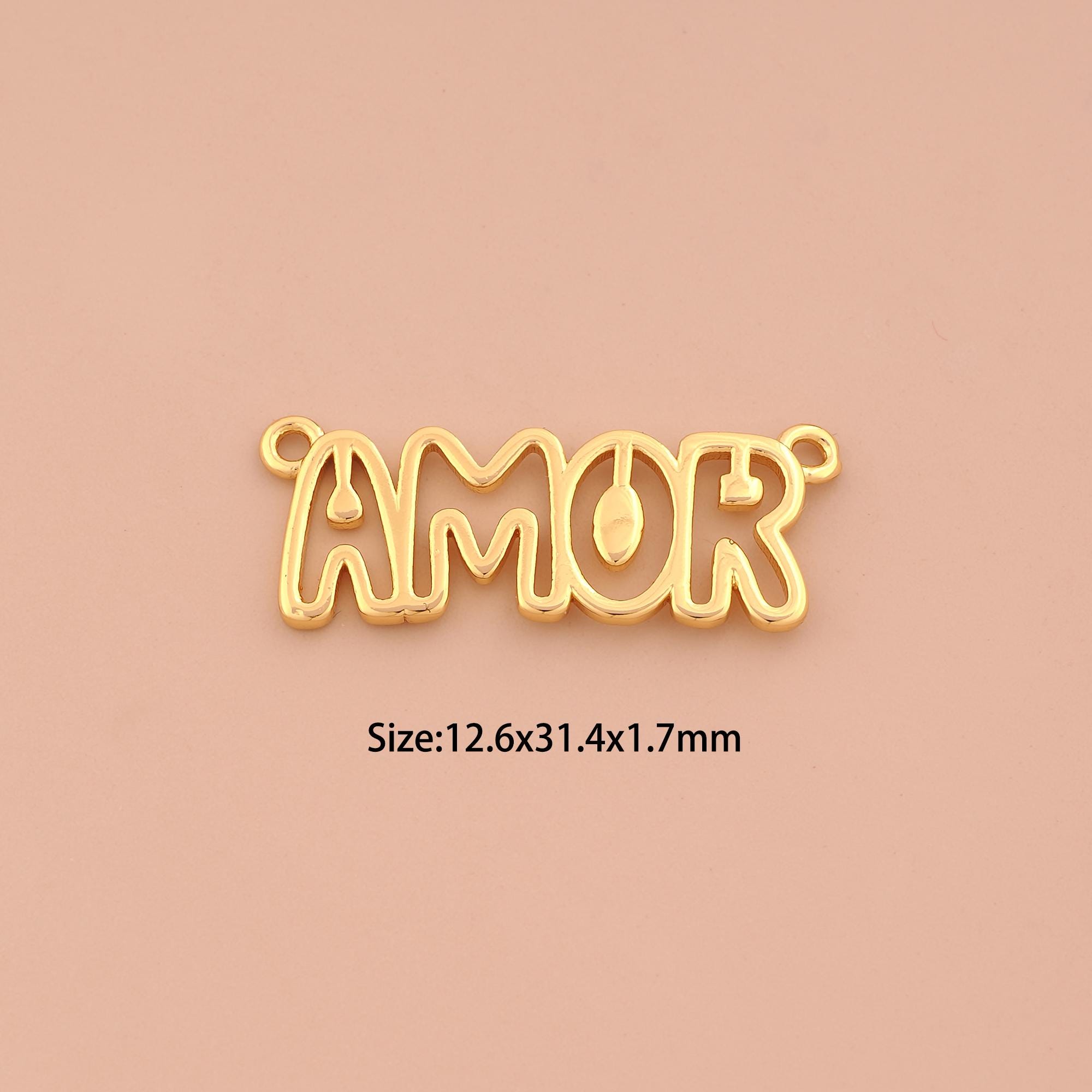 18K Gold AMOR Charms,Letter Charms Pendants,AMOR Charm for DIY Jewelry Making Supply