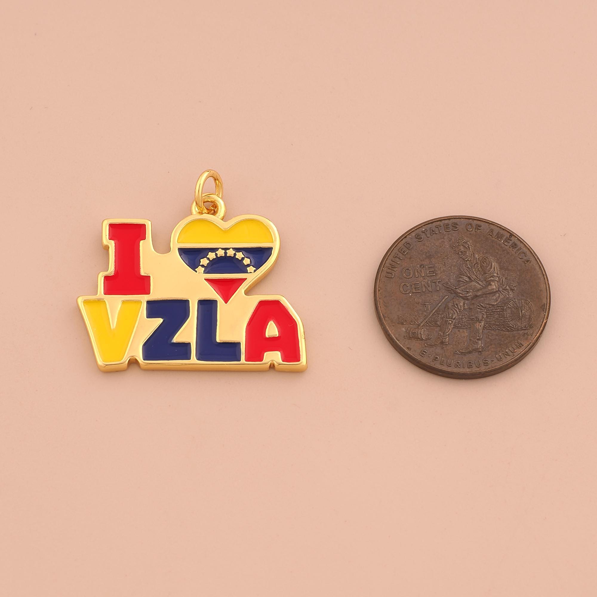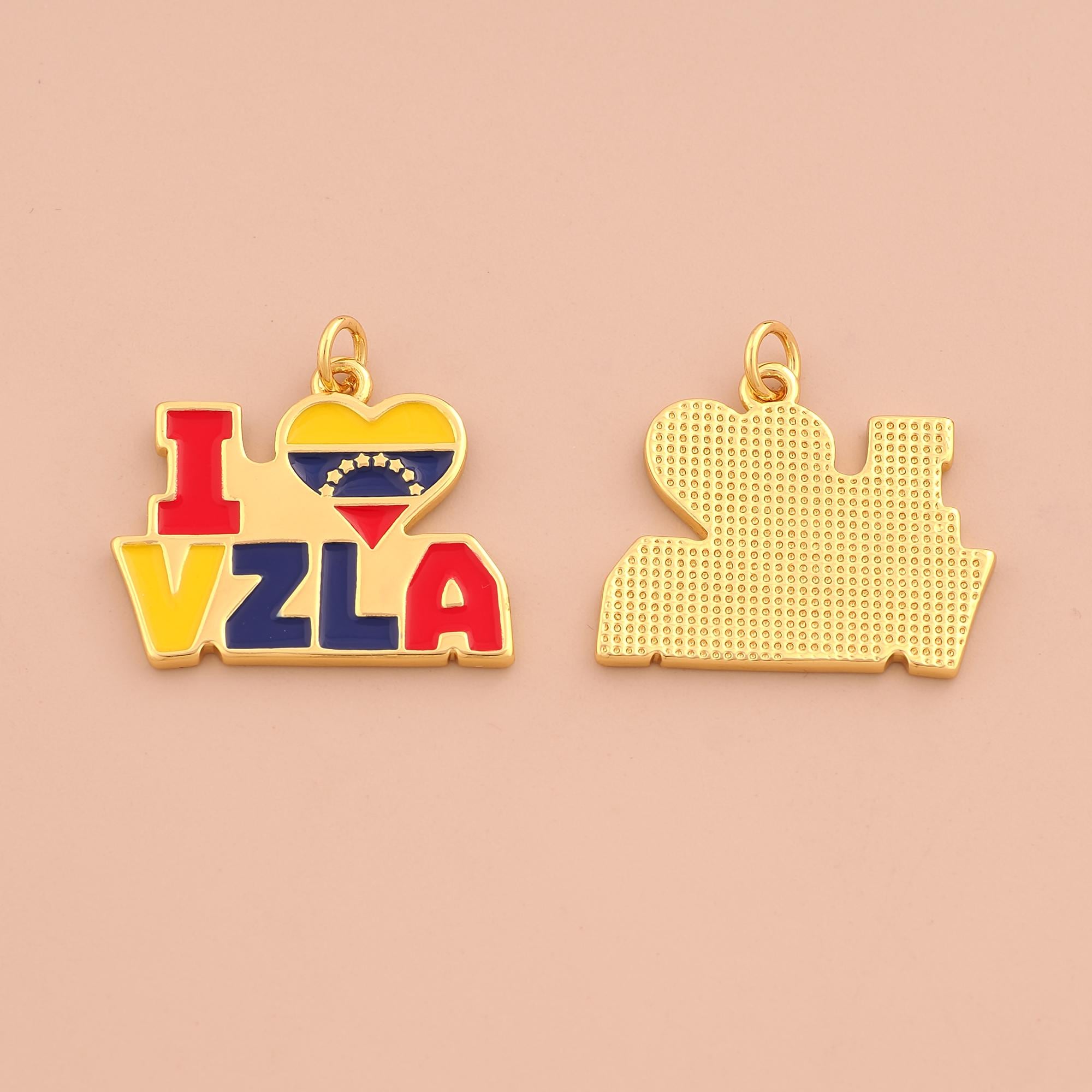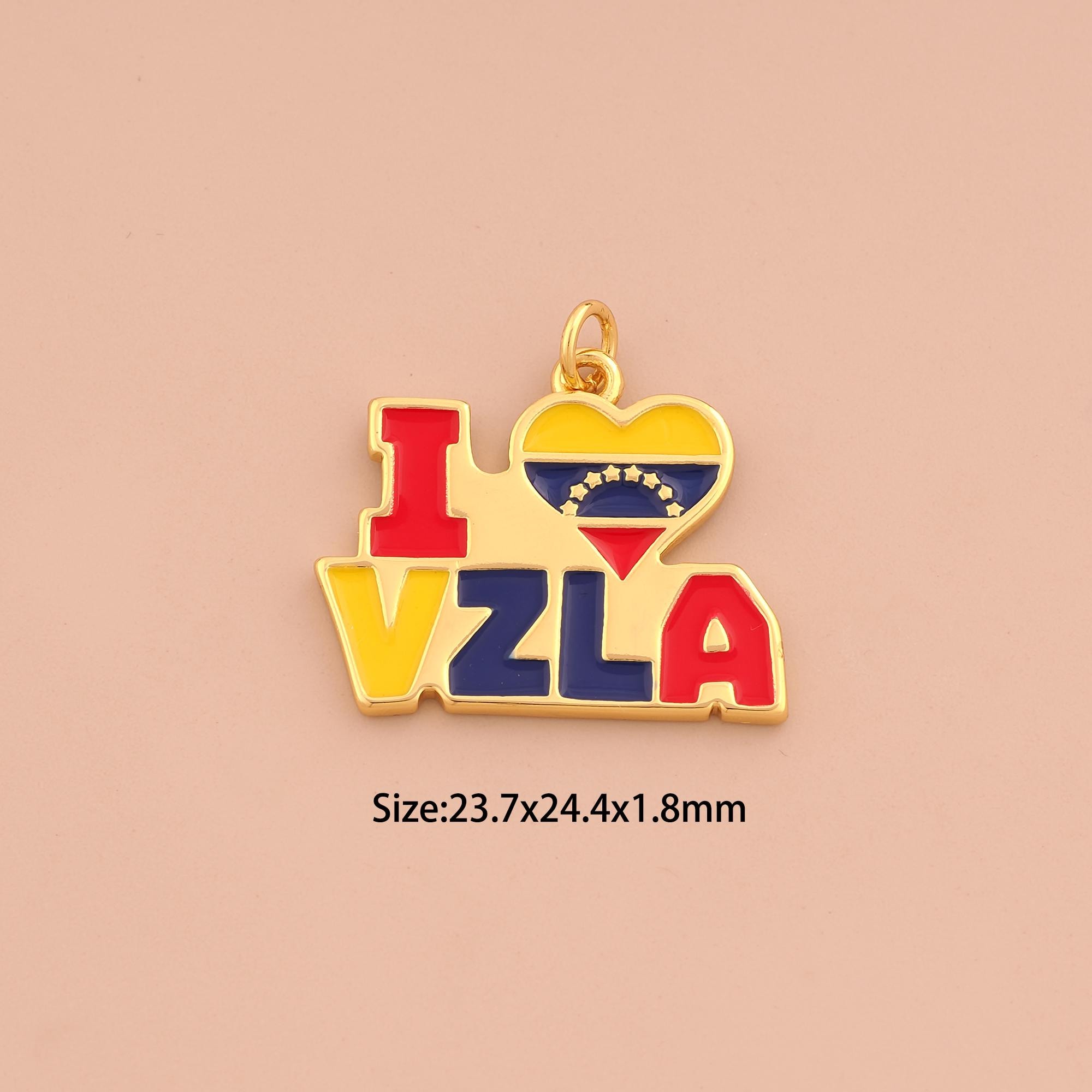 18K Gold I Love VZLA Charms,Enamel Heart Letter Charms Pendants,Venezuelan Charm for DIY Jewelry Making Supply