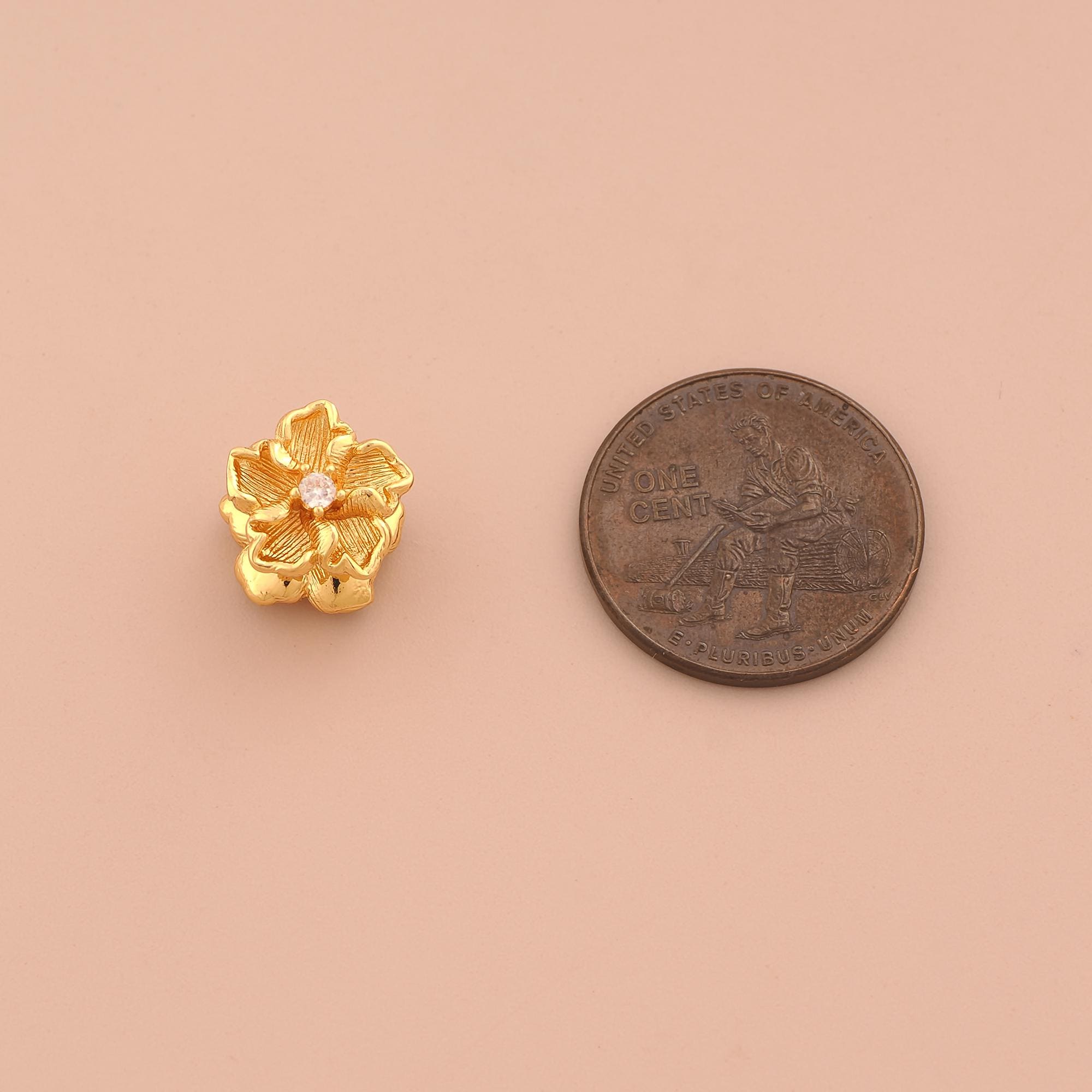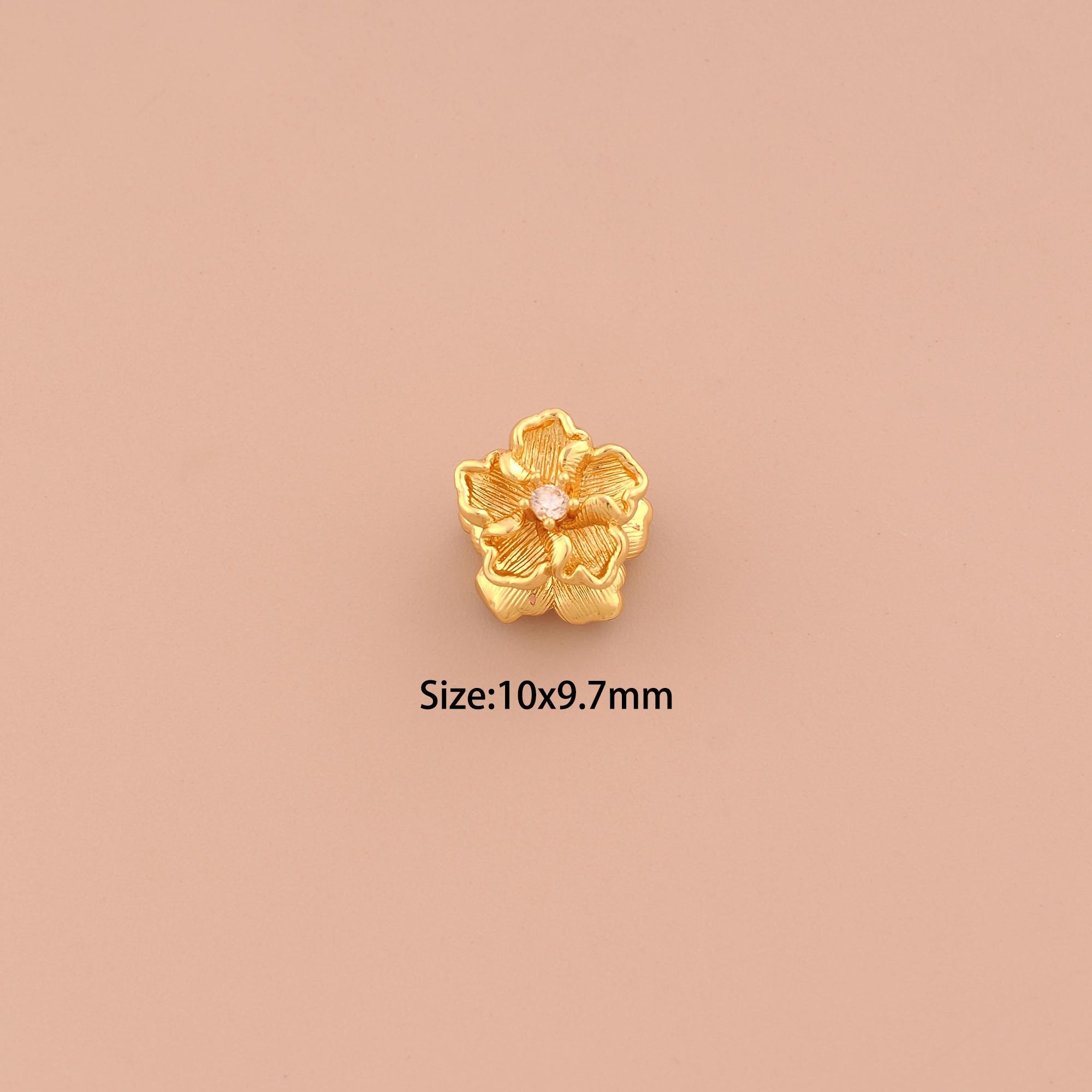 18K Gold Flower Charms,CZ Pave Flower Charms Pendants,Flower Charm for DIY Jewelry Making Supply