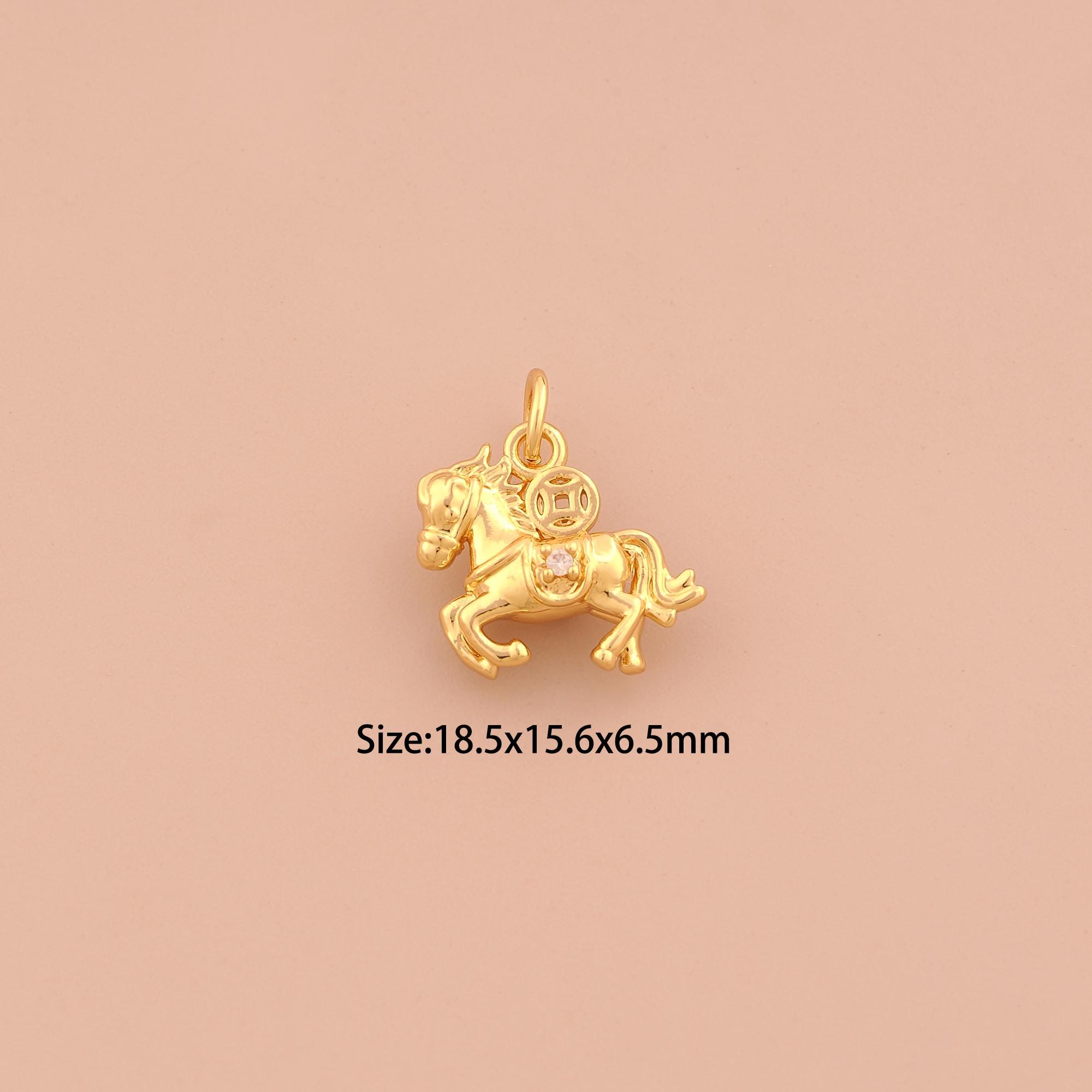 18K Gold Horse Charms,CZ Pave Animal Charms Pendants,Horse Charm for DIY Jewelry Making Supply