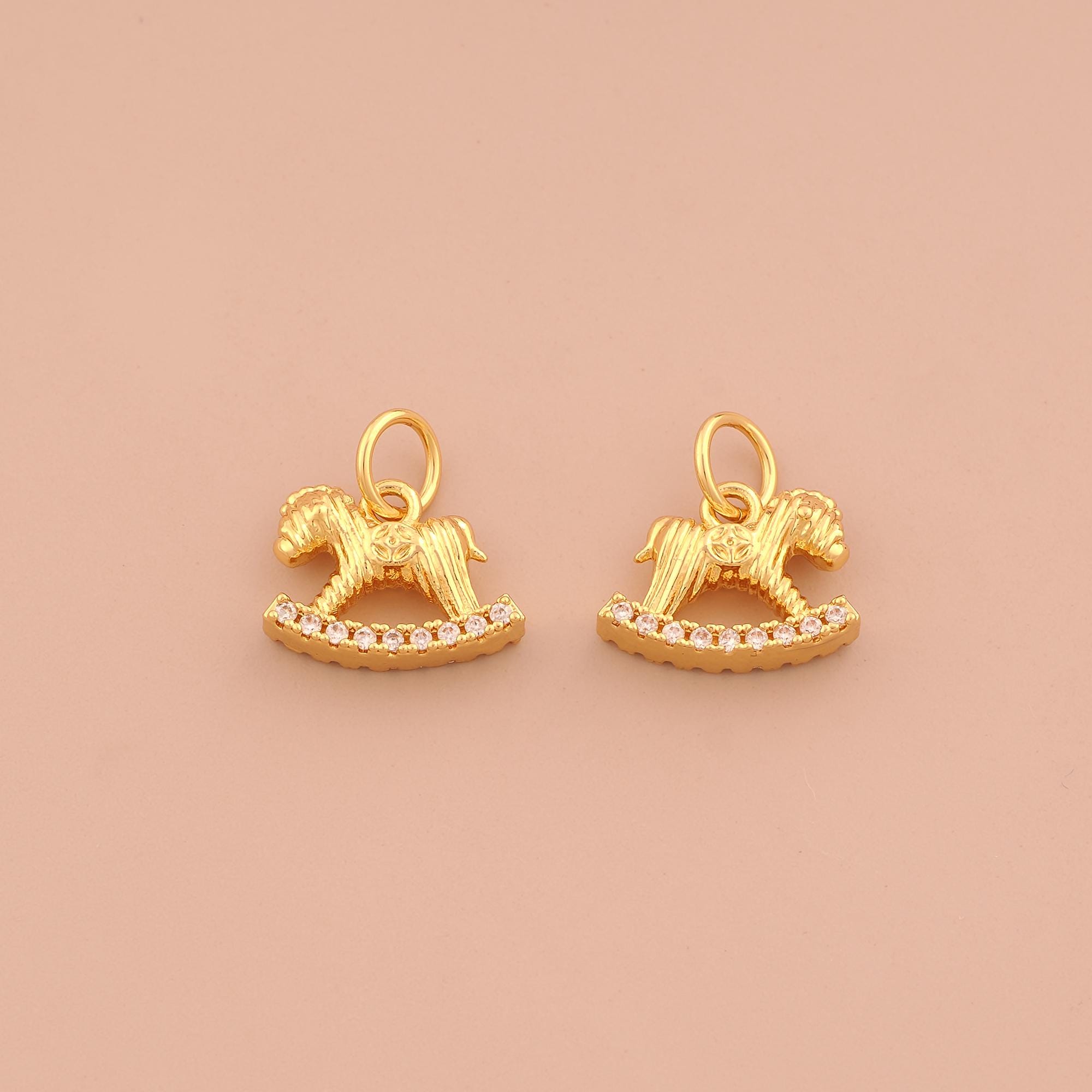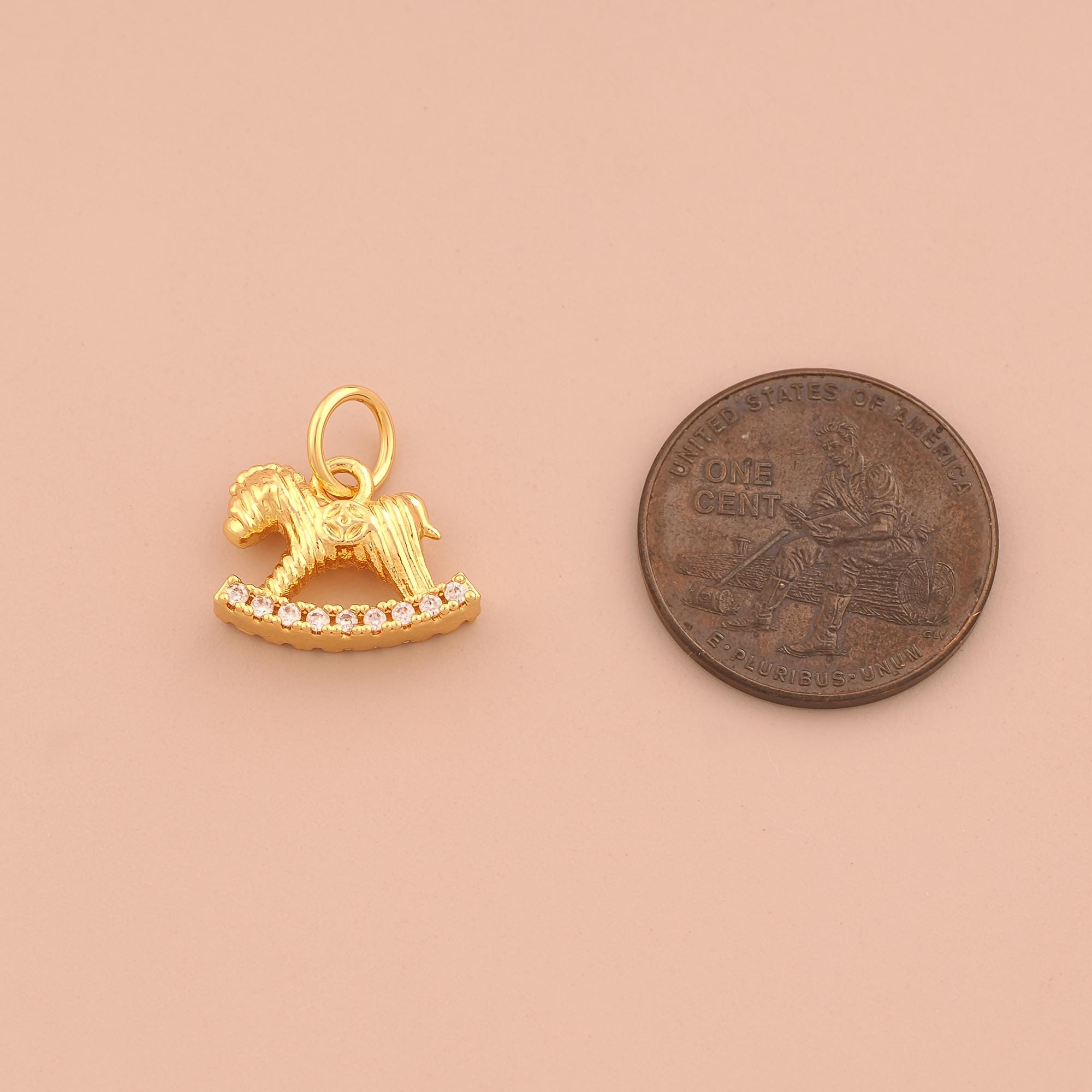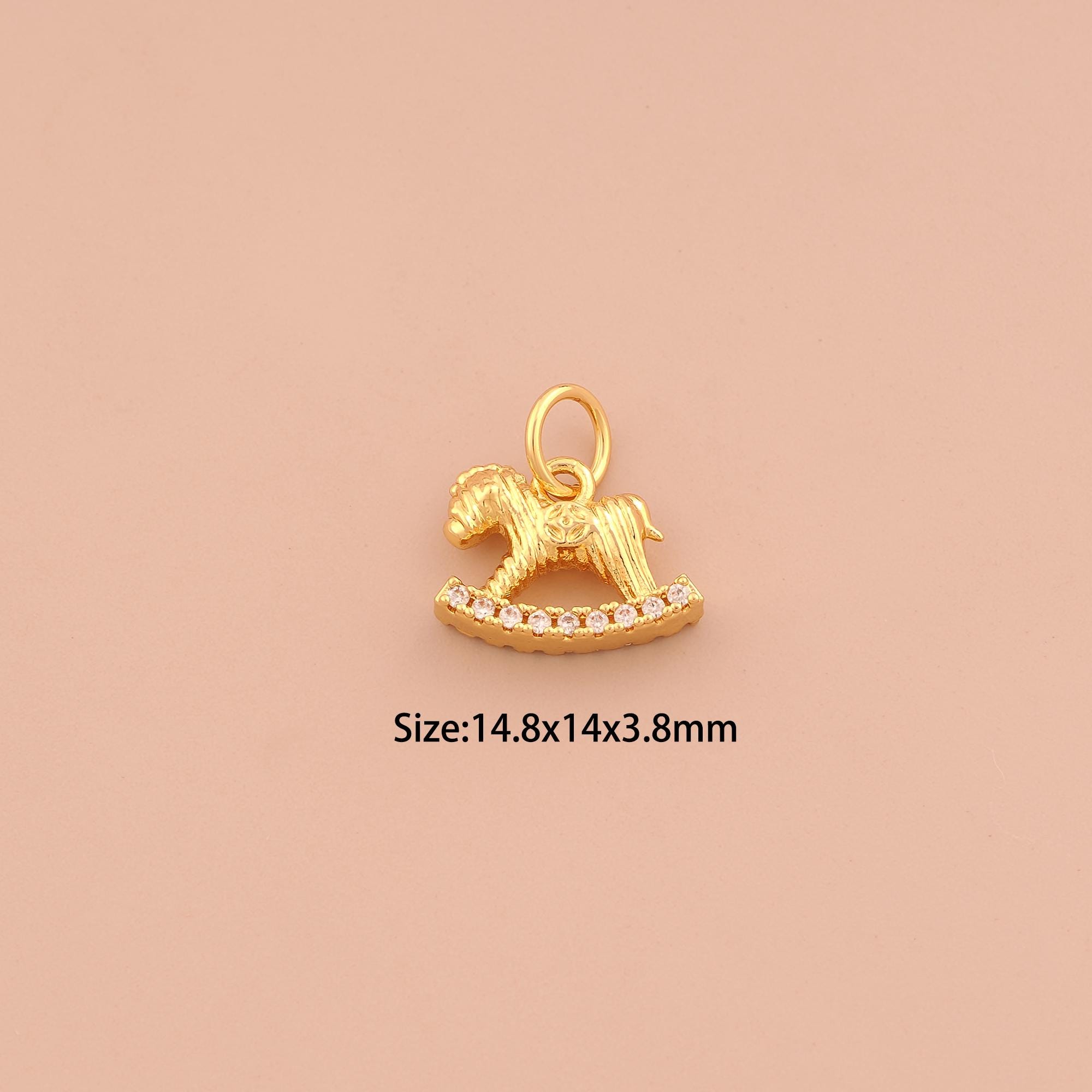 18K Gold Rocking Horse Charms,CZ Pave Horse Charms Pendants,Rocking Horse Charm for DIY Jewelry Making Supply