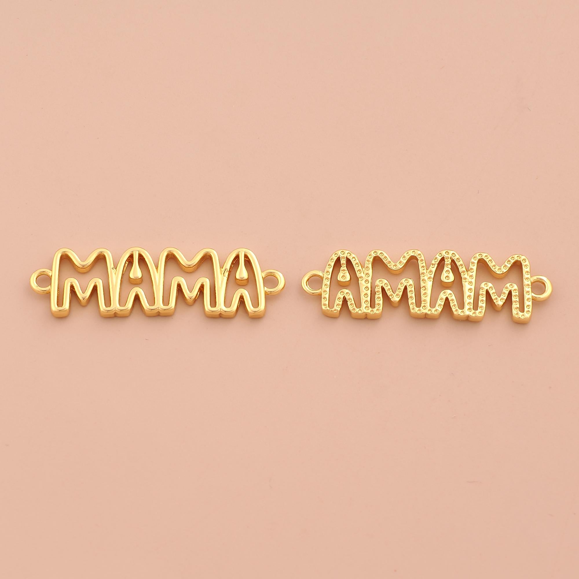 18K Gold MAMA Connector,Letter Connector Charms,MAMA Connector for DIY Jewelry Making Supply