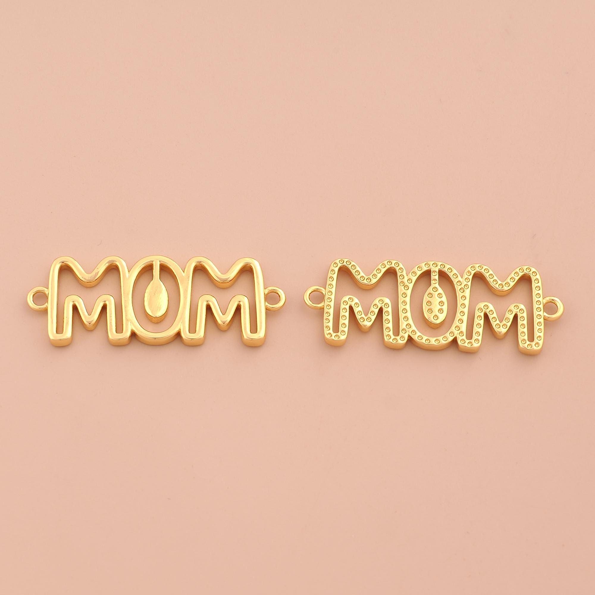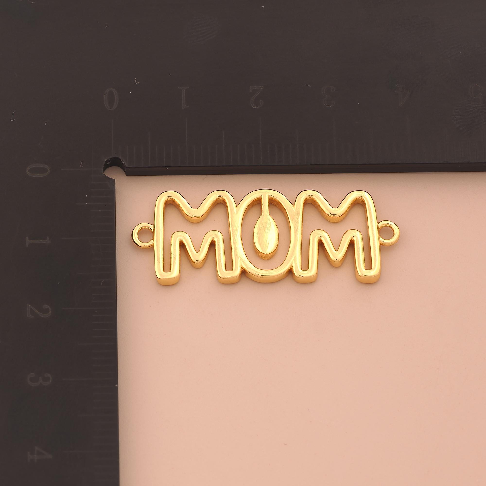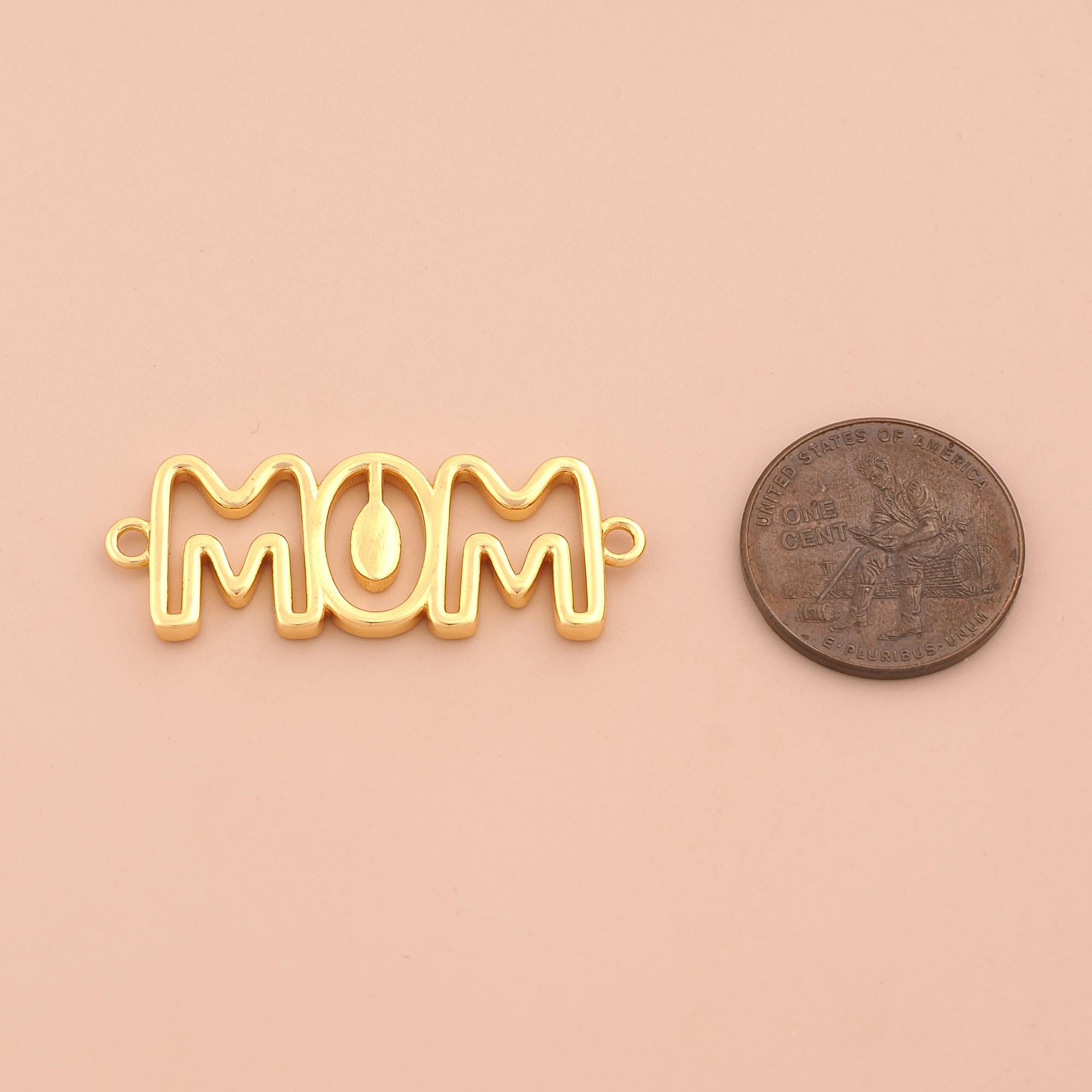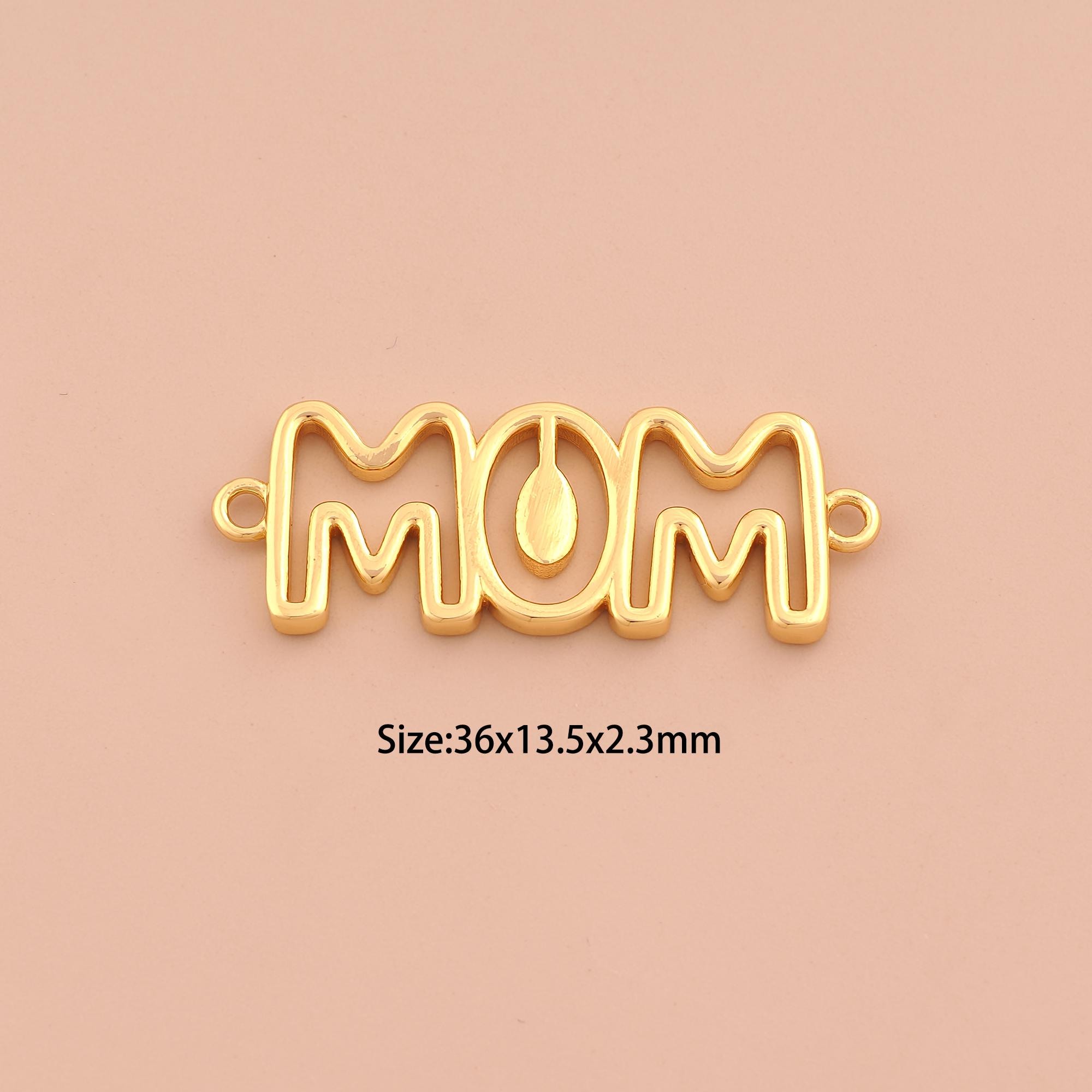 18K Gold MOM Connector,Letter Connector Charms,MOM Connector for DIY Jewelry Making Supply