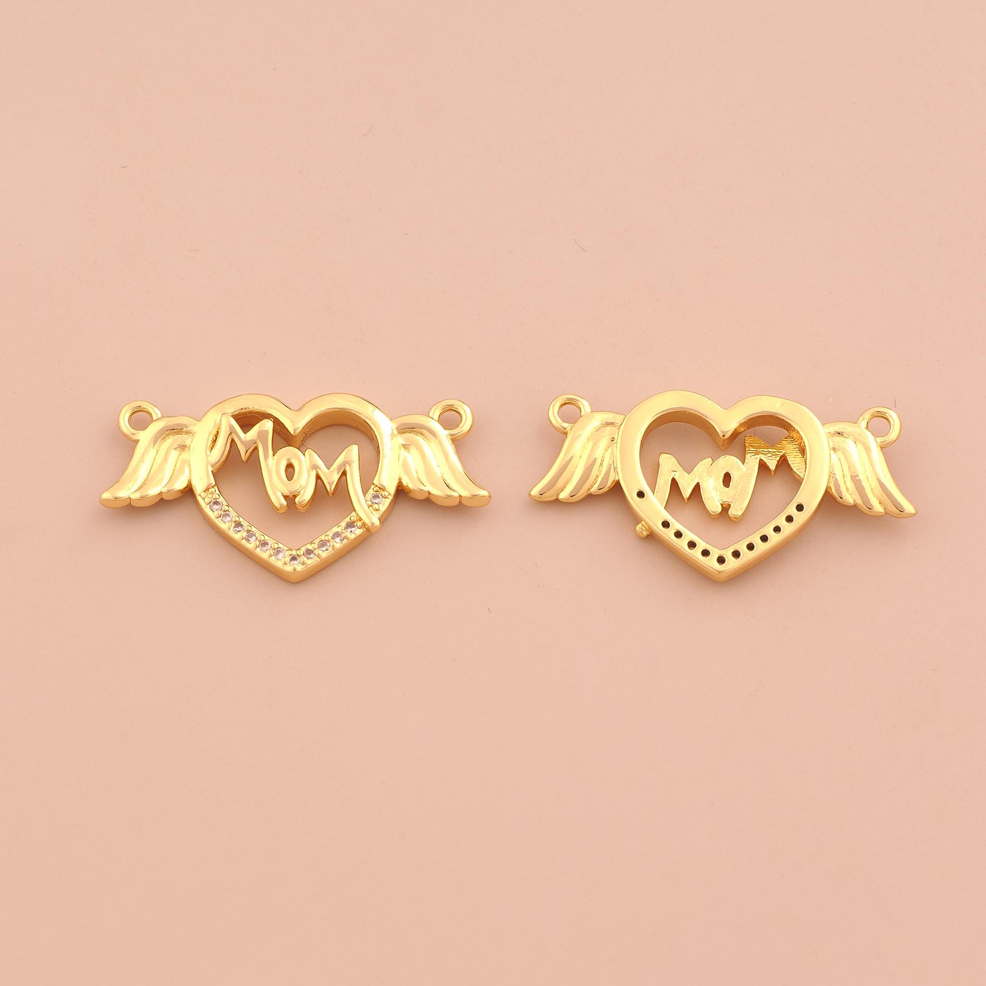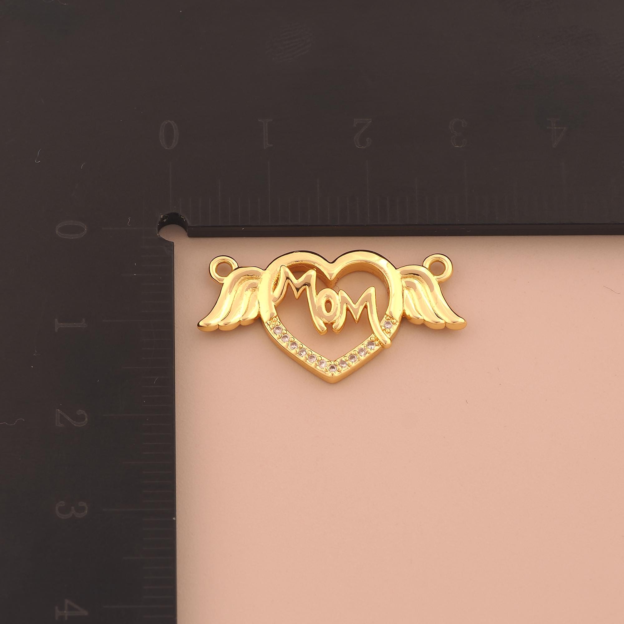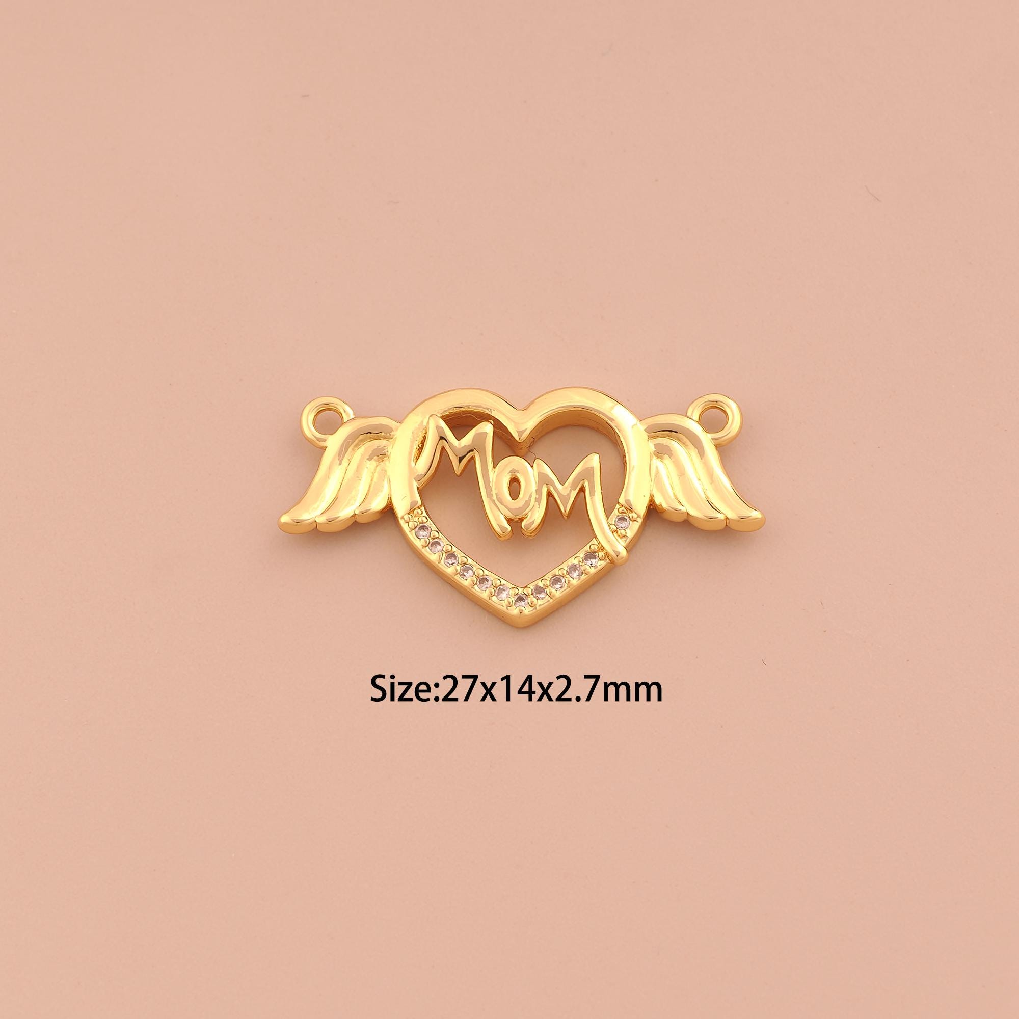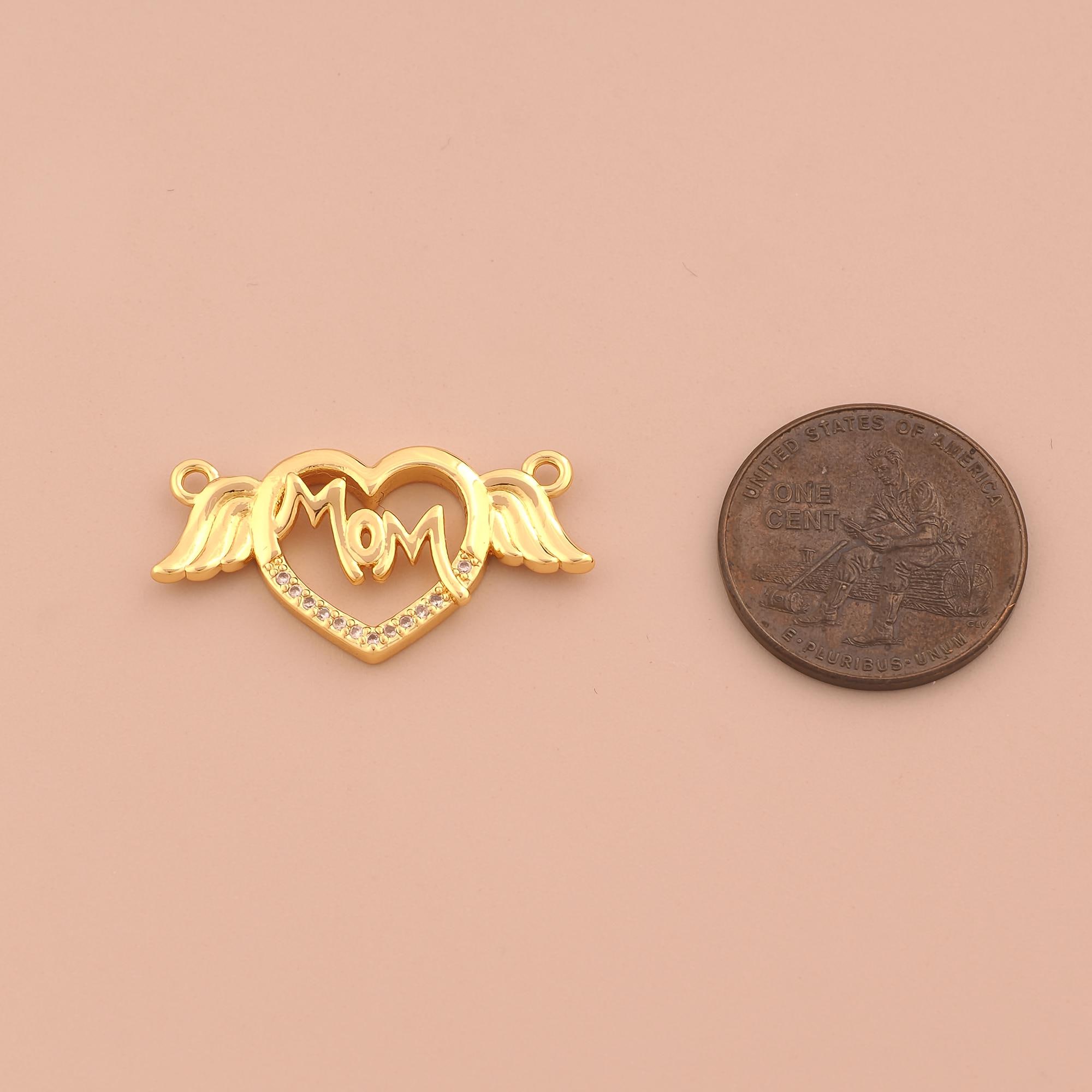 18K Gold MOM Charms,CZ Pave Heart Letter Charms Pendants,Angel Wings Charm for DIY Jewelry Making Supply