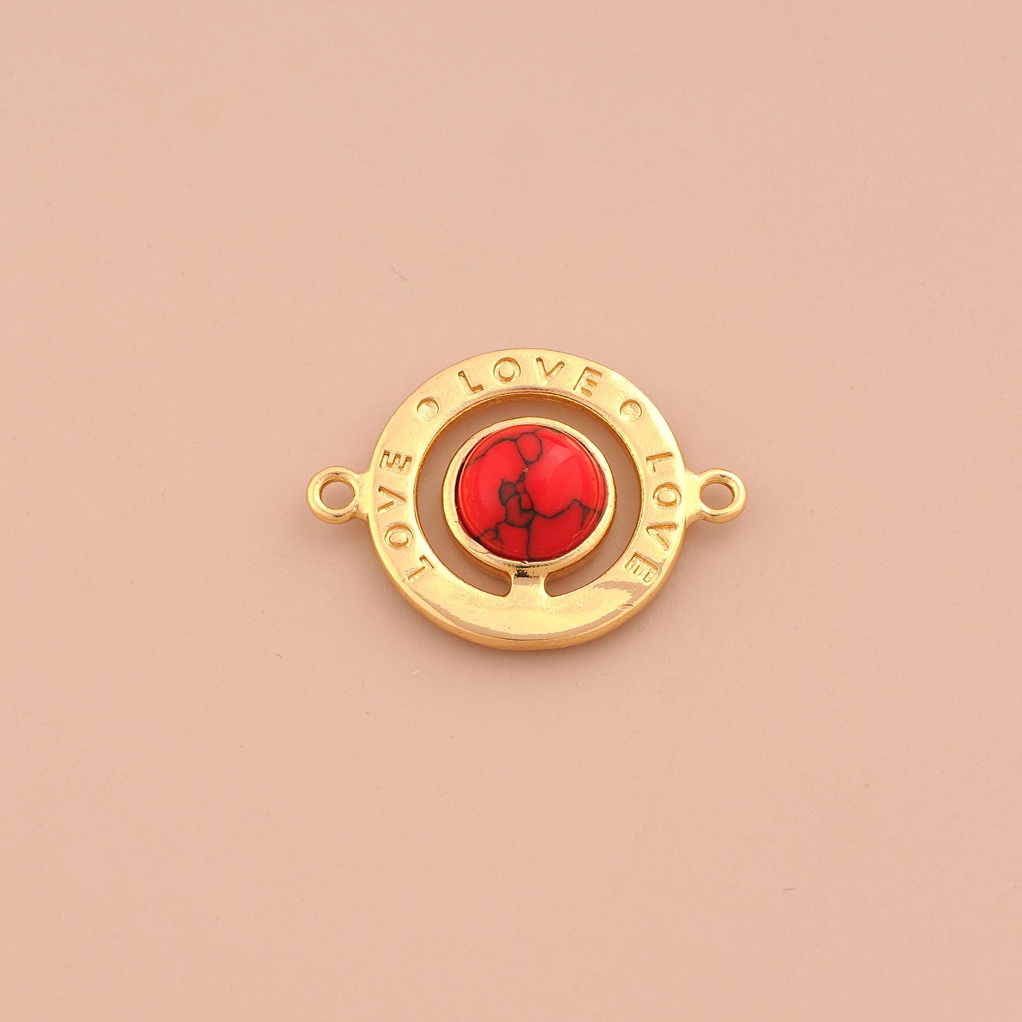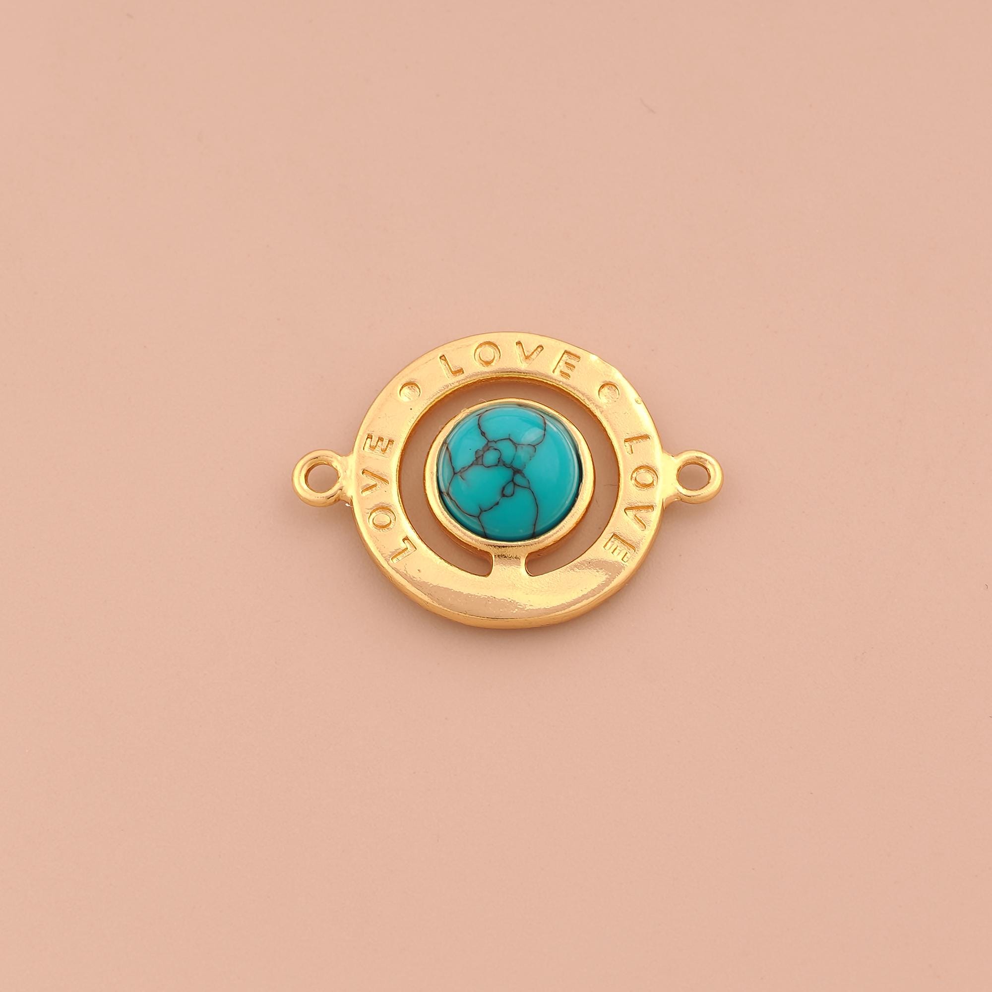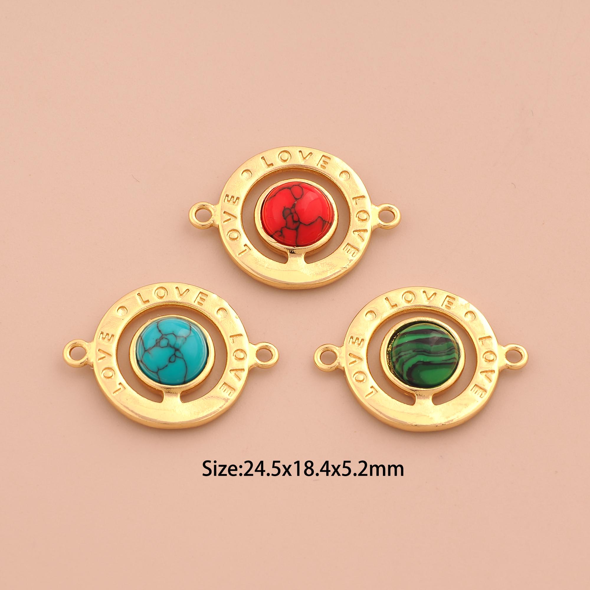 18K Gold LOVE Connector,Letter Connector Charms,Round Connector for DIY Jewelry Making Supply