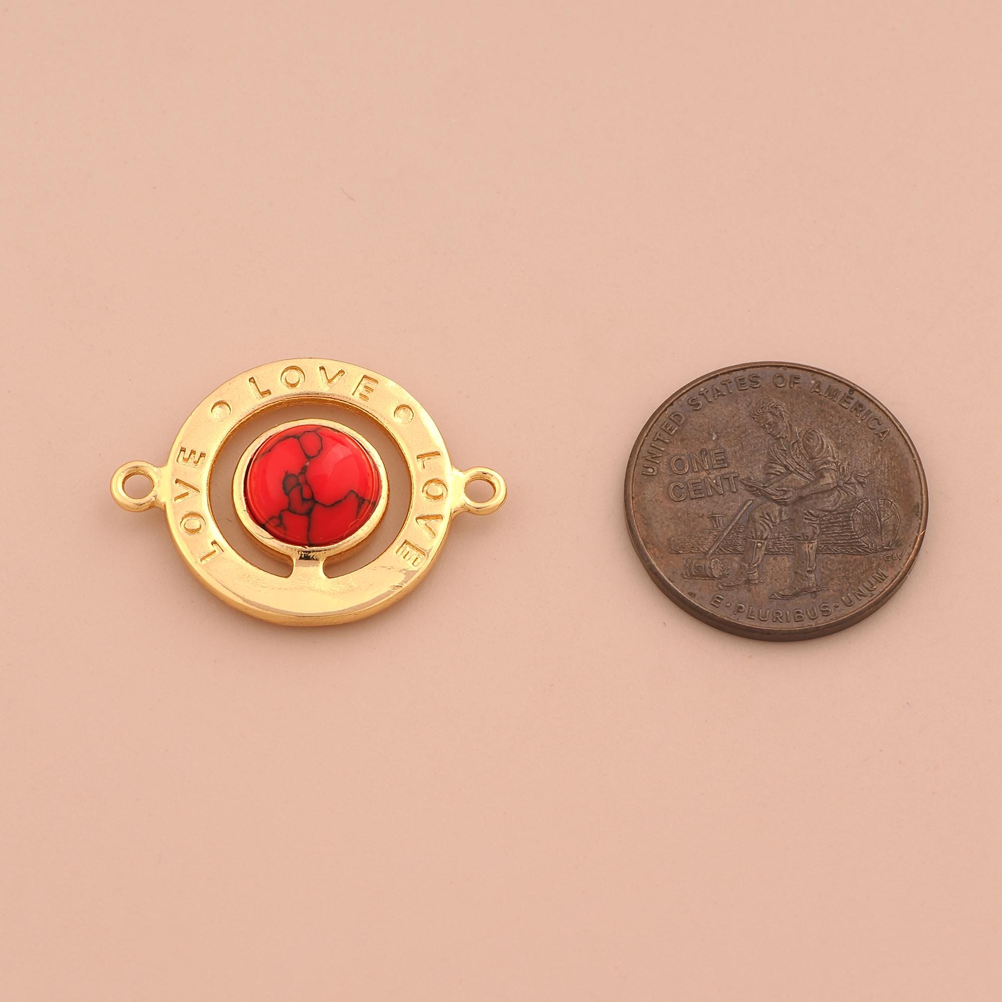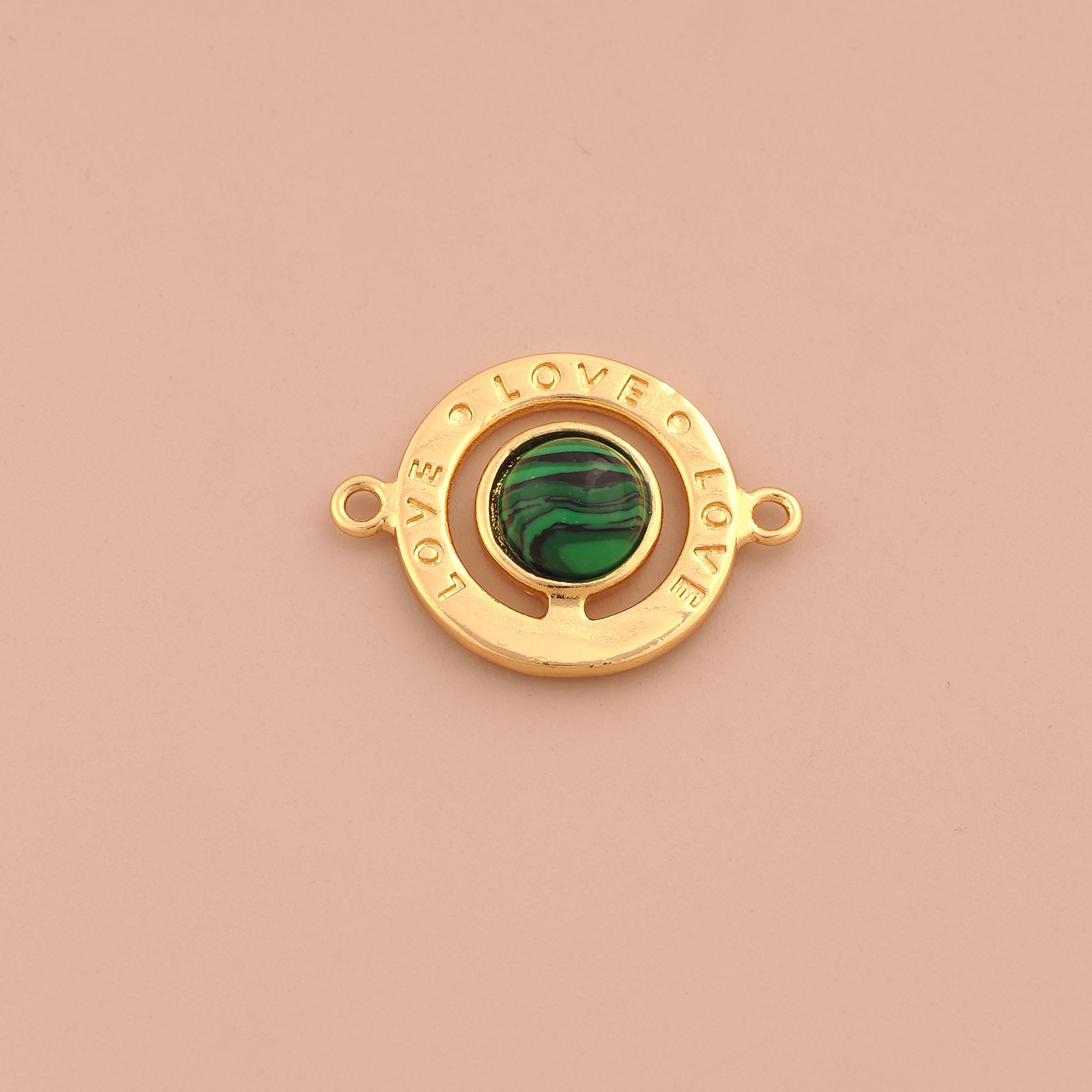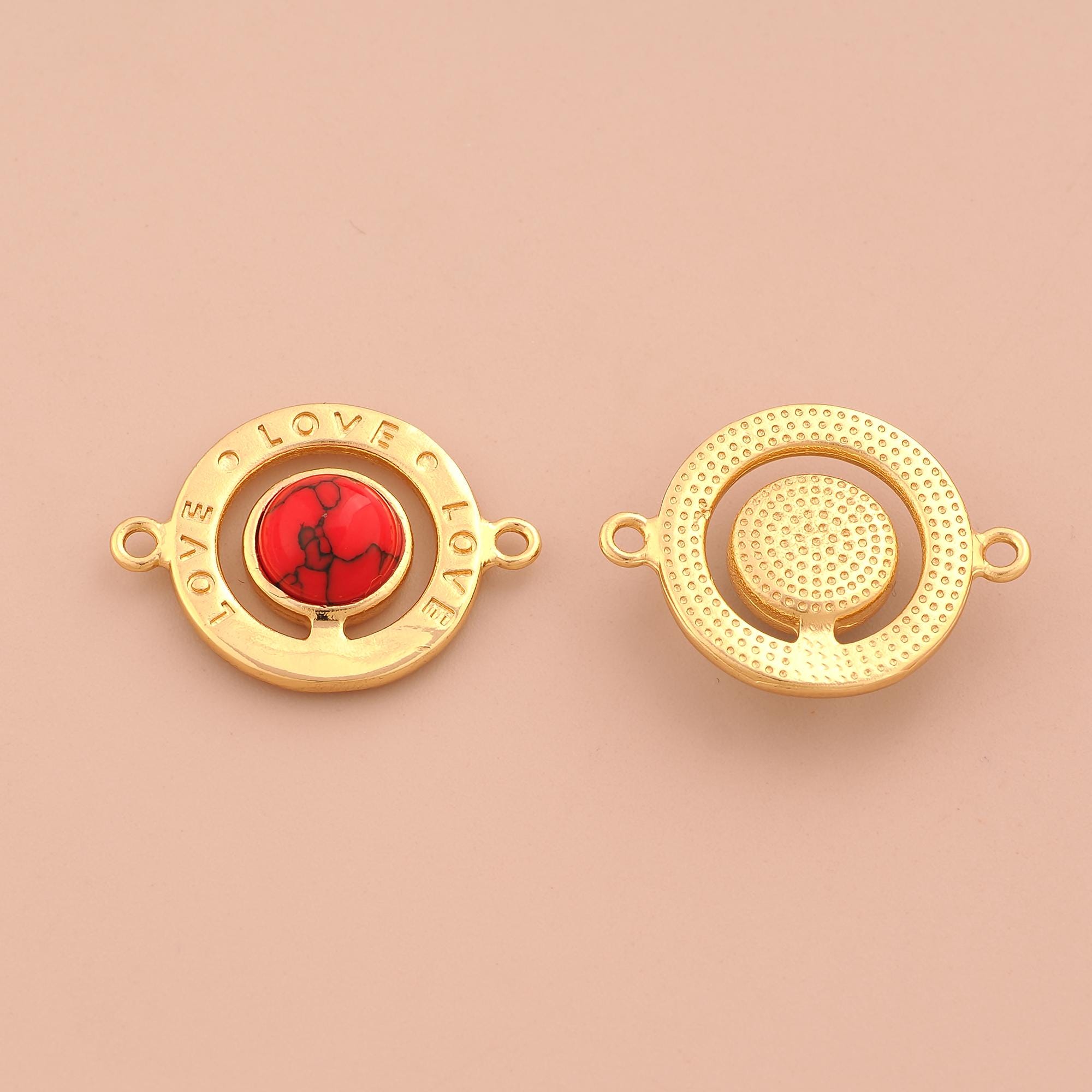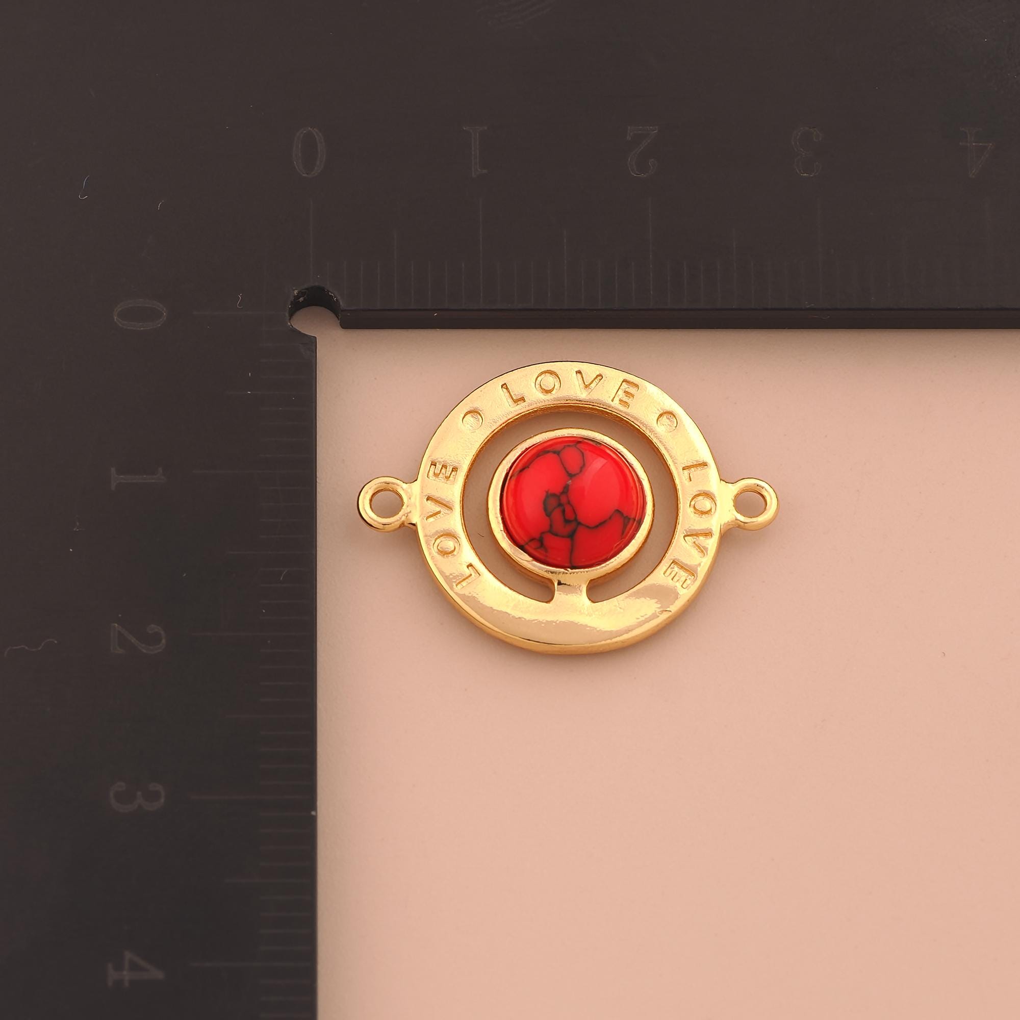 18K Gold LOVE Connector,Letter Connector Charms,Round Connector for DIY Jewelry Making Supply