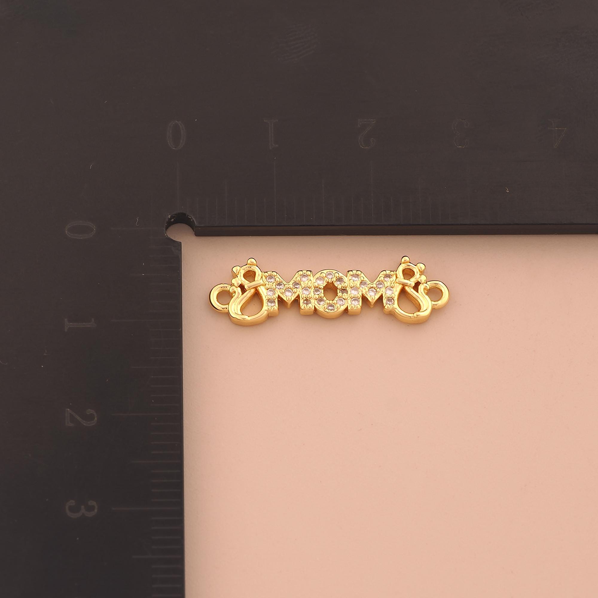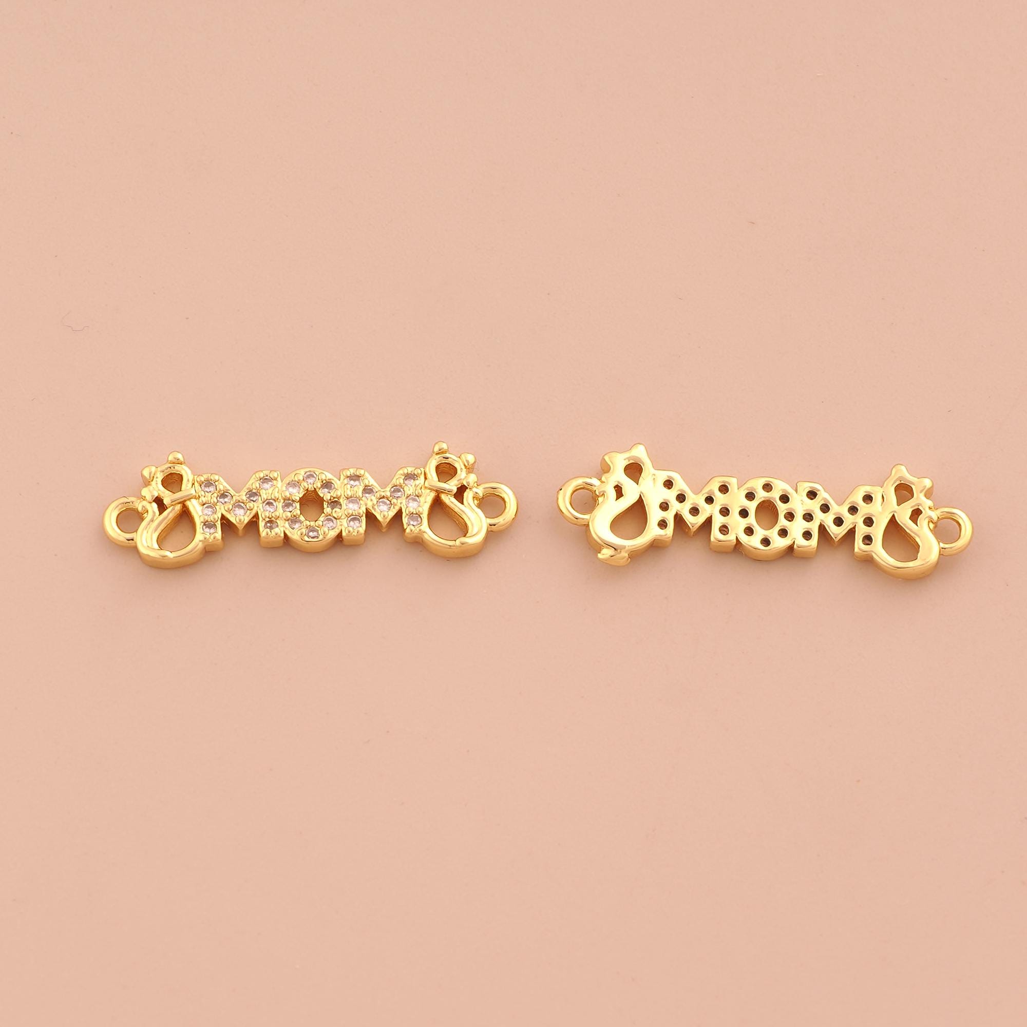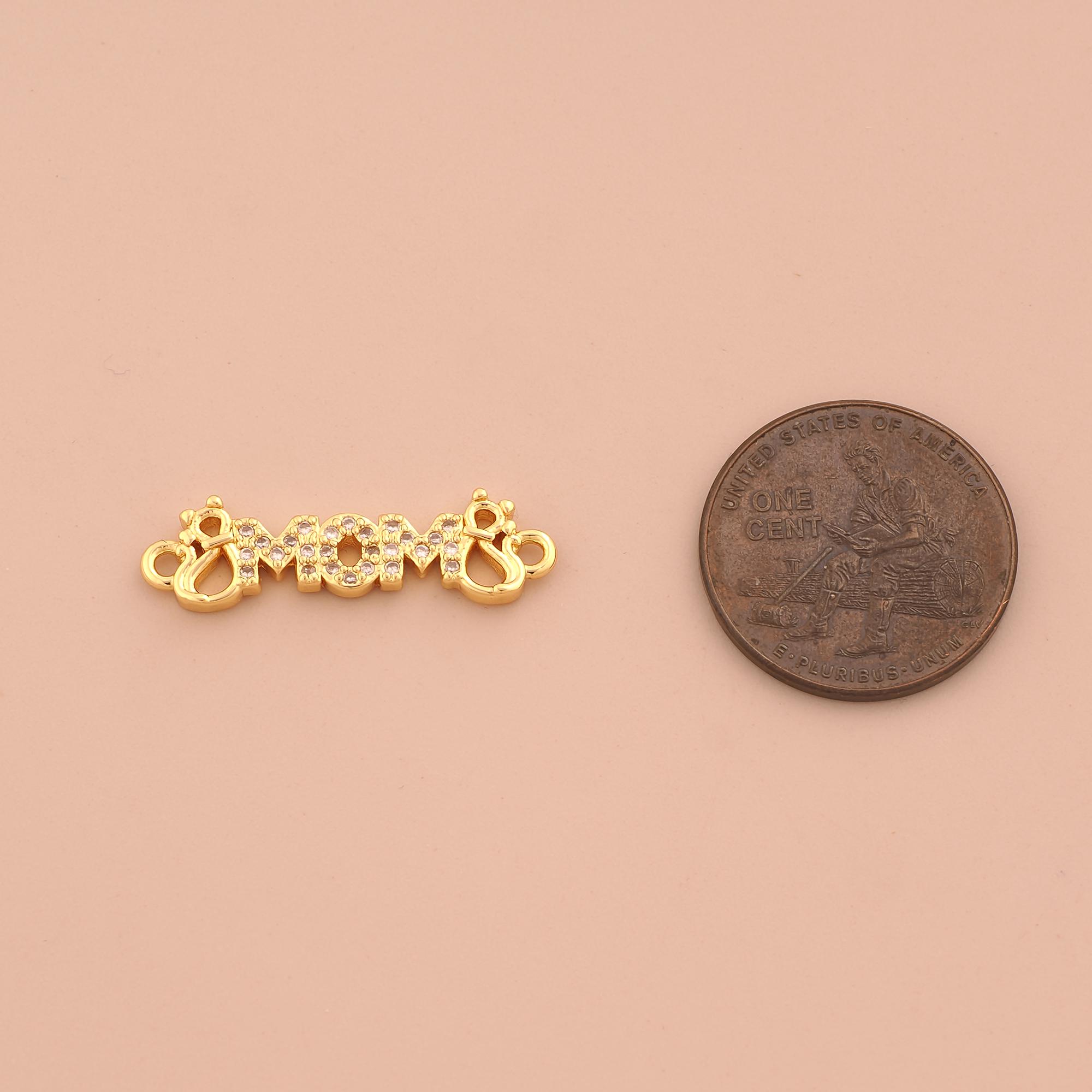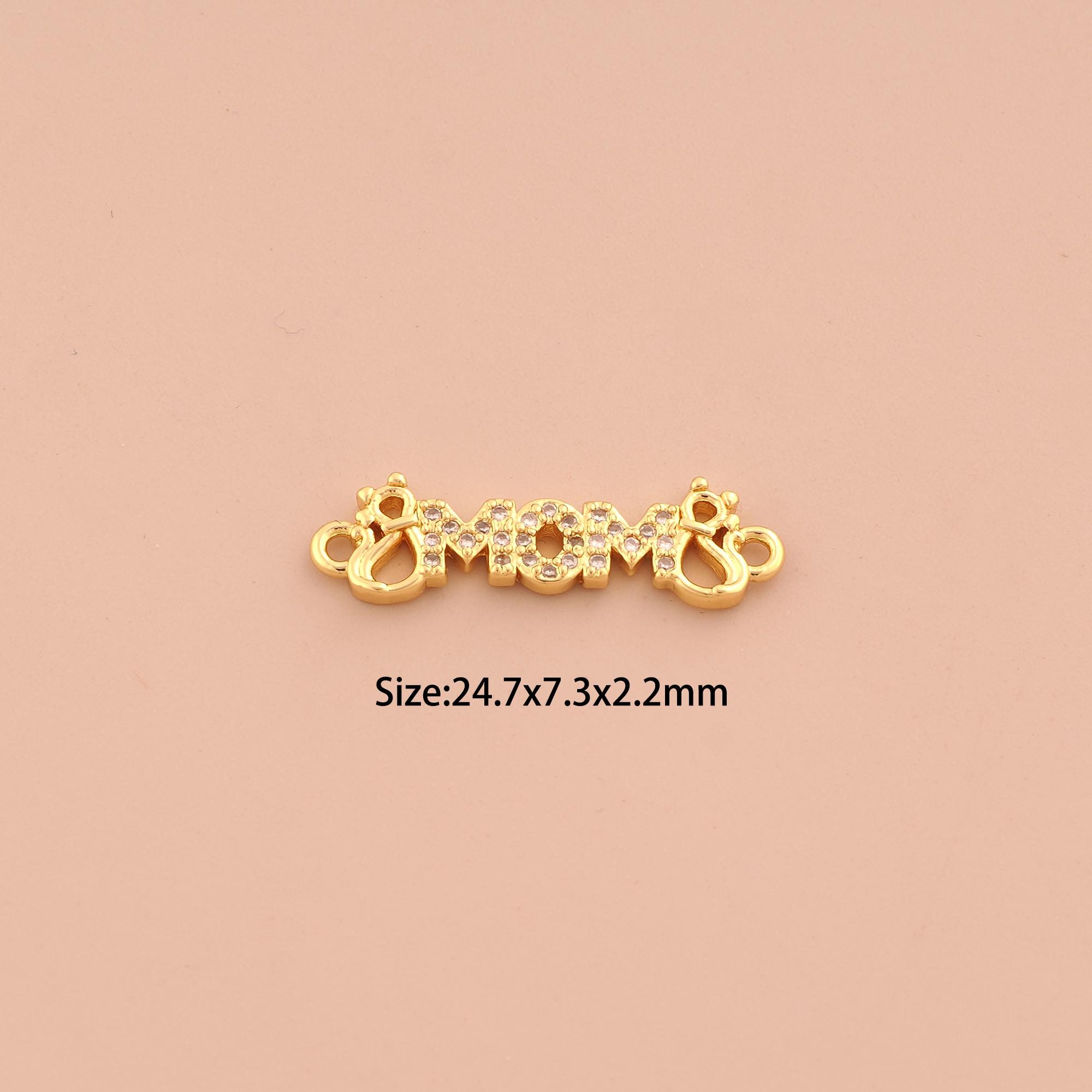 18K Gold MOM Connector,CZ Pave Letter Connector Charms,Mom Connector for DIY Jewelry Making Supply