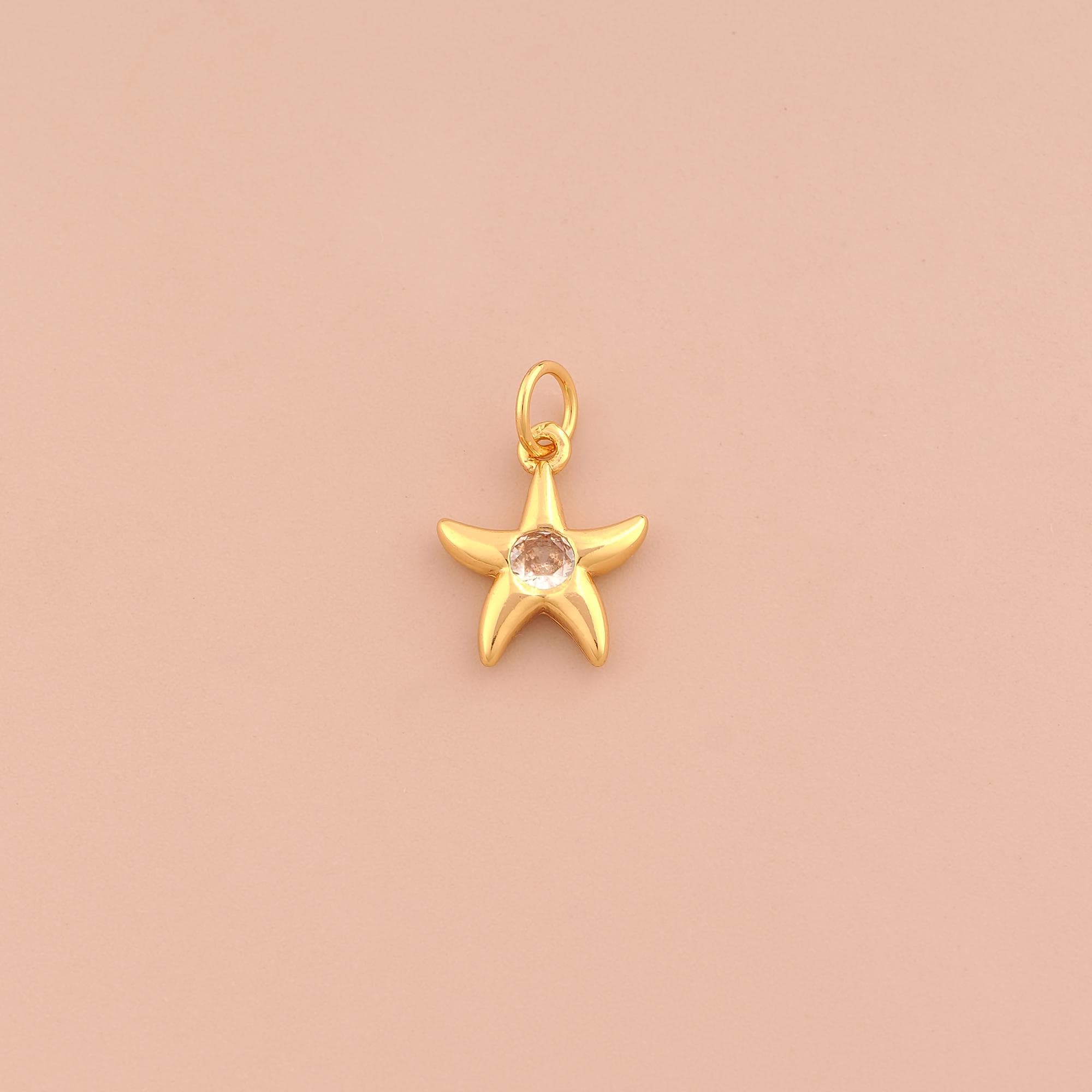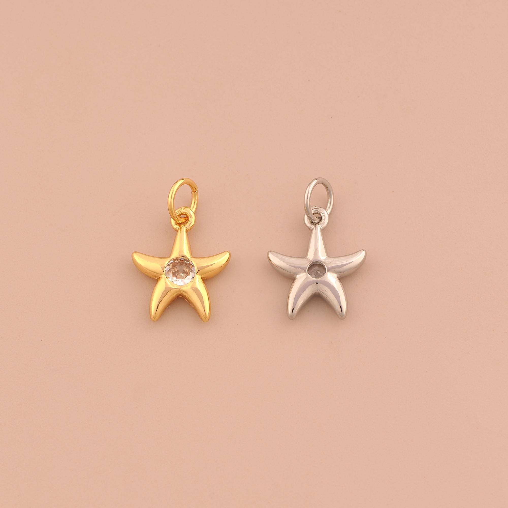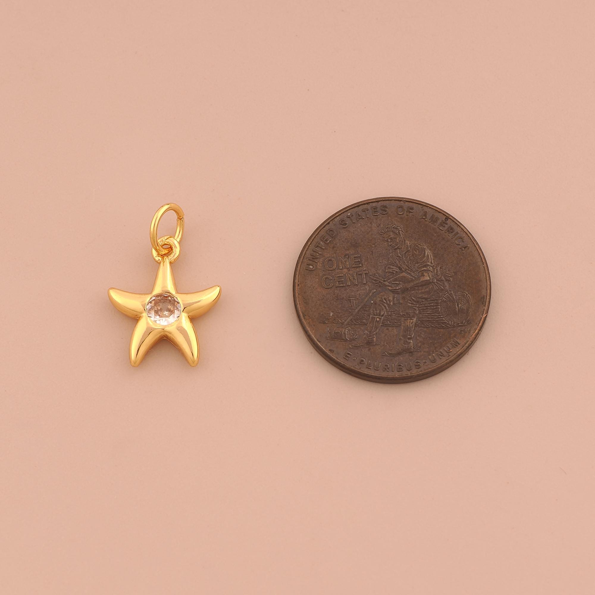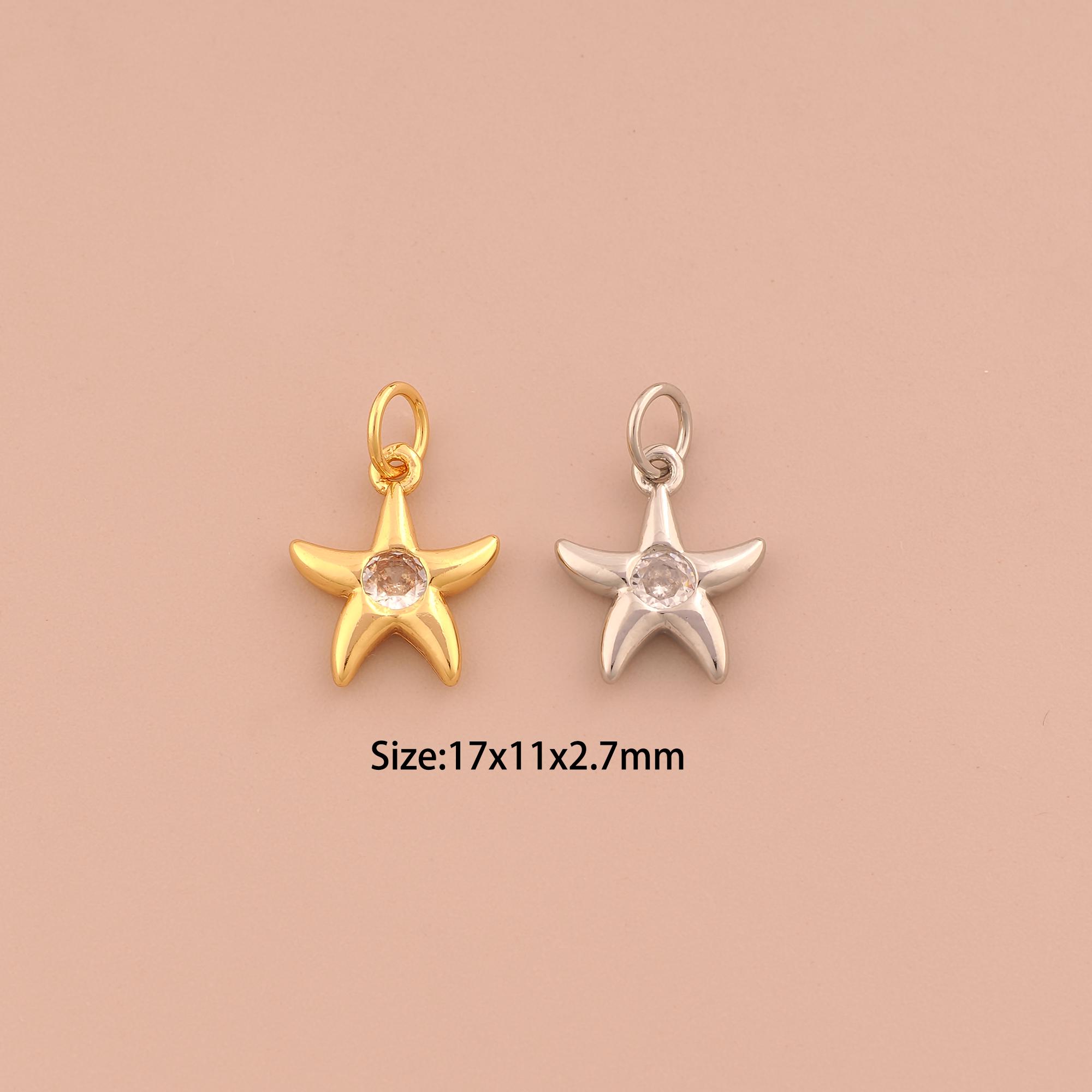 18K Gold Starfish Charms,CZ Pave Starfish Charms Pendants,Starfish Charm for DIY Jewelry Making Supply