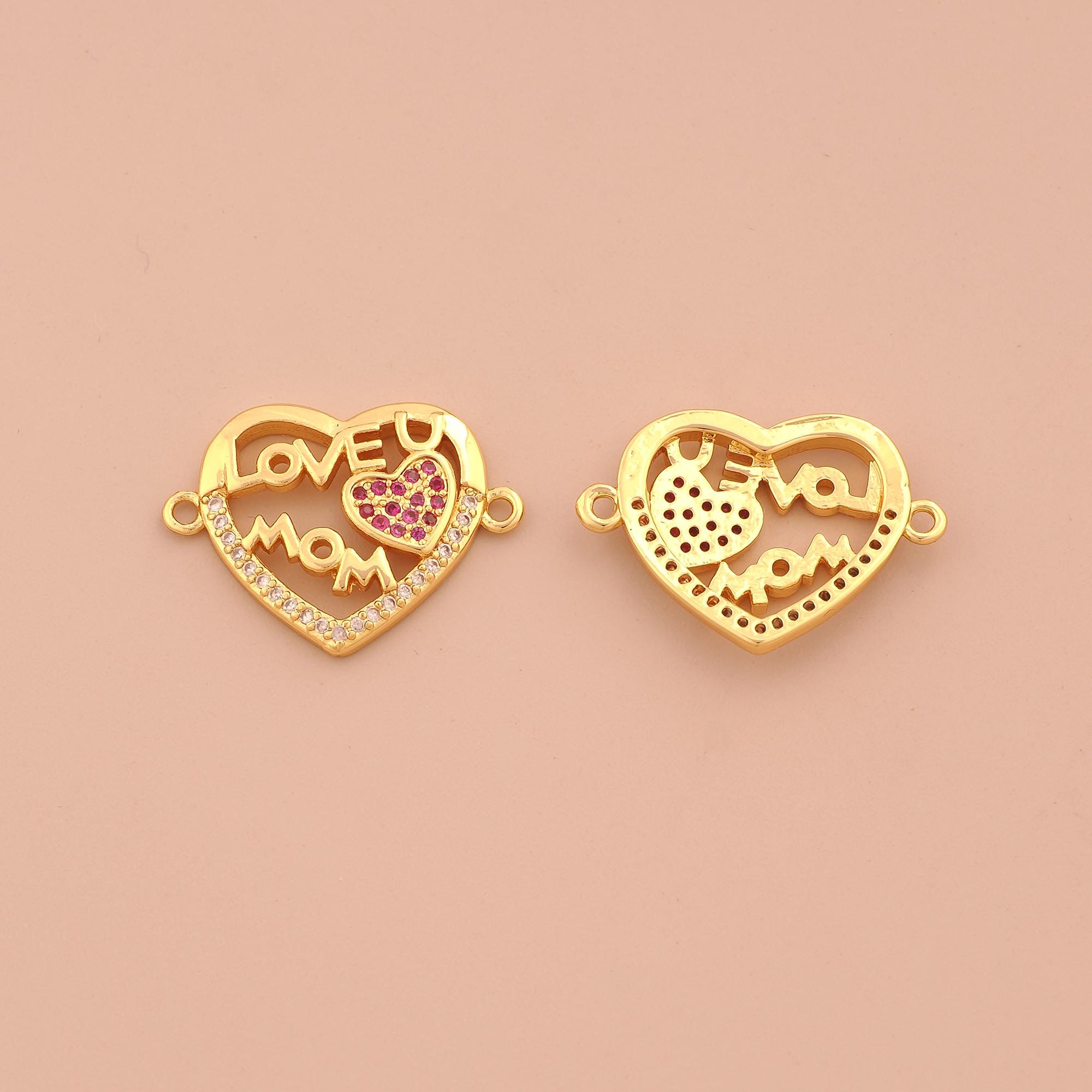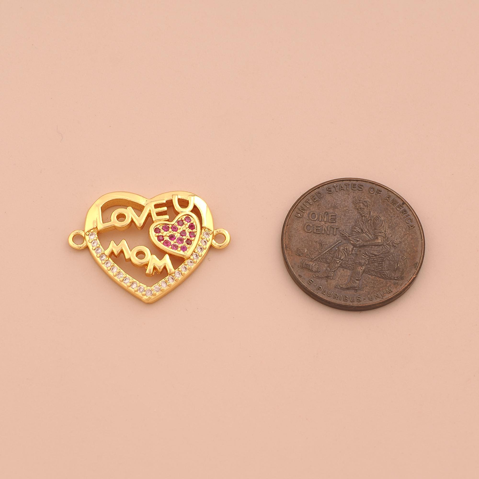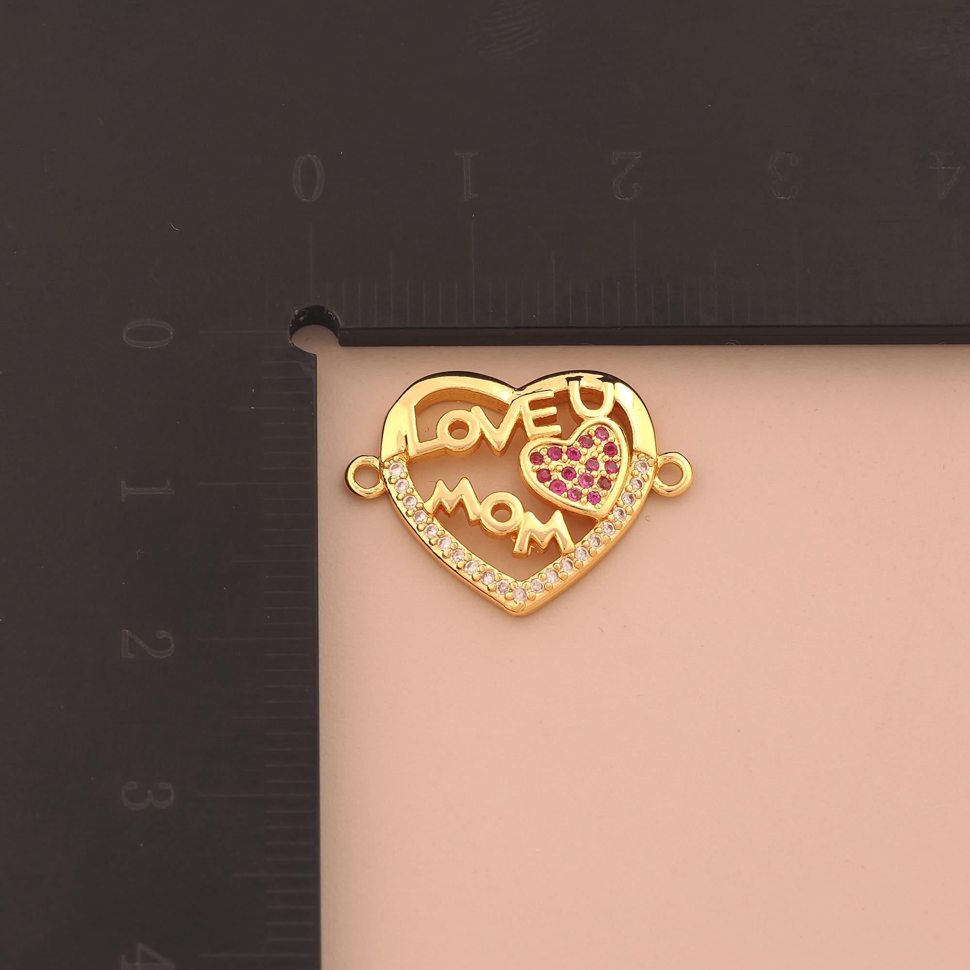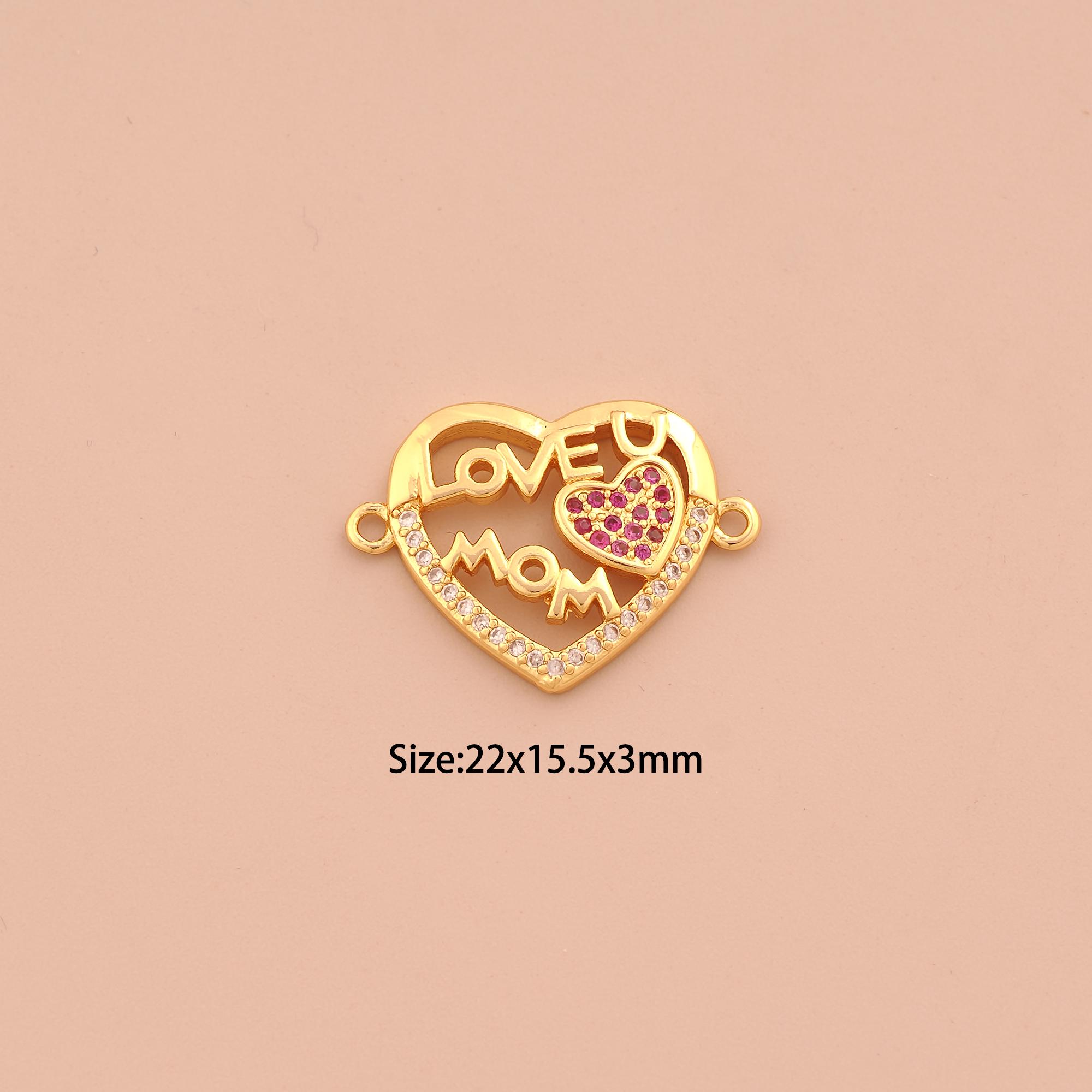 18K Gold MOM Connector,CZ Pave Heart Connector Charms,Letter Connector for DIY Jewelry Making Supply