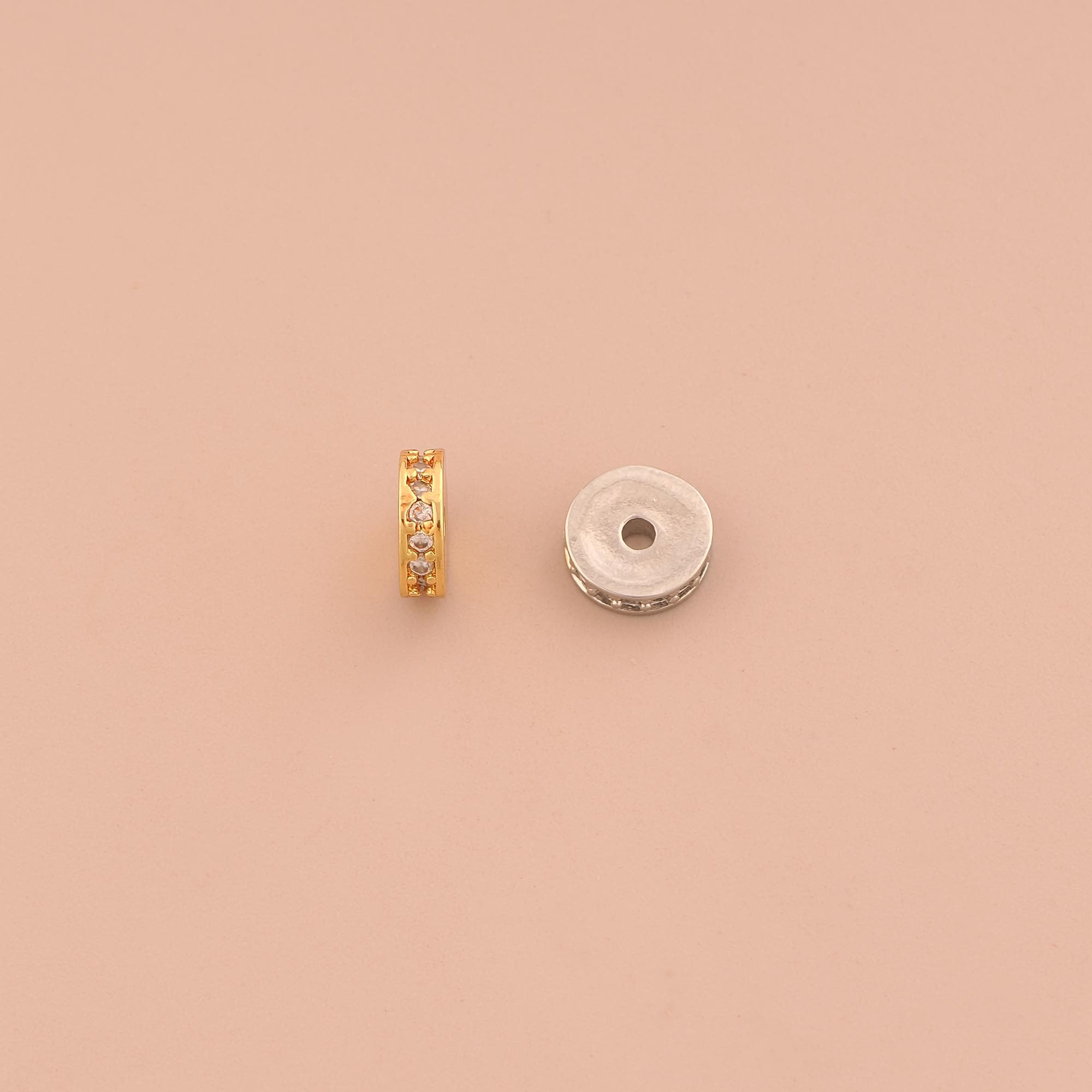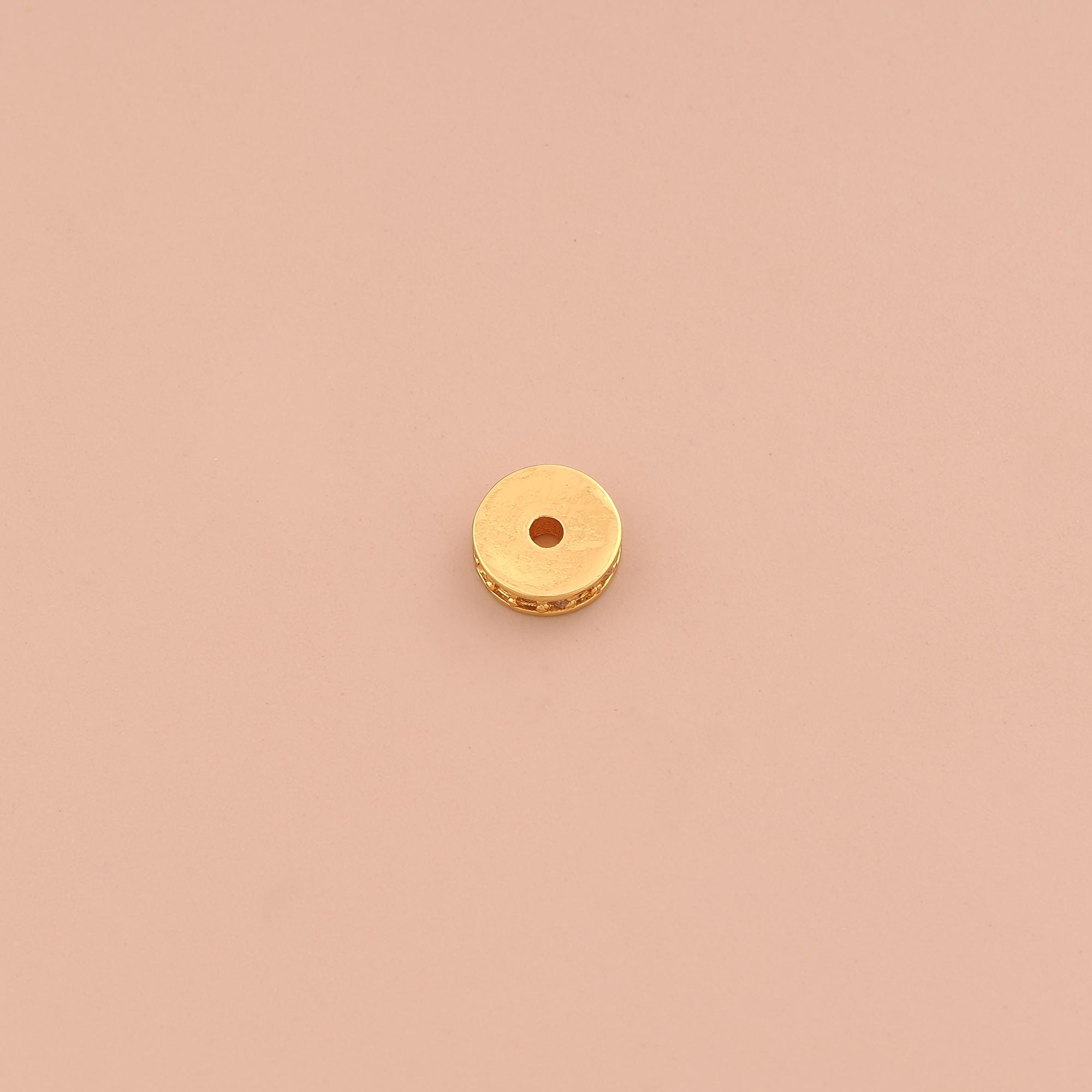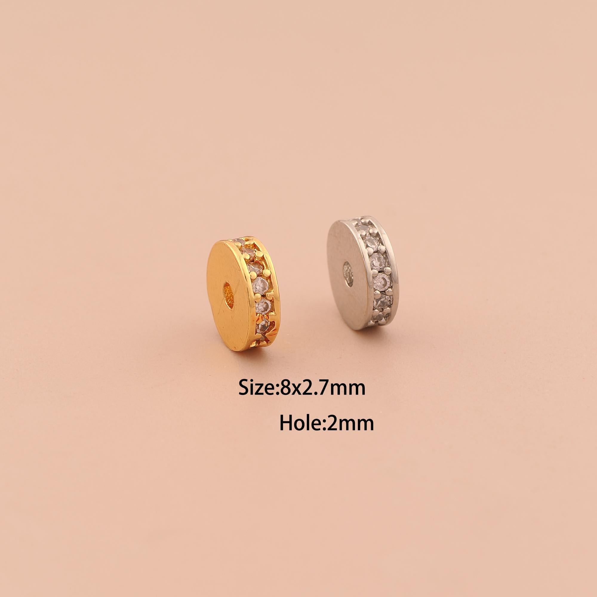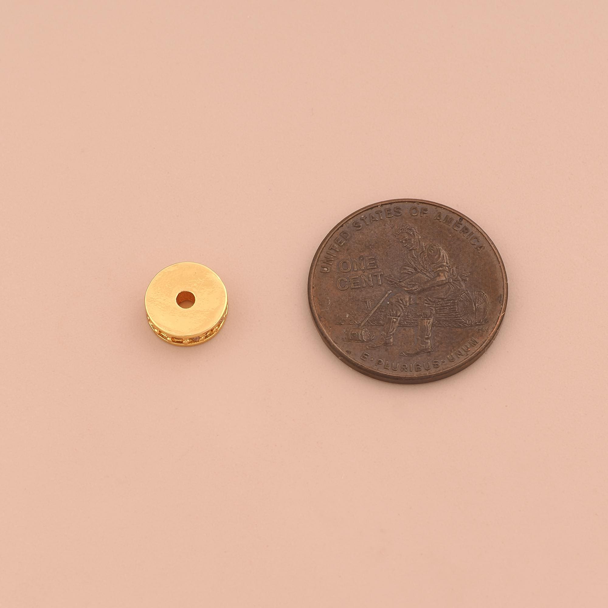 18K Gold Round Spacer Bead,CZ Pave Disc Bead,Flat Bead for DIY Jewelry Making Supply