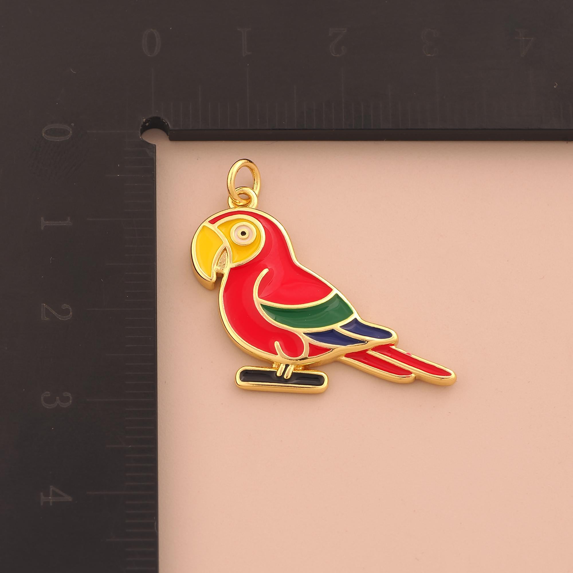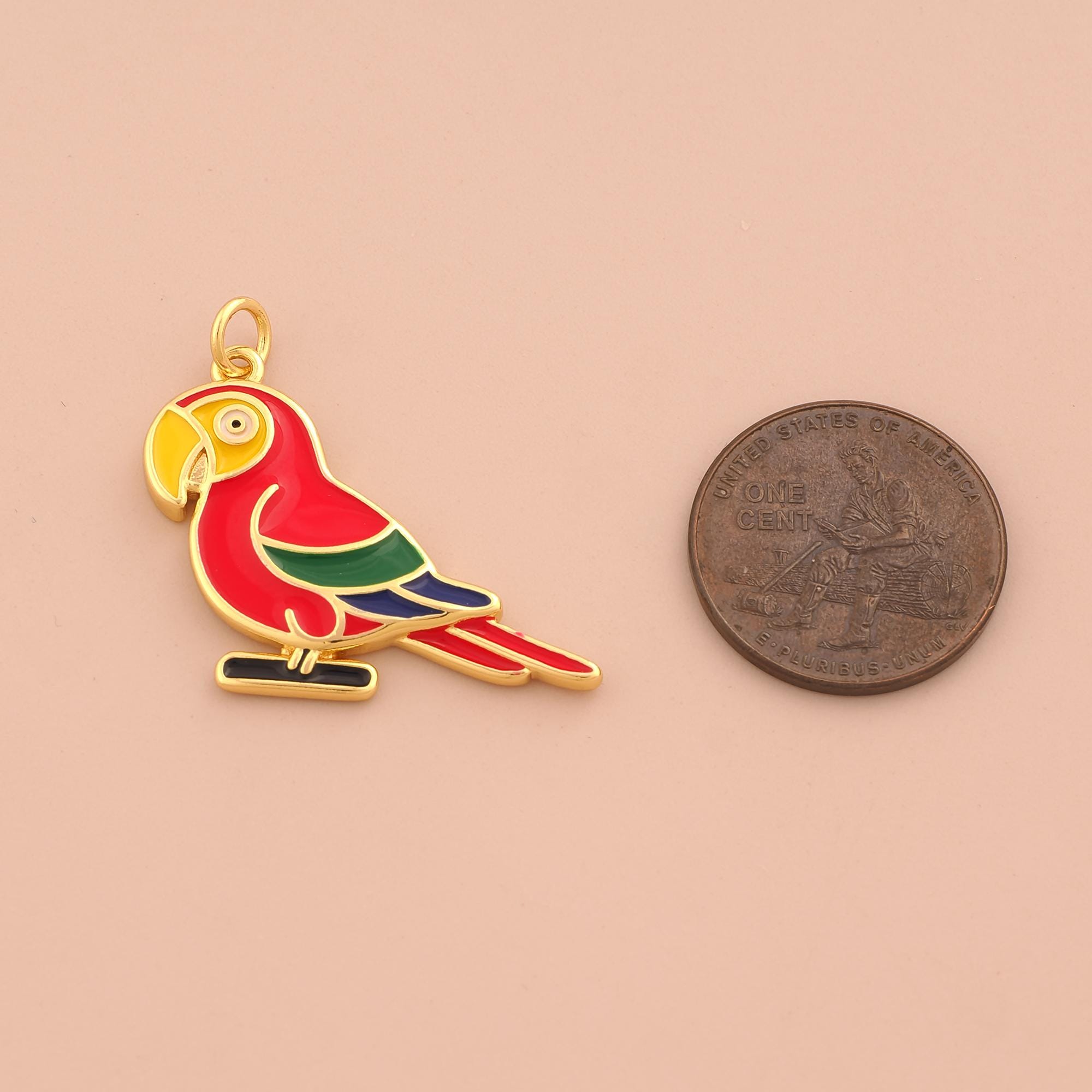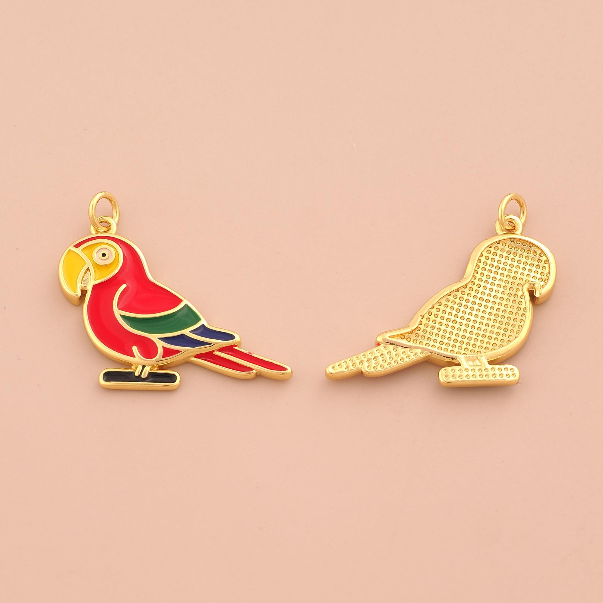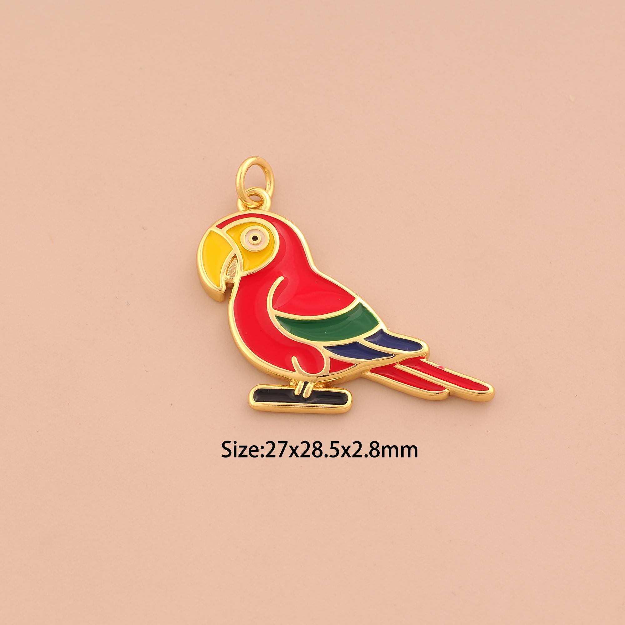 18K Gold Parrot Charms,Enamel Flying Charms Pendants,Animal Charm for DIY Jewelry Making Supply