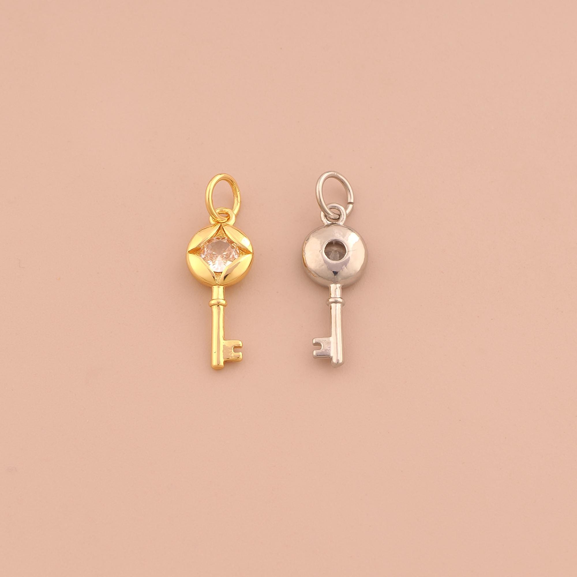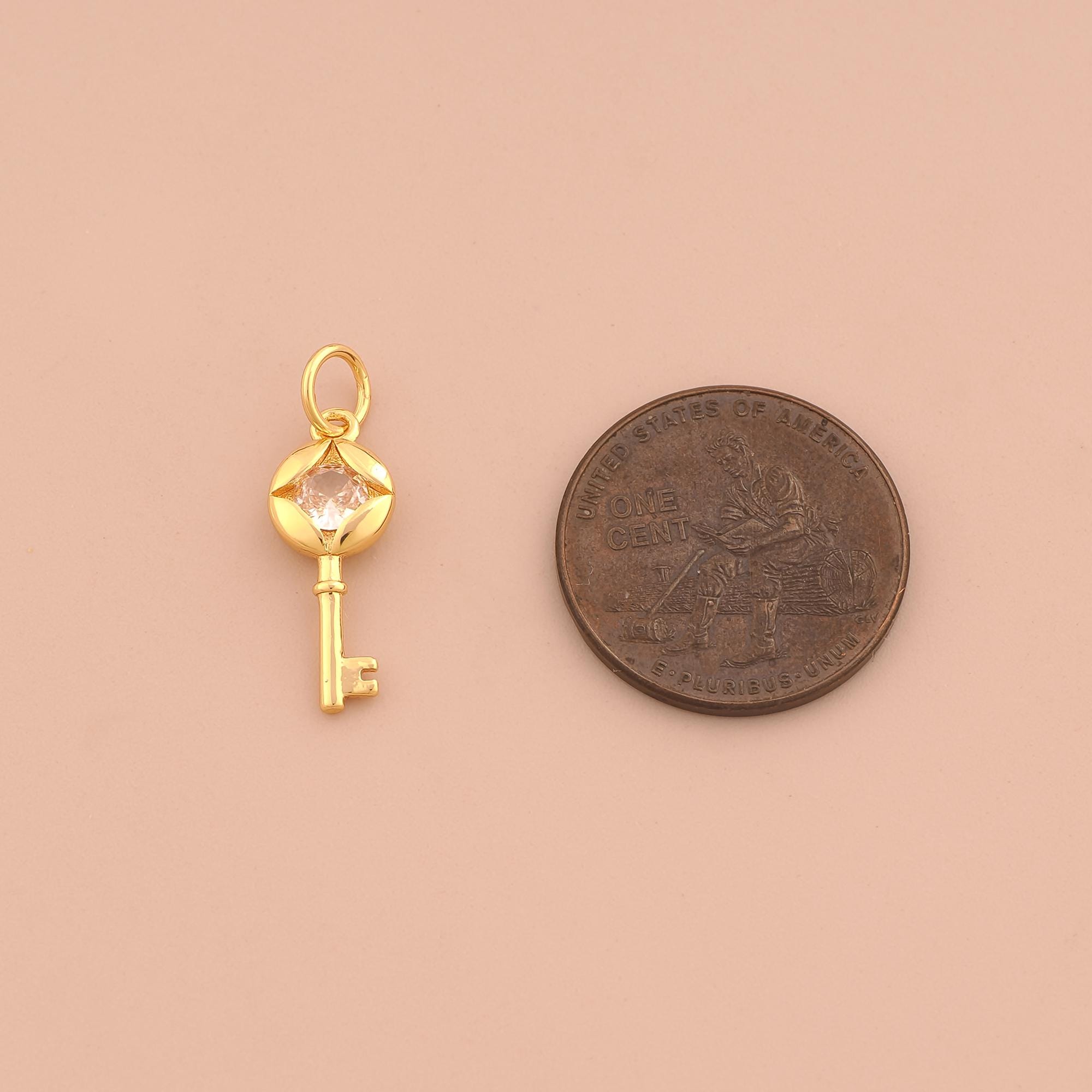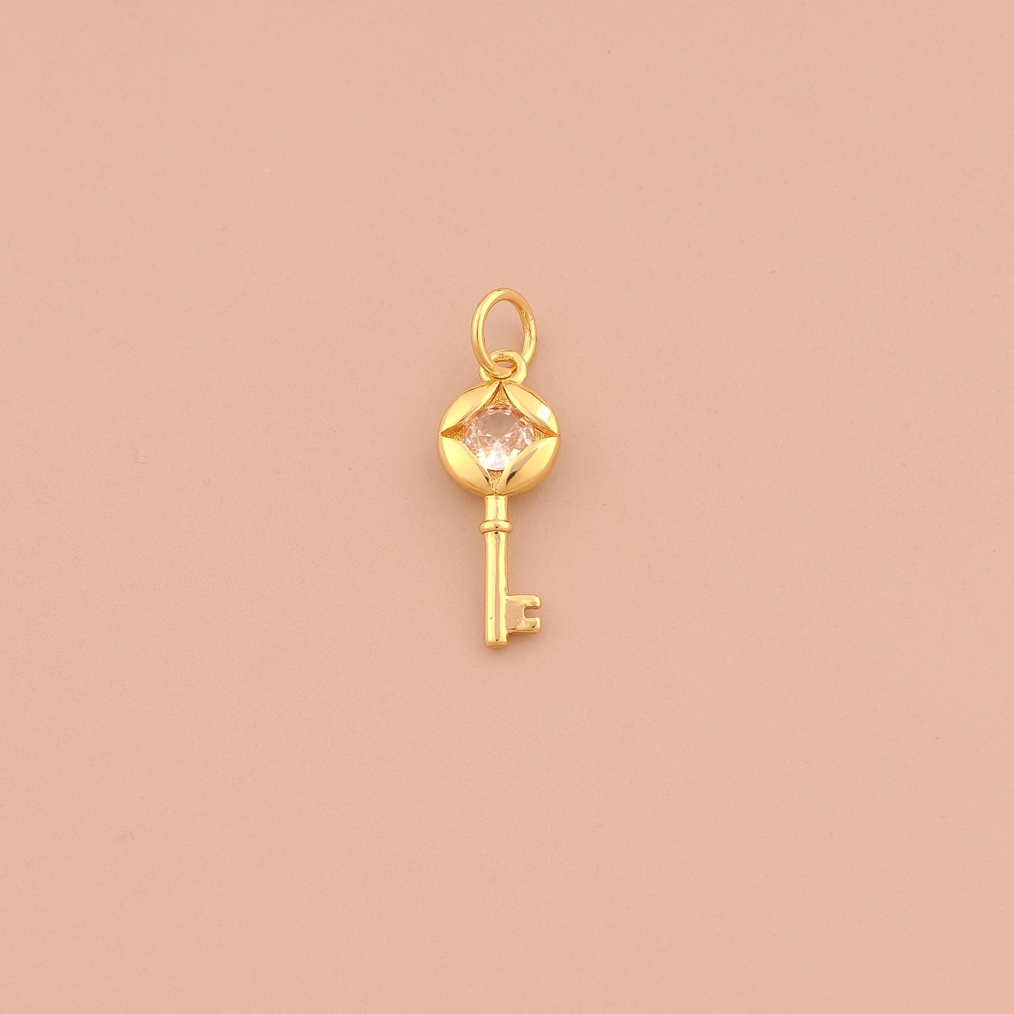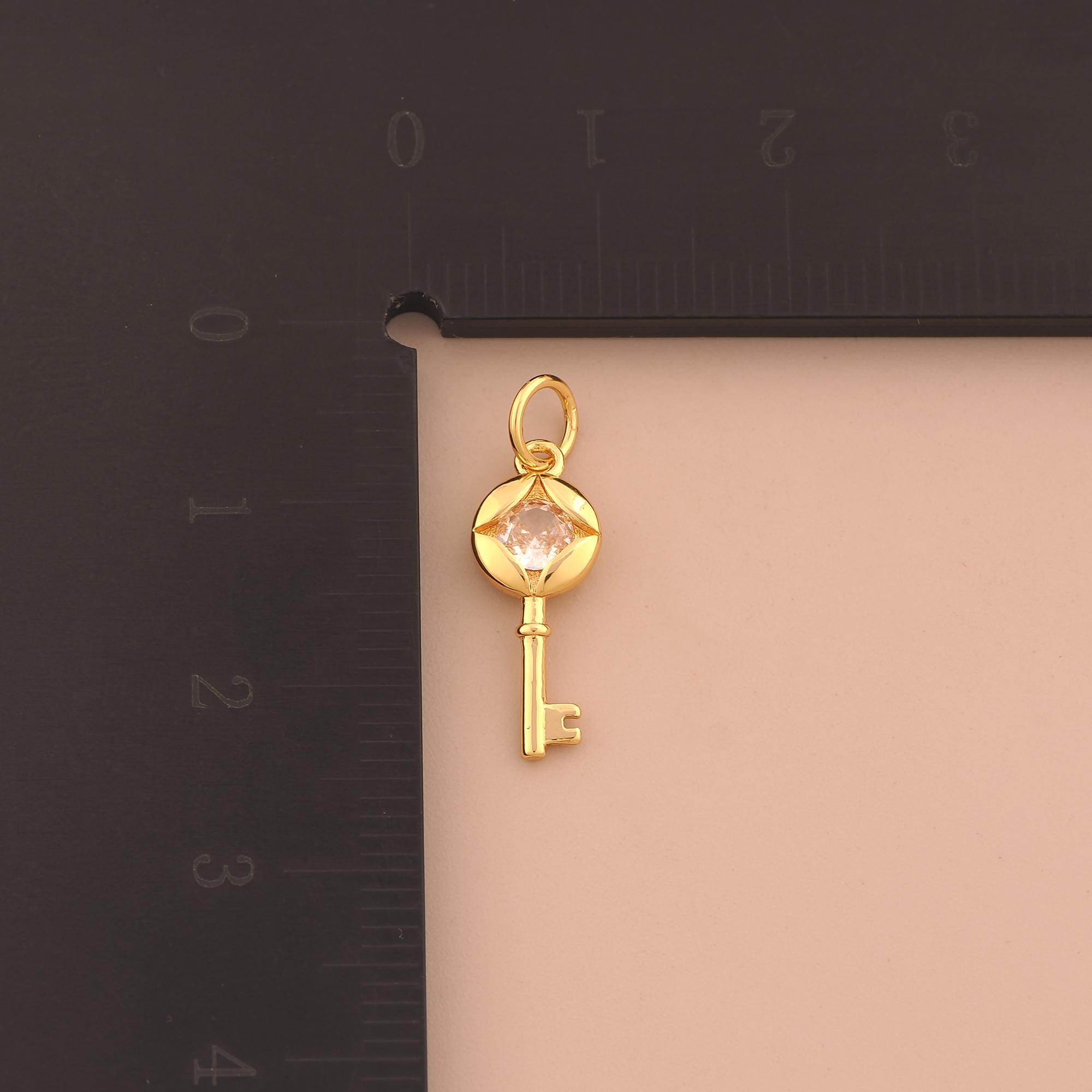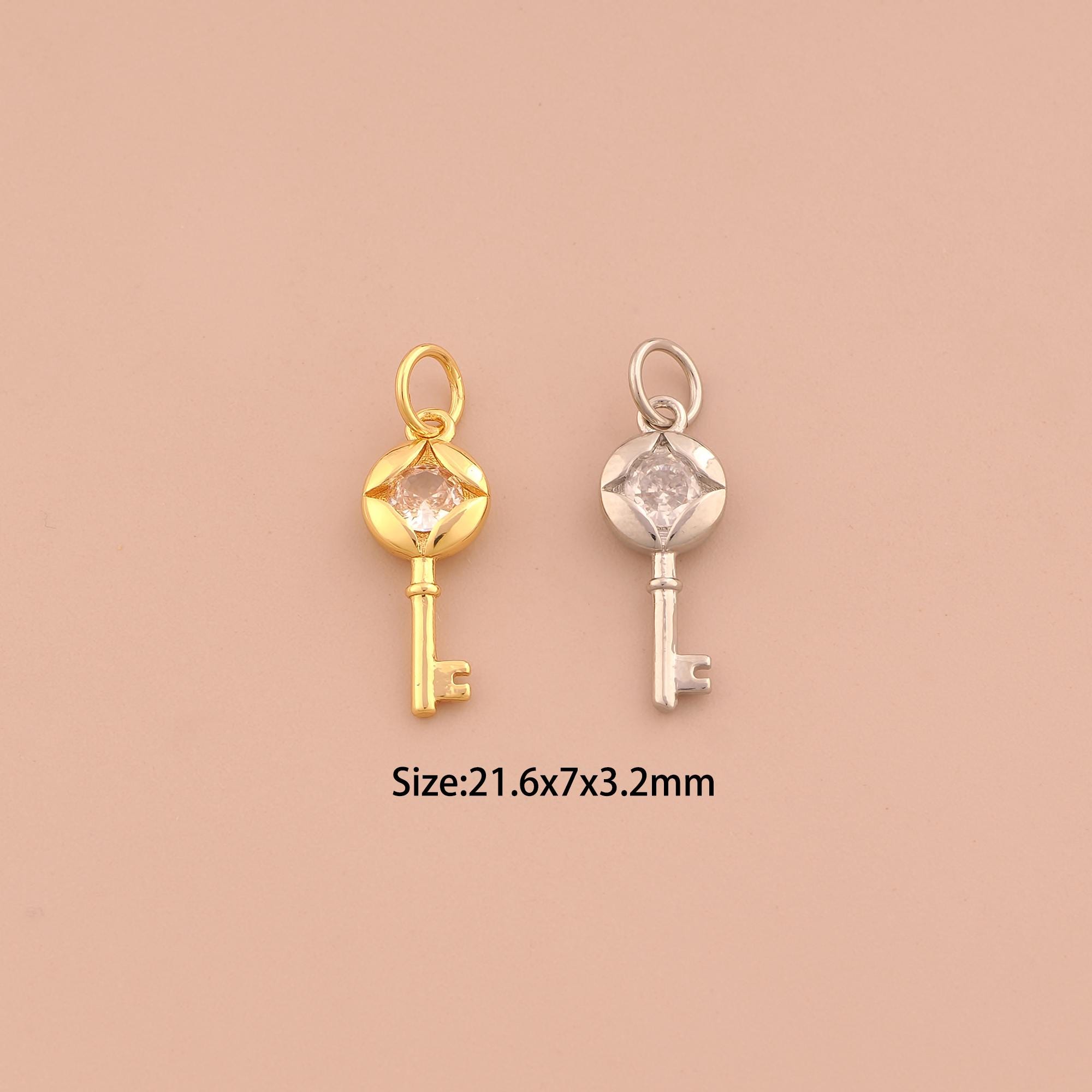 18K Gold Key Charms,CZ Pave Key Charms Pendants,Key Charm for DIY Jewelry Making Supply