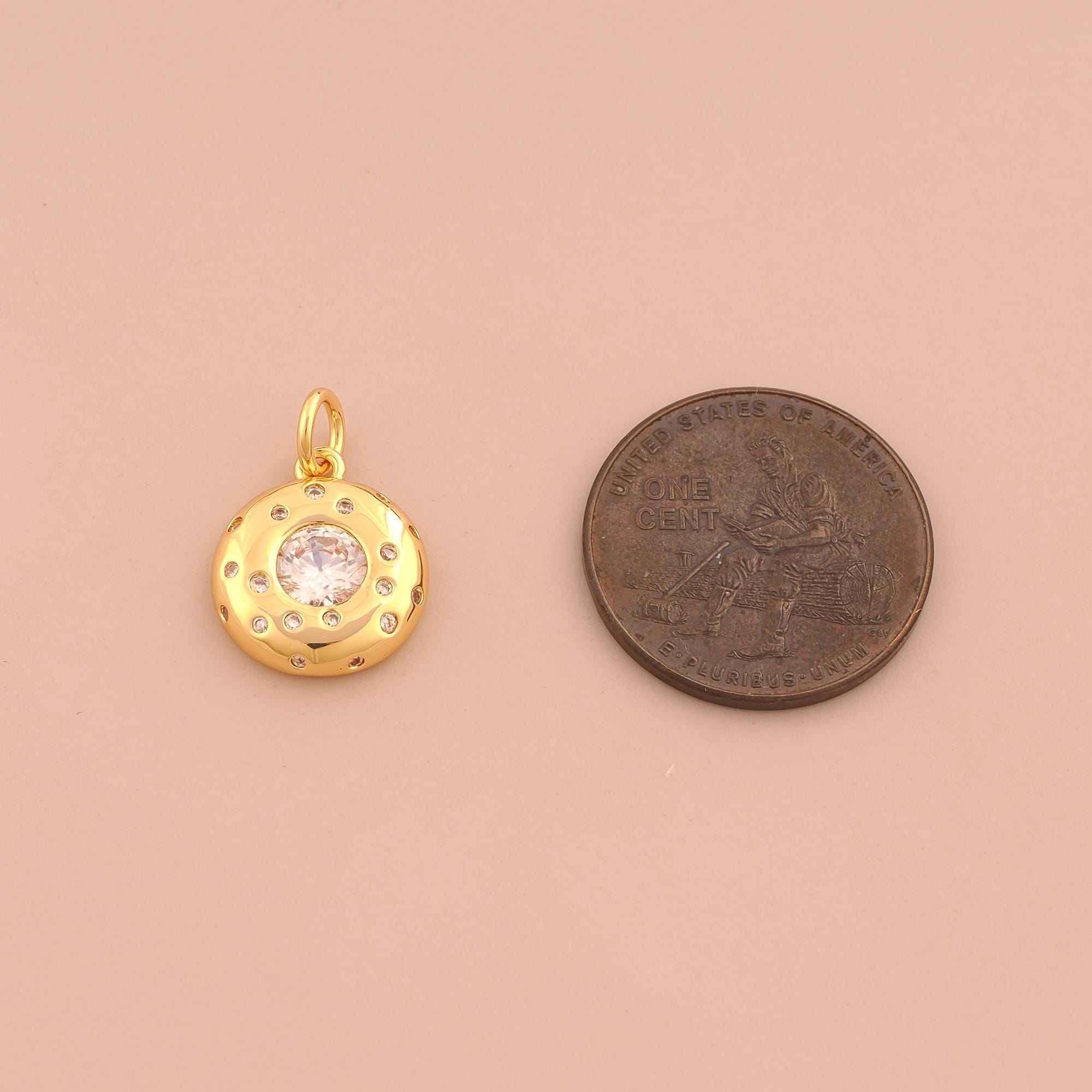 18K Gold Pickle Ball Charms,CZ Pave Sports Charms Pendants,Ball Charm for DIY Jewelry Making Supply