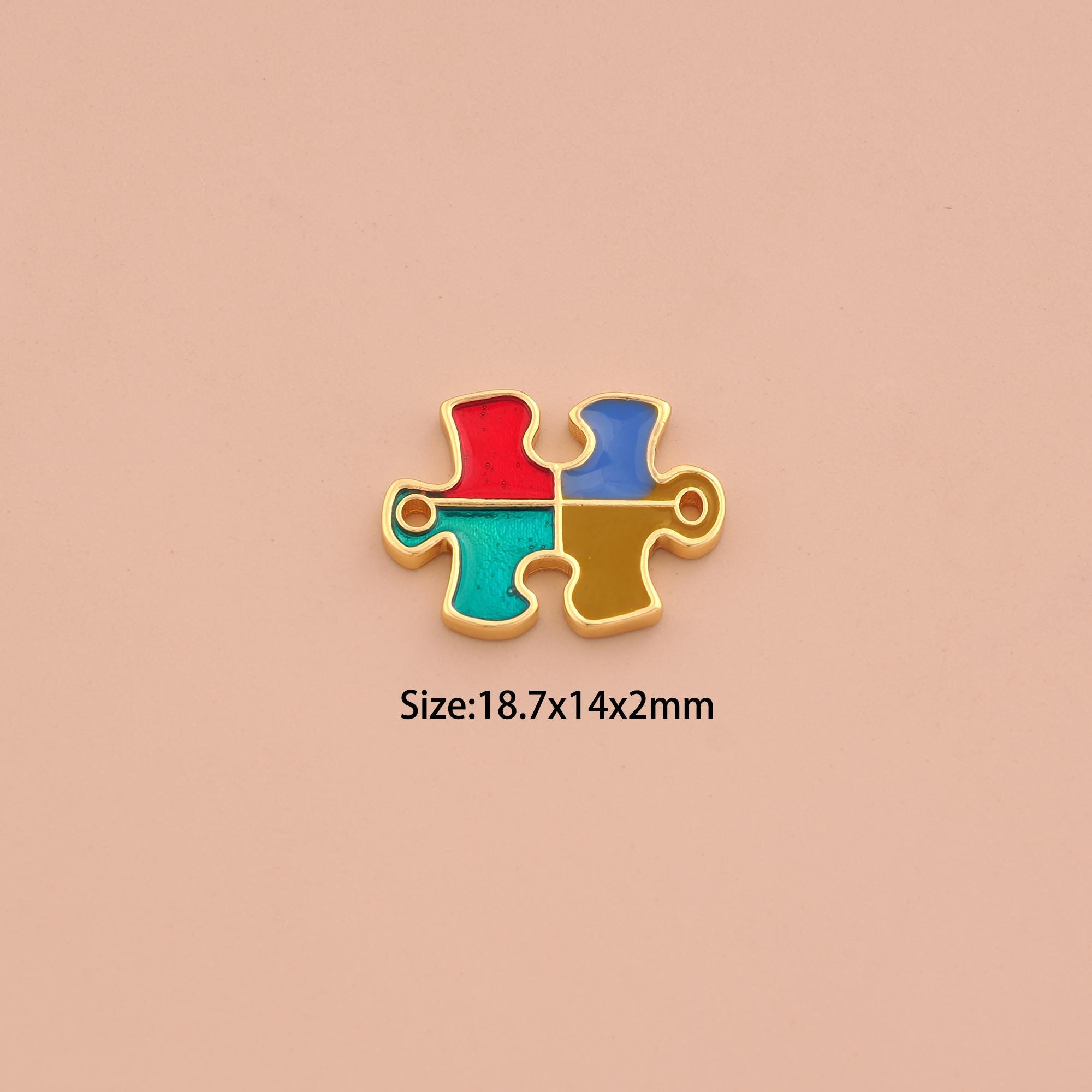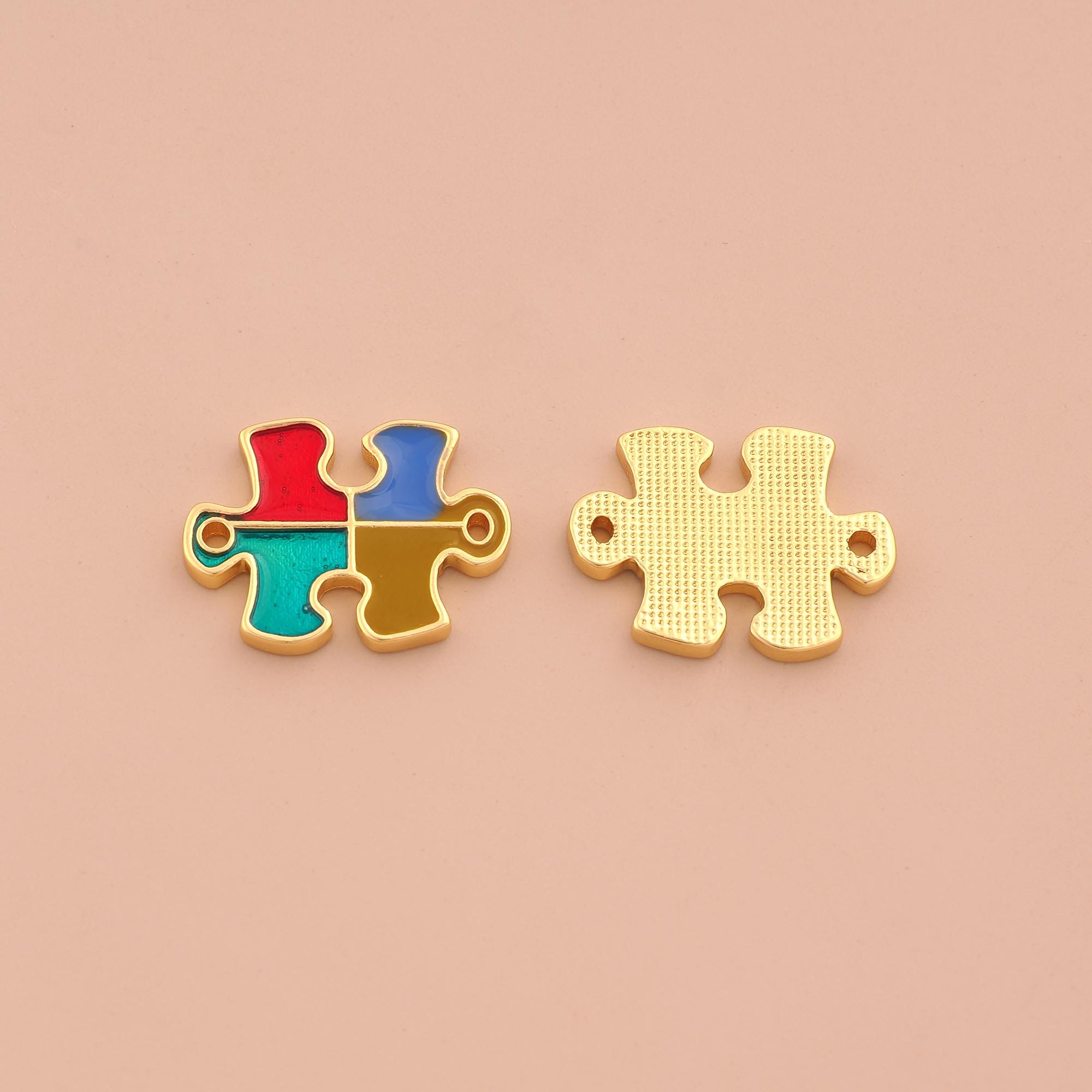 18K Gold Jigsaw Connector,Jigsaw Connector Charms,Jigsaw Connector for DIY Jewelry Making Supply