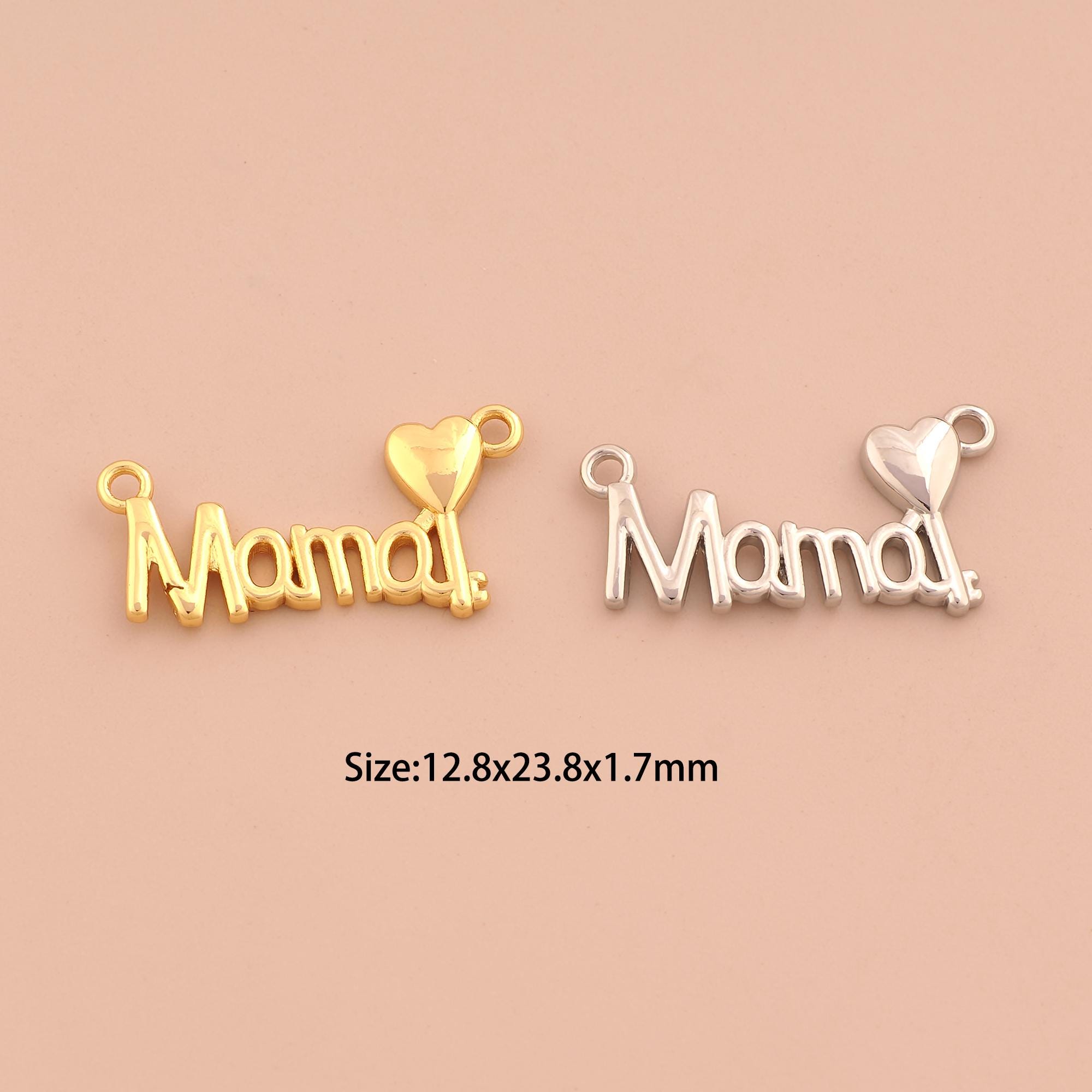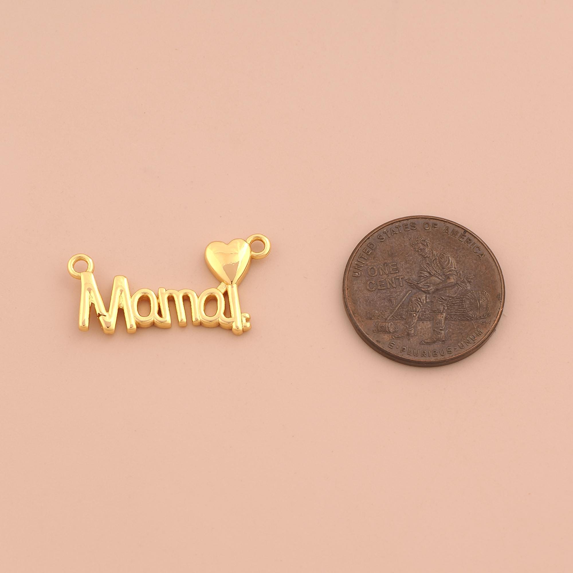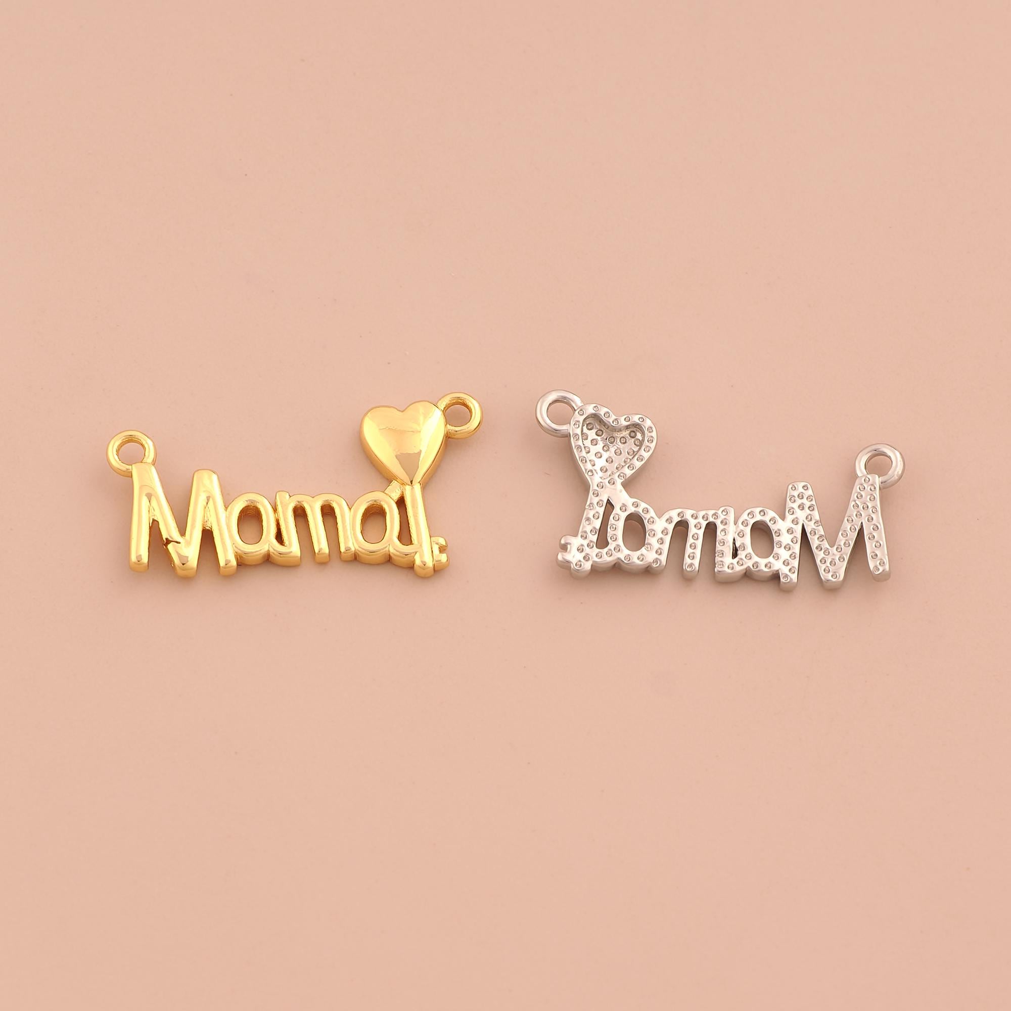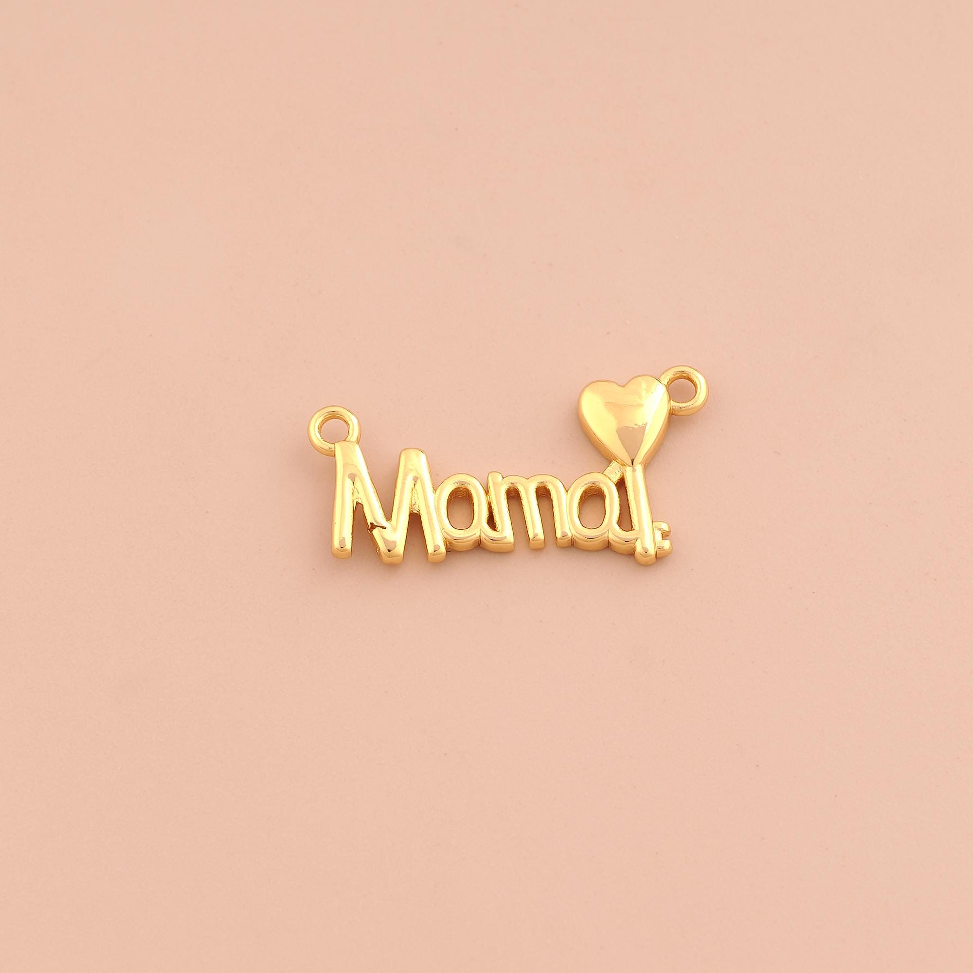 18K Gold MAMA Charms,Heart Charms Pendants,Letter Charm for DIY Jewelry Making Supply